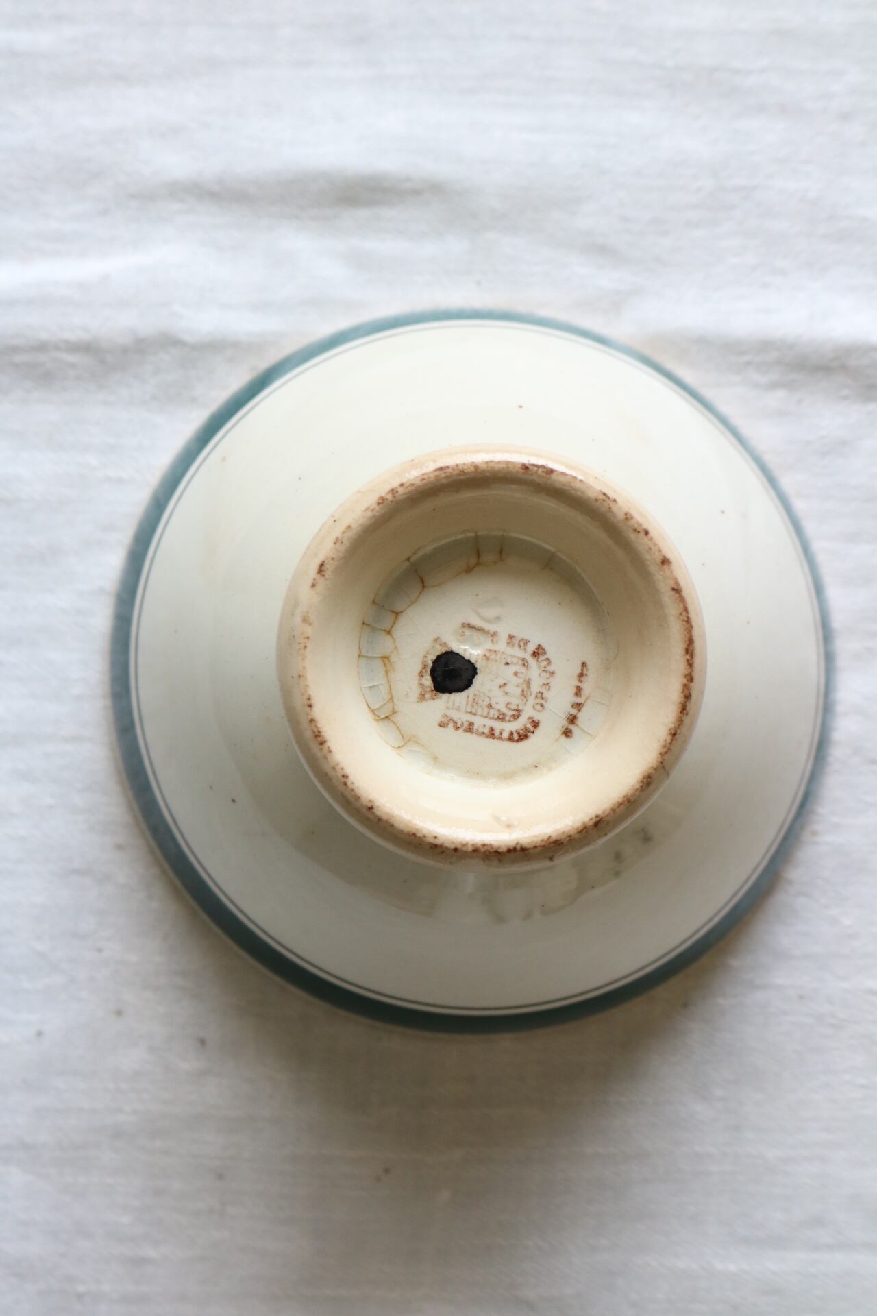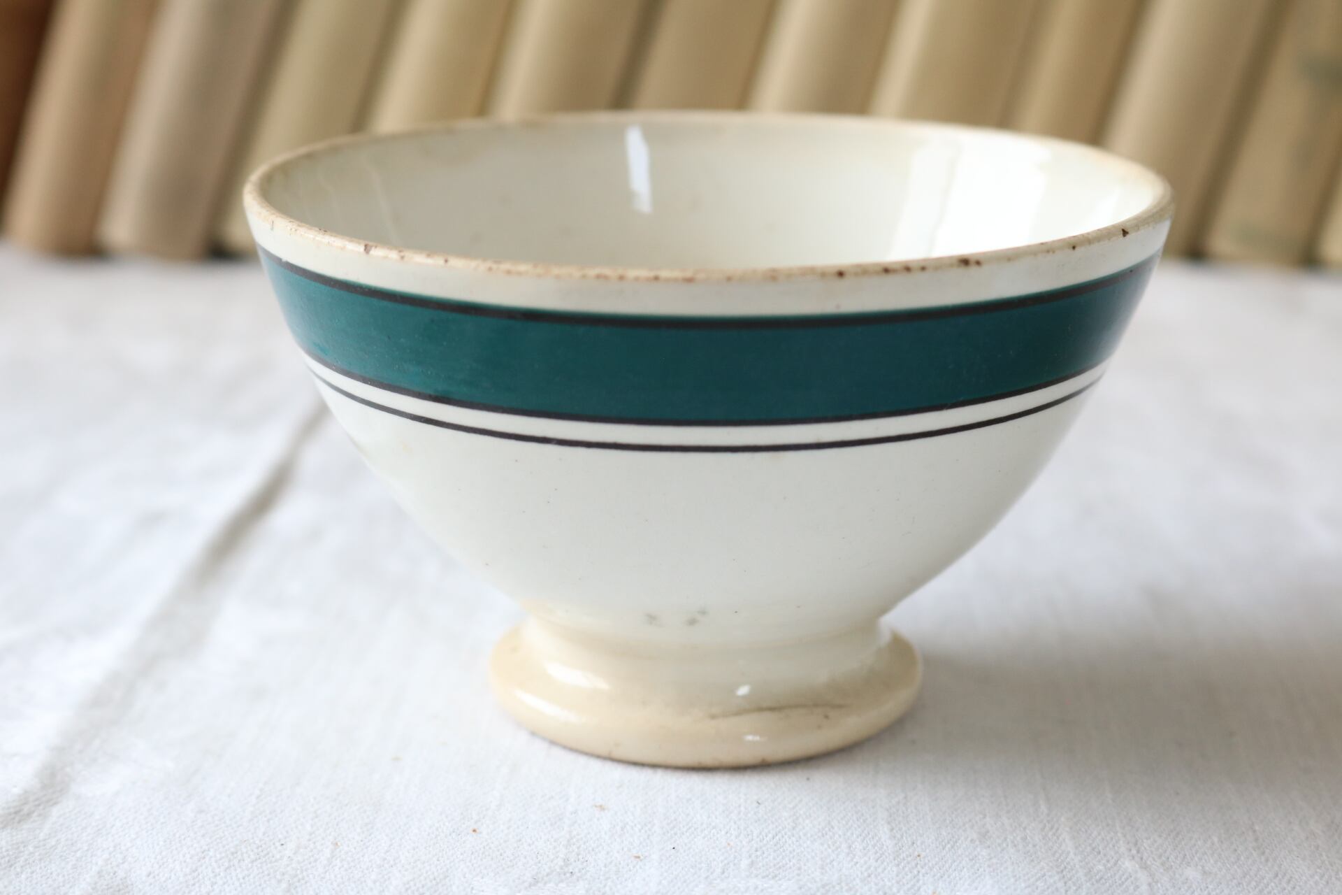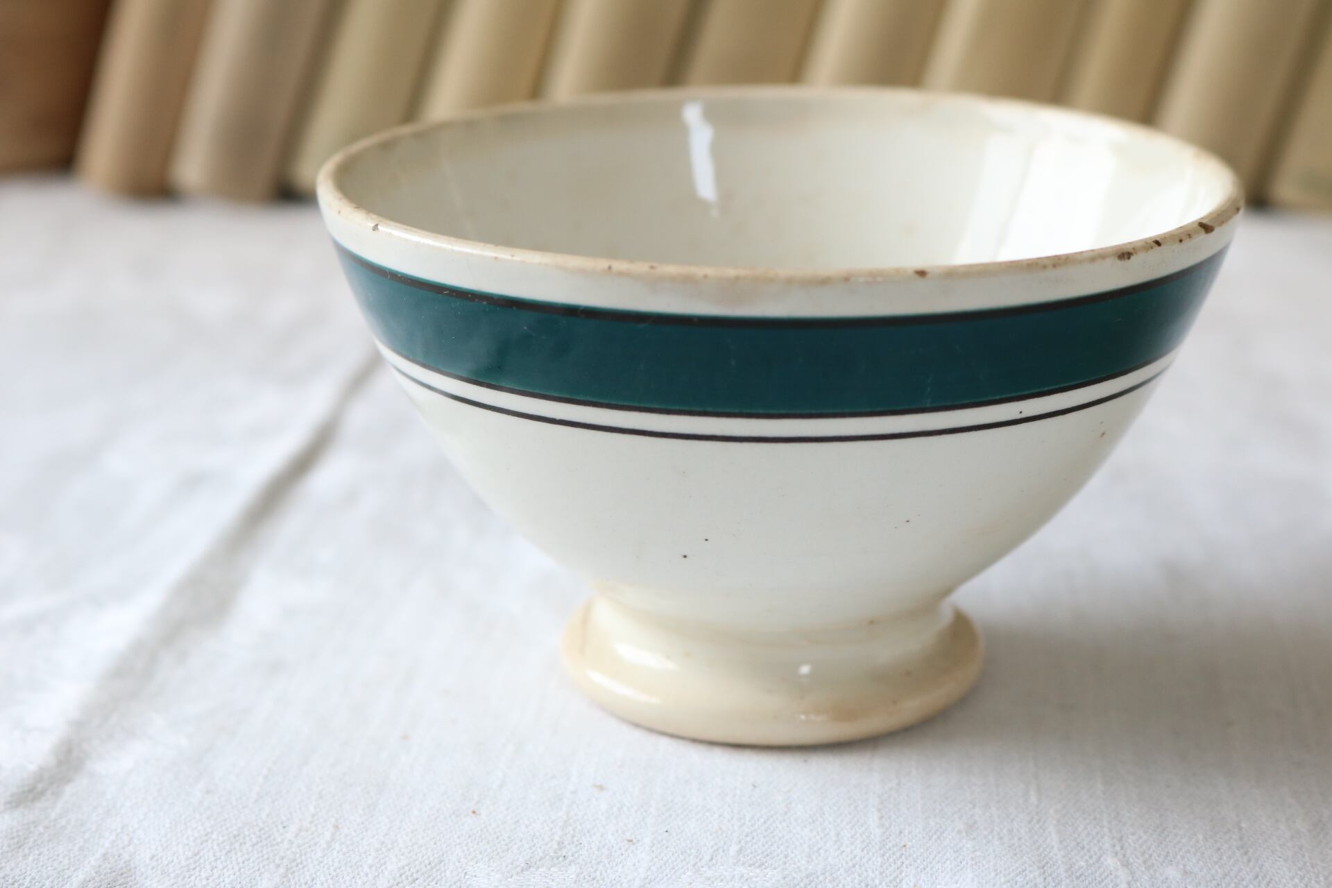 Gien 深いグリーン ライン 小さめ 枯れた雰囲気 カフェオレボウル フランス アンティーク