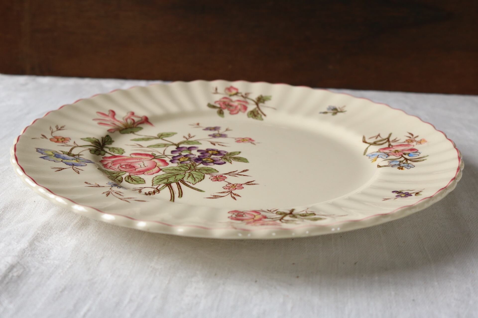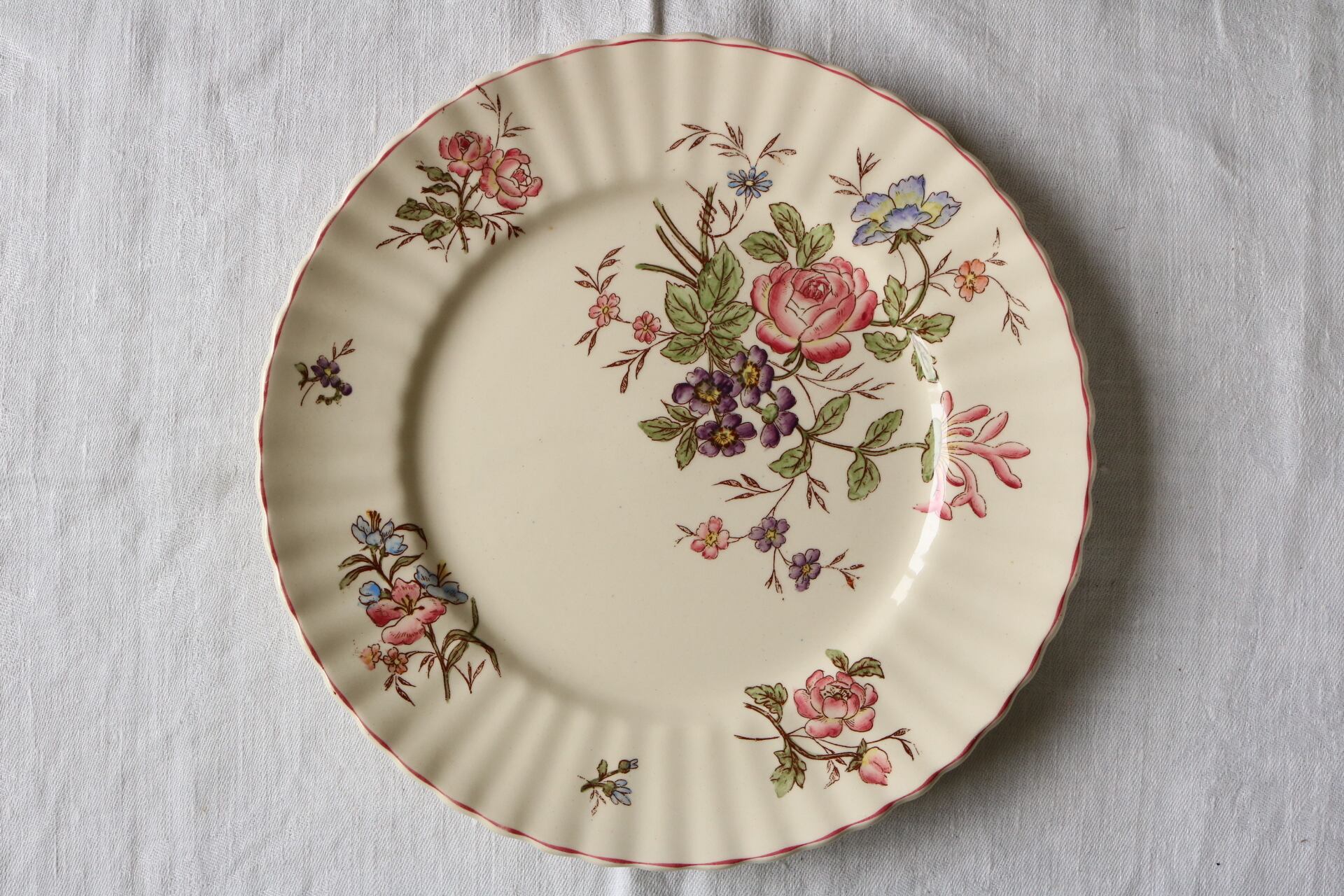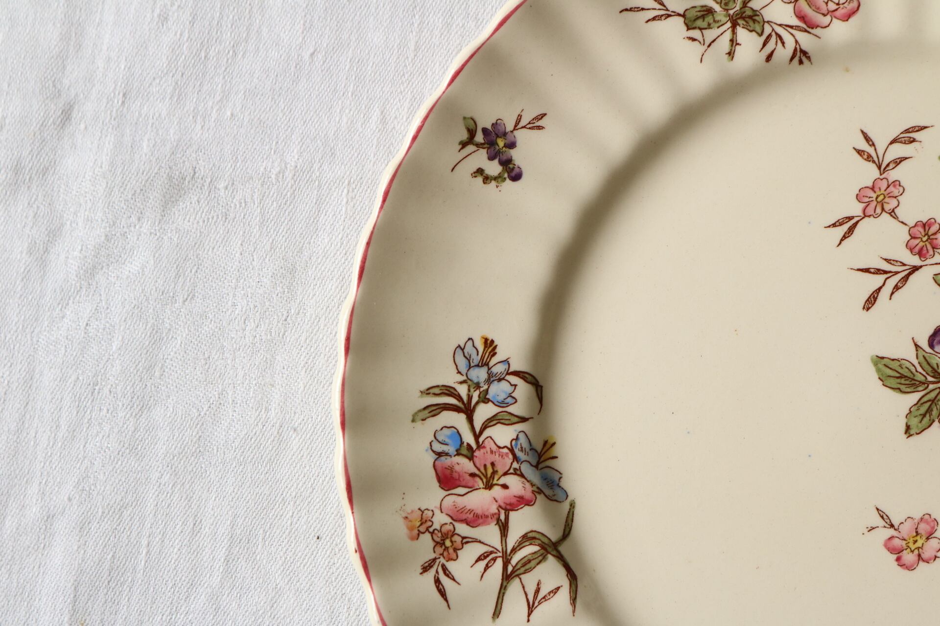 Longchamps スカラップ フランス アンティーク デザート 手彩色 プレート ボタニカル フランス アンティーク