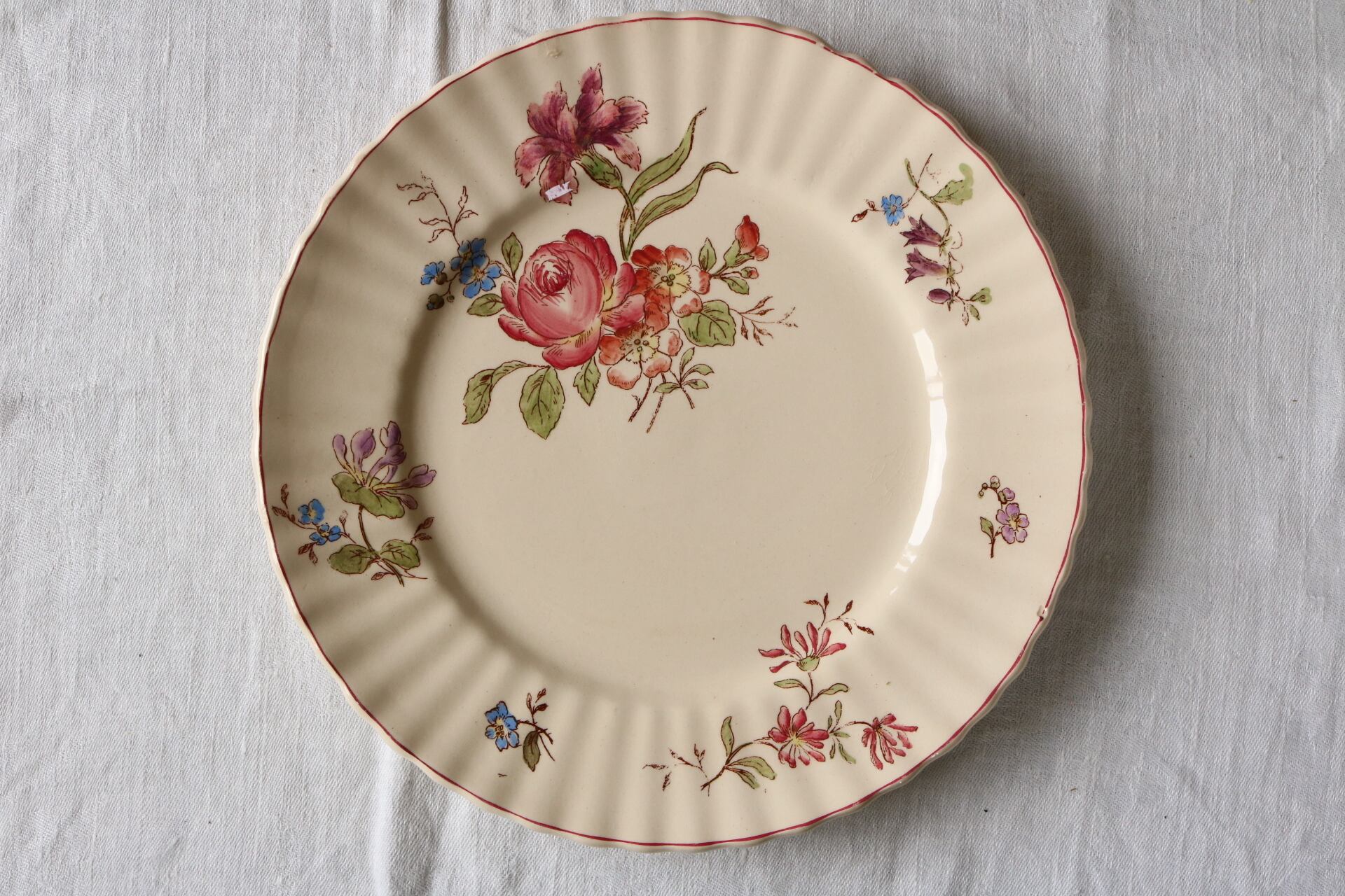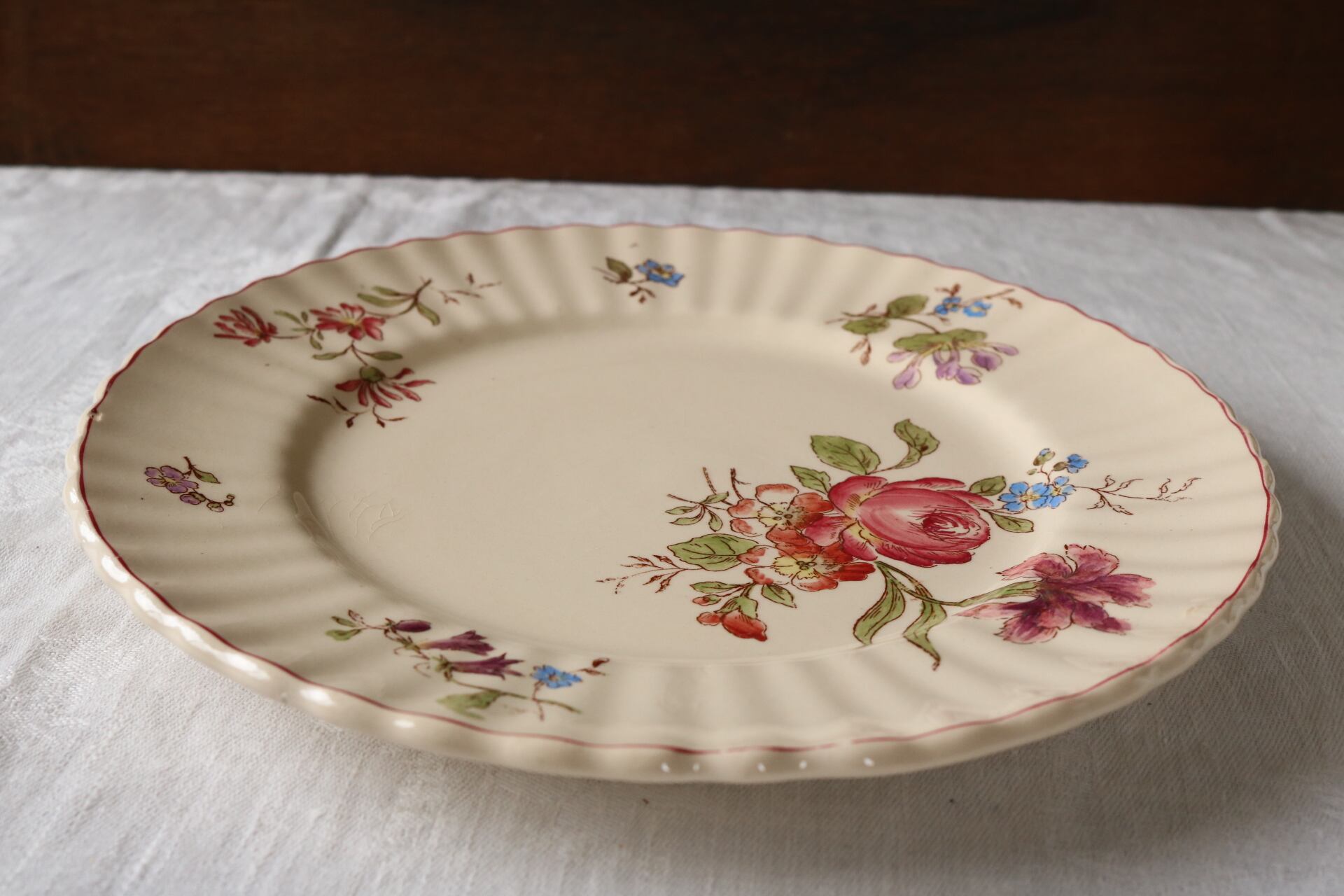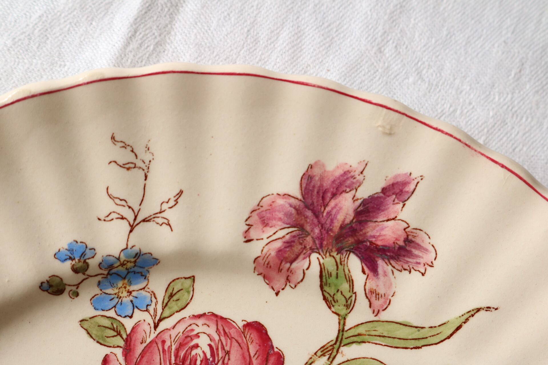 Longchamps スカラップ フランス デザート アンティーク 手彩色 プレート ボタニカル フランス アンティーク