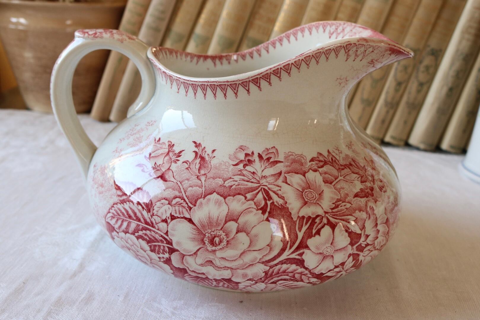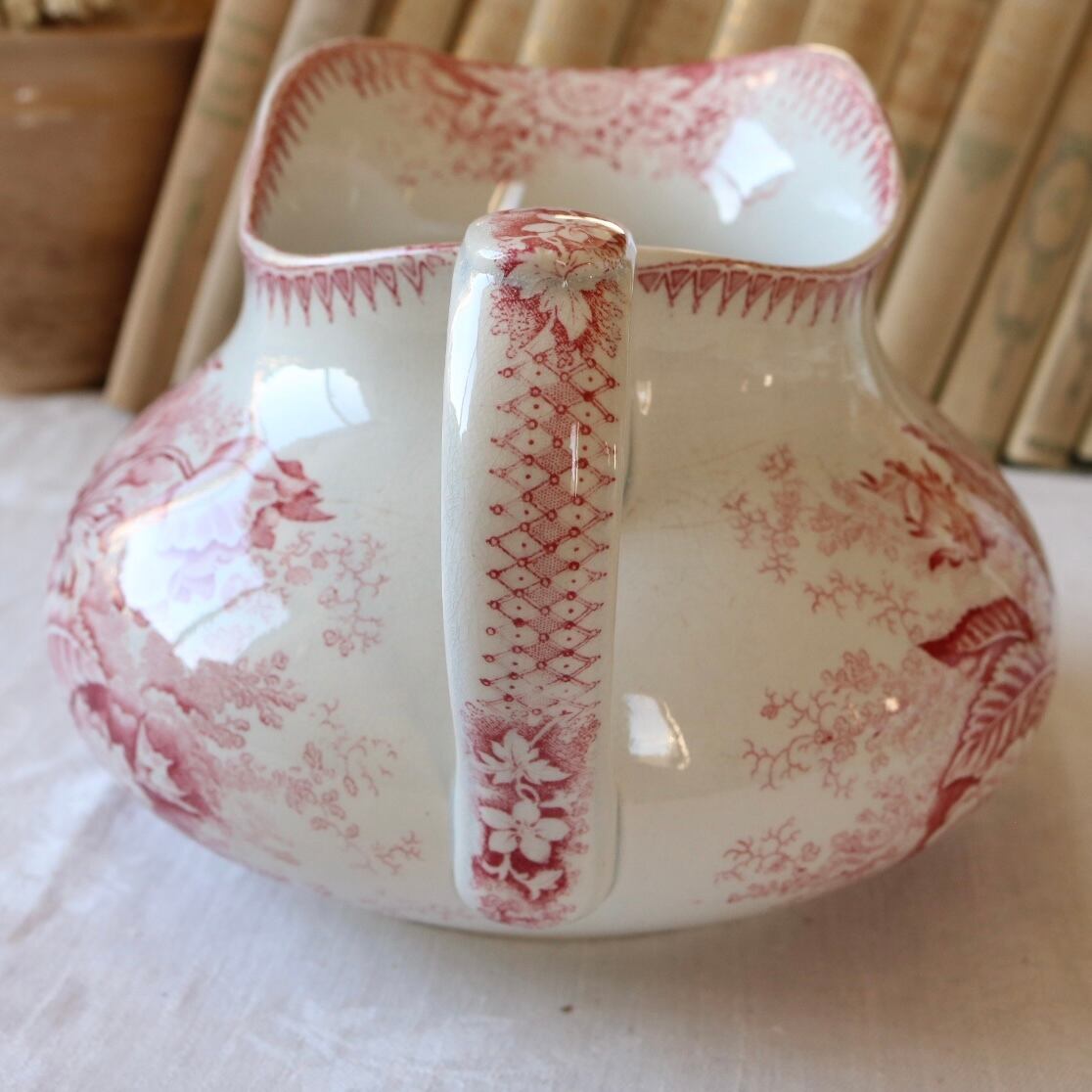 Badonviller jardinière 水差し 赤 ピンク フランス アンティーク ピッチャー ピシェ