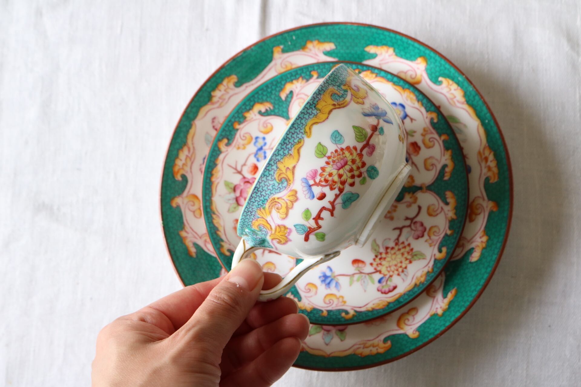イギリス Minton sarreguemines グリーン ジャポニズム シノワズリ カップ ボーンチャイナ