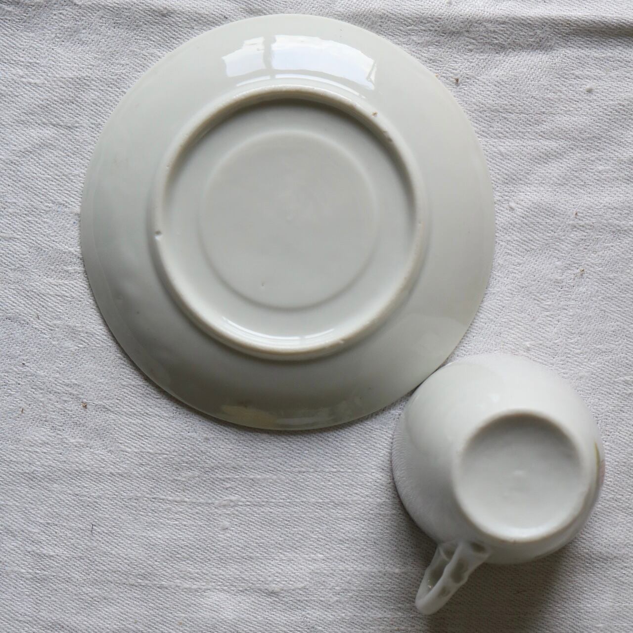 おままごと カップ ソーサー 犬 女の子 陶器 ポースリンarie Louise 白 カップ & ソーサー c&s ブルーグリーン