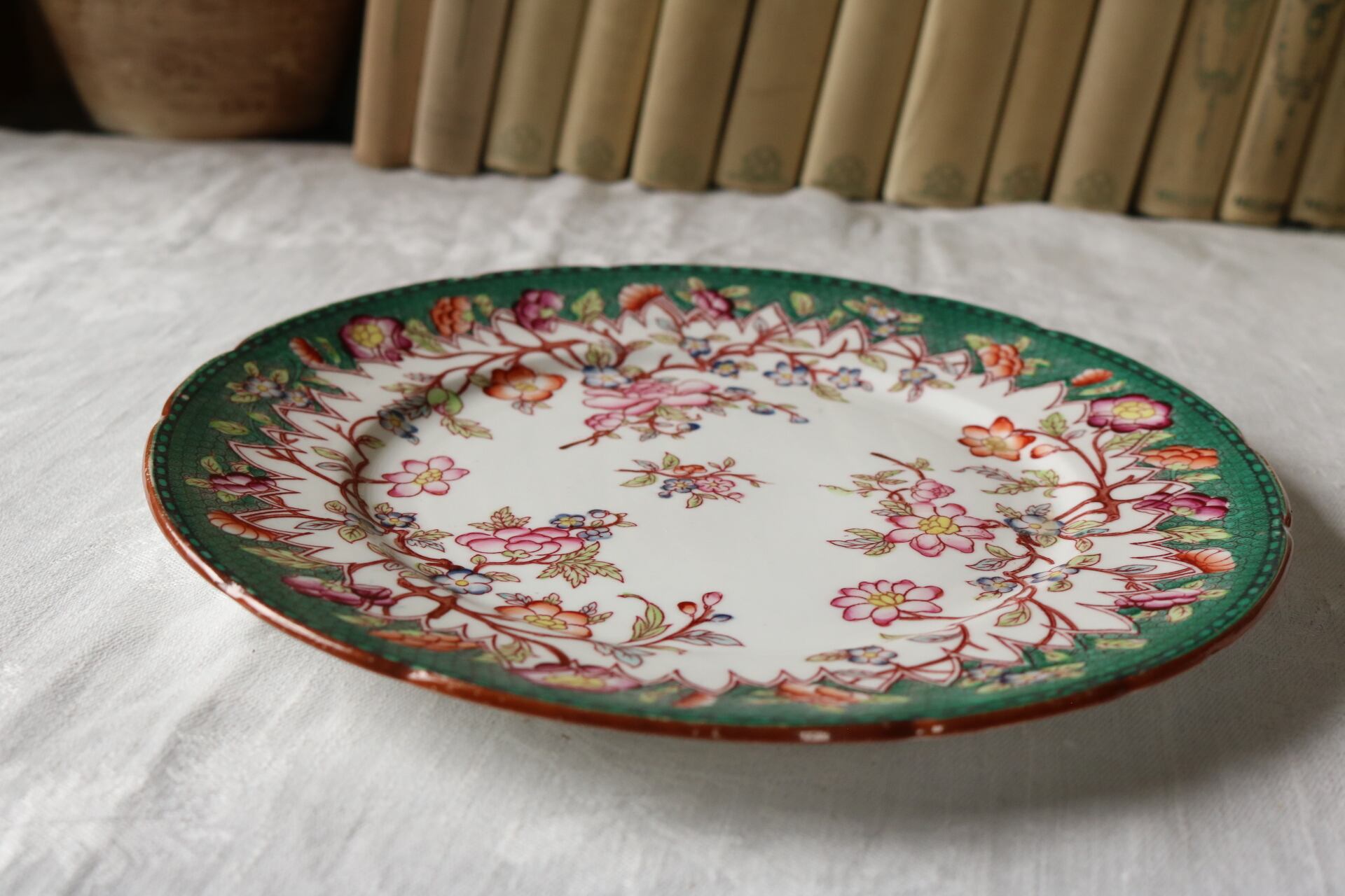 Sarreguemines ジャポニズム シノワズリ プレート グリーン ボーンチャイナ