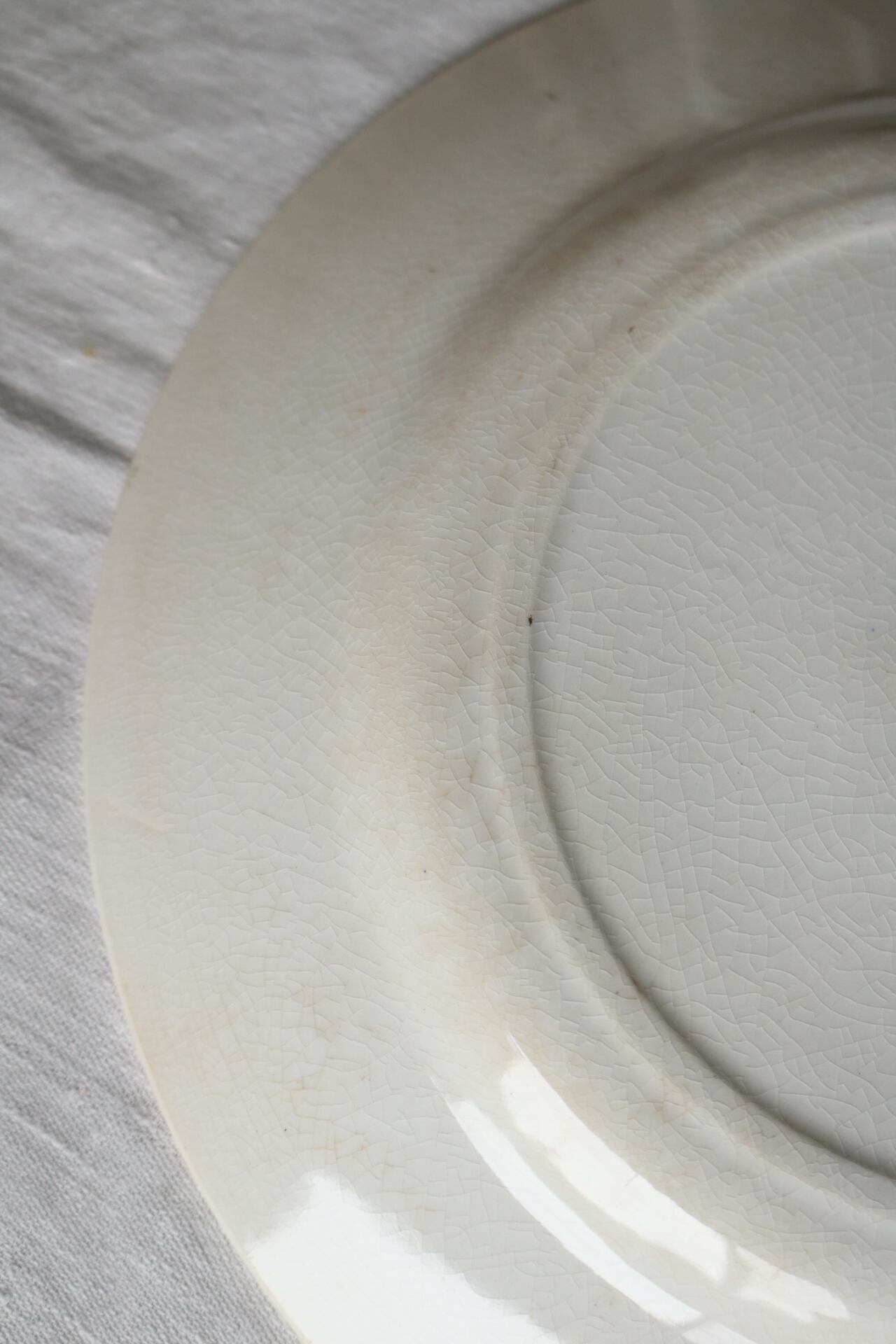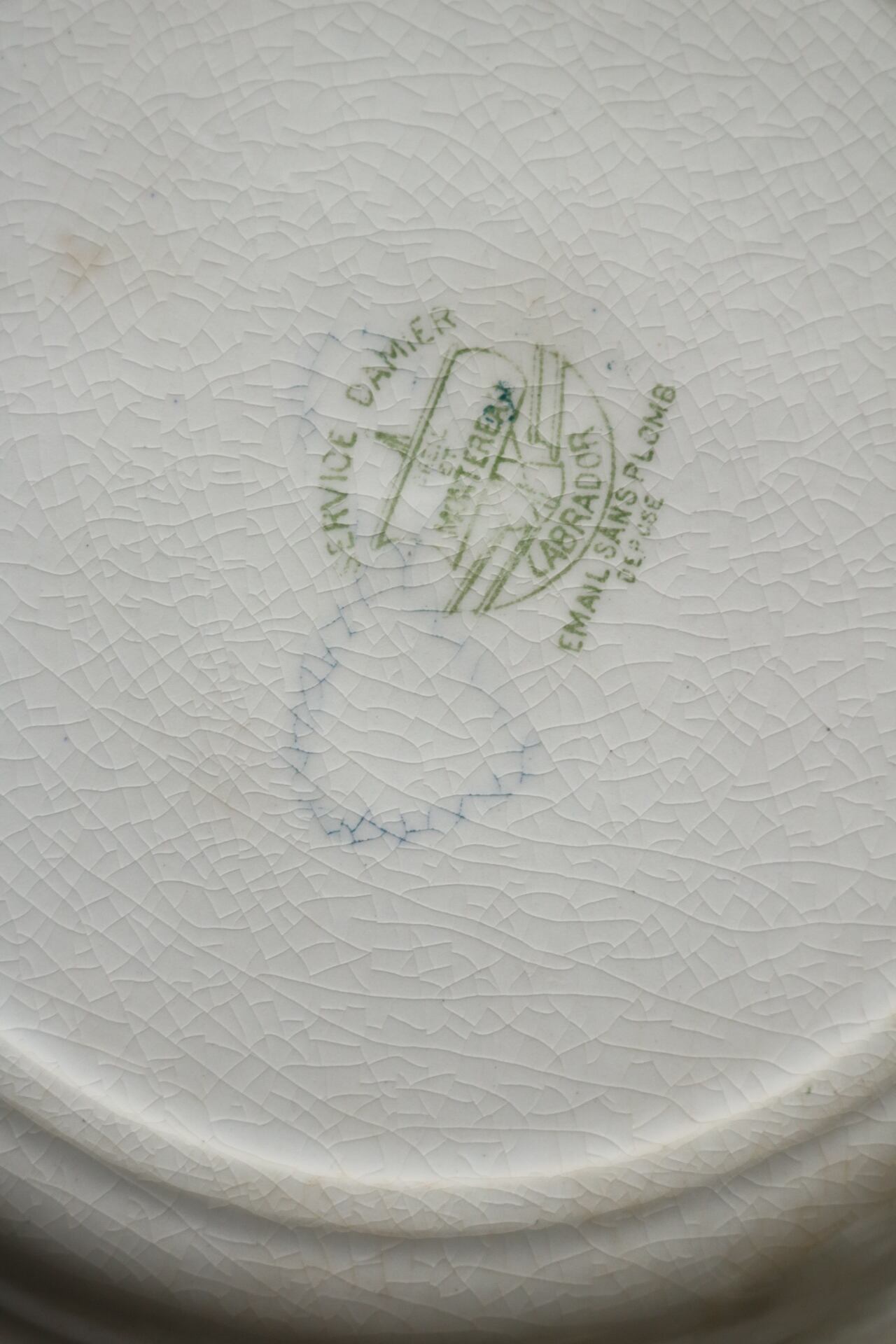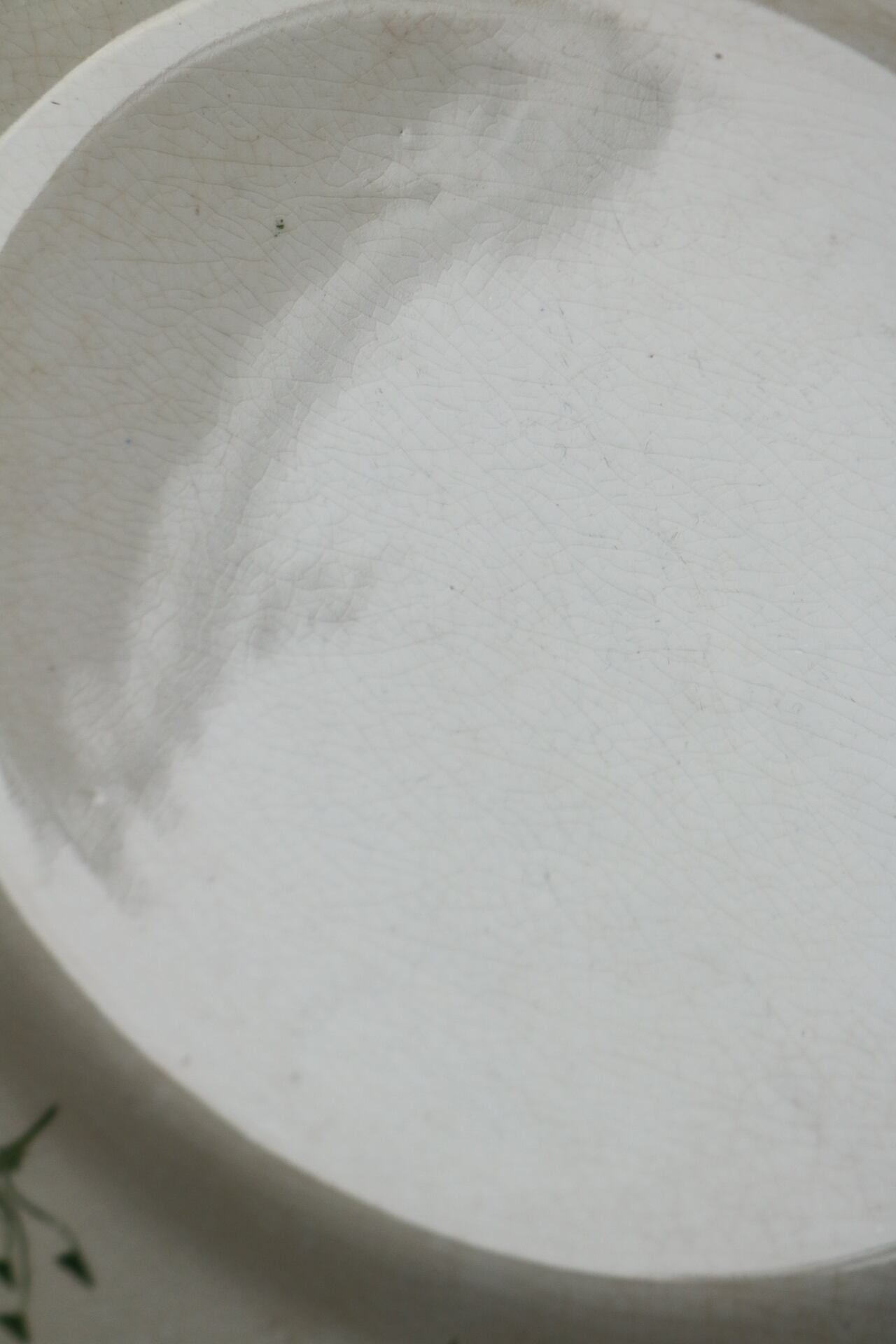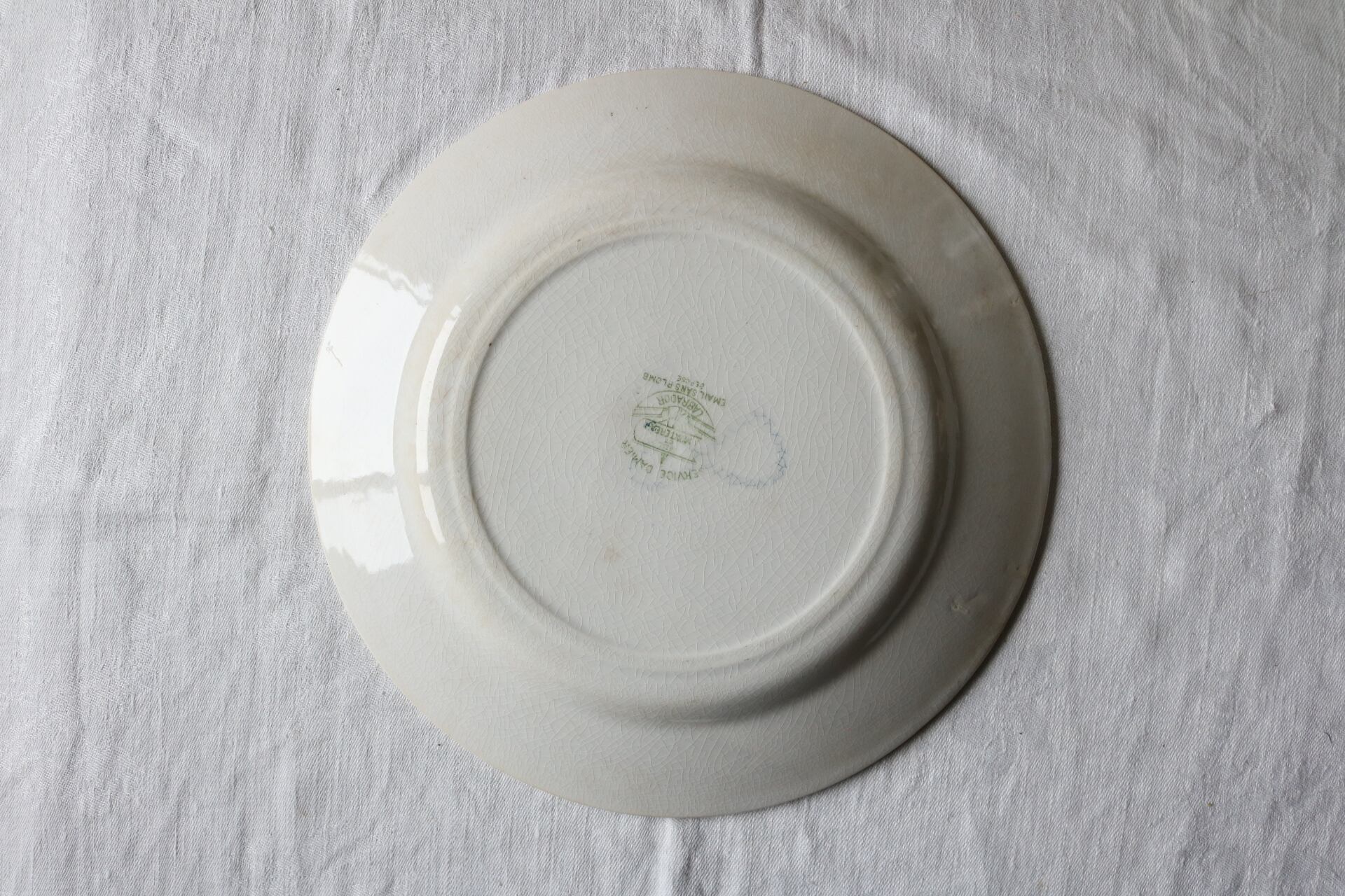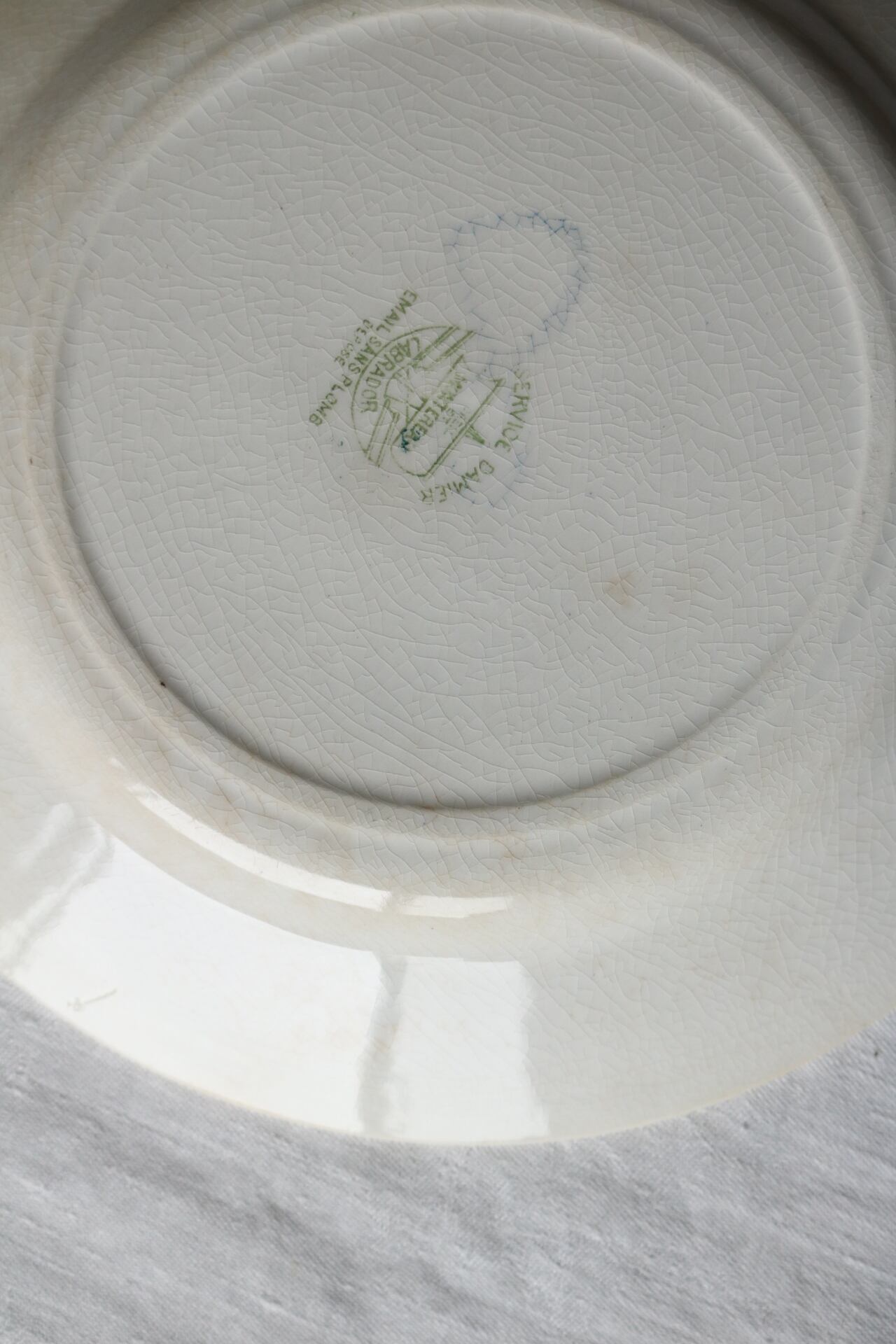 Creil montereau モスグリーン ダミエ 幾何学模様 プレート フランス アンティーク