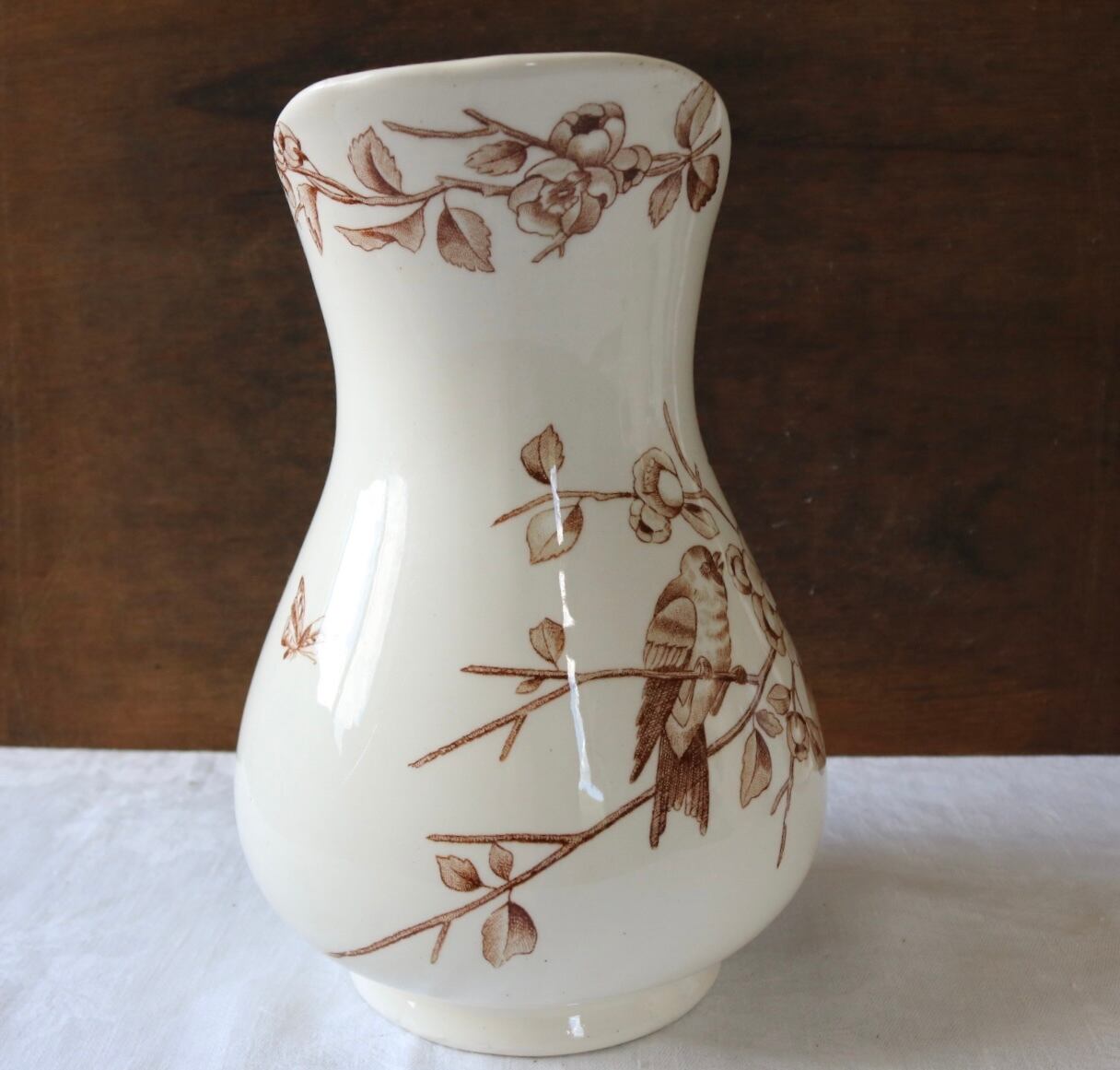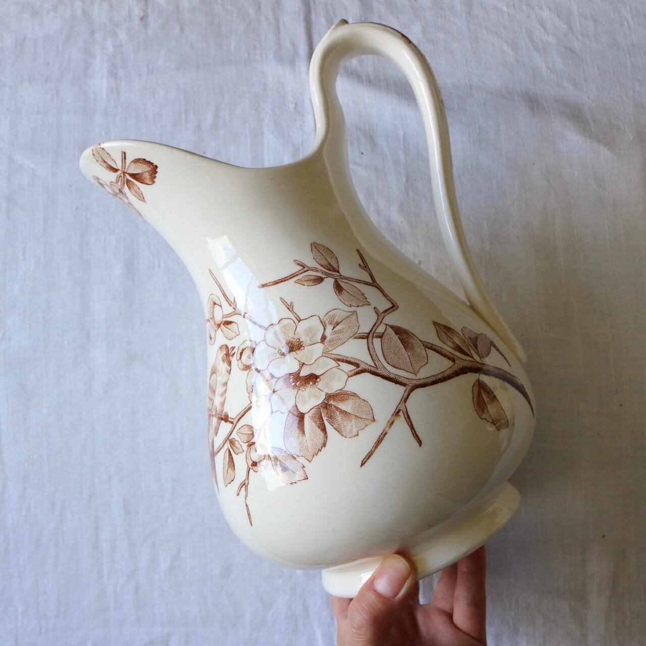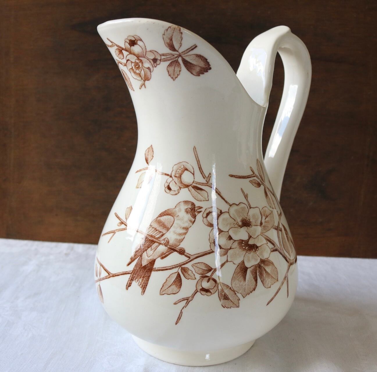 大きめ 水差し 茶色 ブラウン マロン 小鳥 フランス アンティーク ピッチャー ピシェ