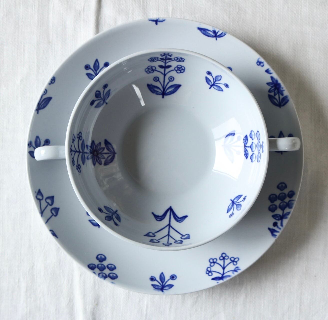 フィンランド Arabia スープカップ ソーサー c&s ボタニカル 総柄 ペールブルー