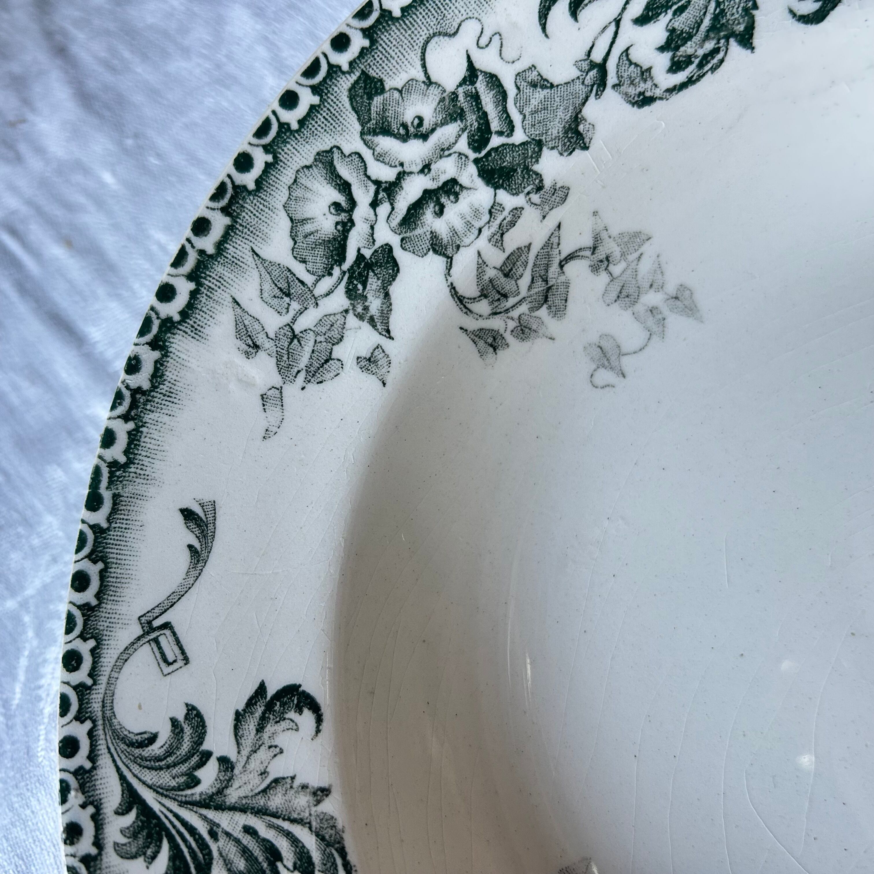 古いものなので、見落としや描ききれない経年による染み、貫入、カトラリー跡、小傷、絵柄の飛び、滲み、焼成時からの傷、釉薬のはげ等ある場合がございます。
