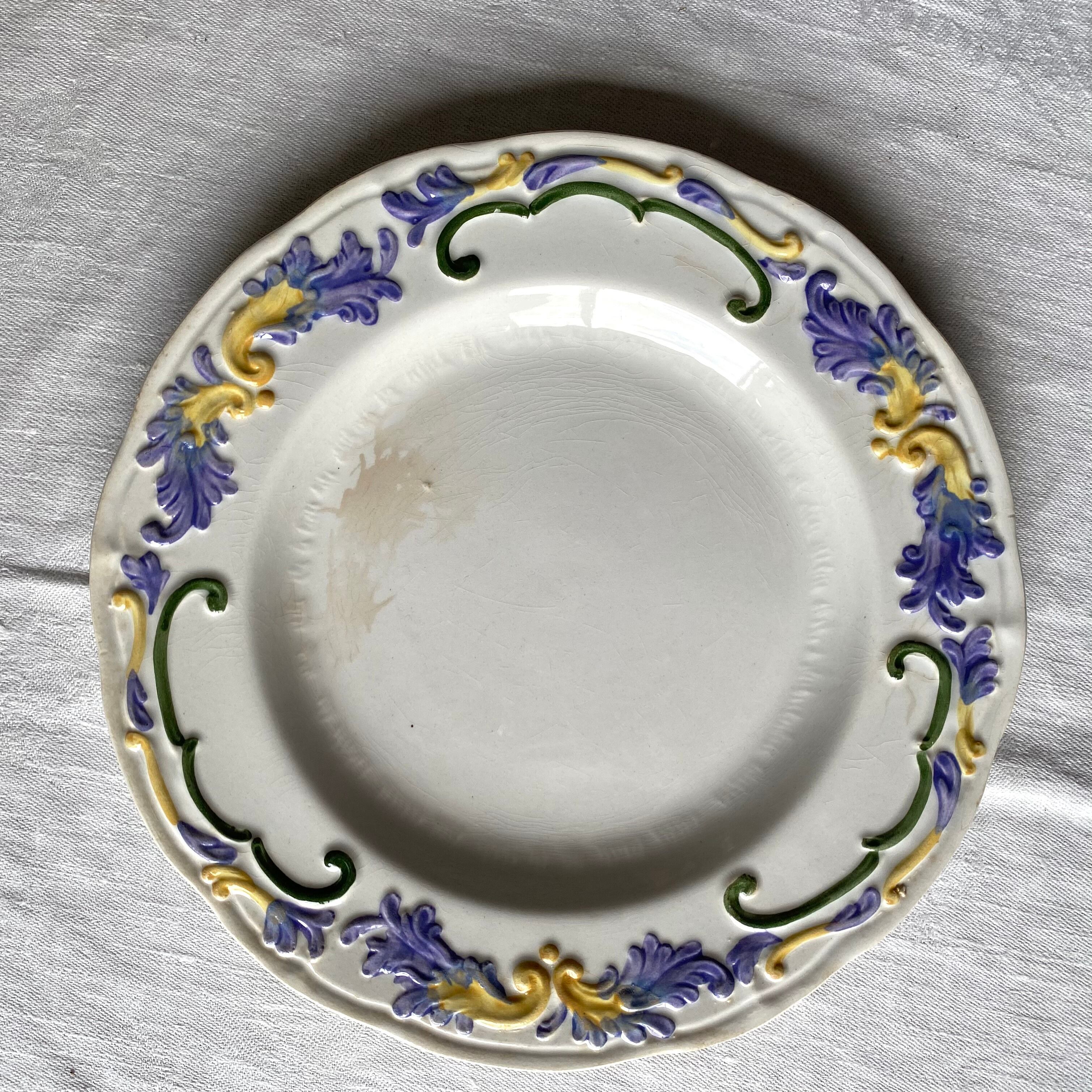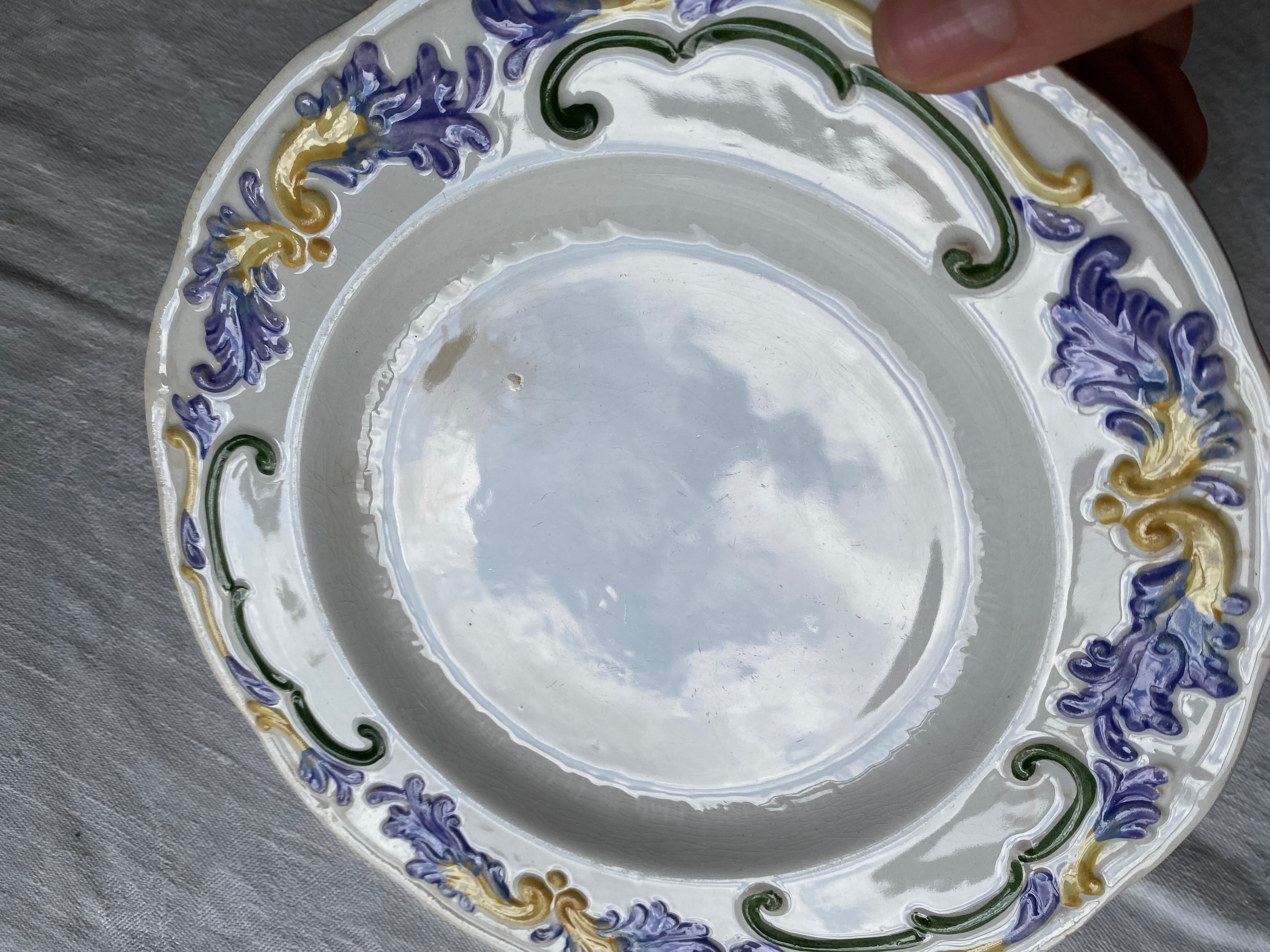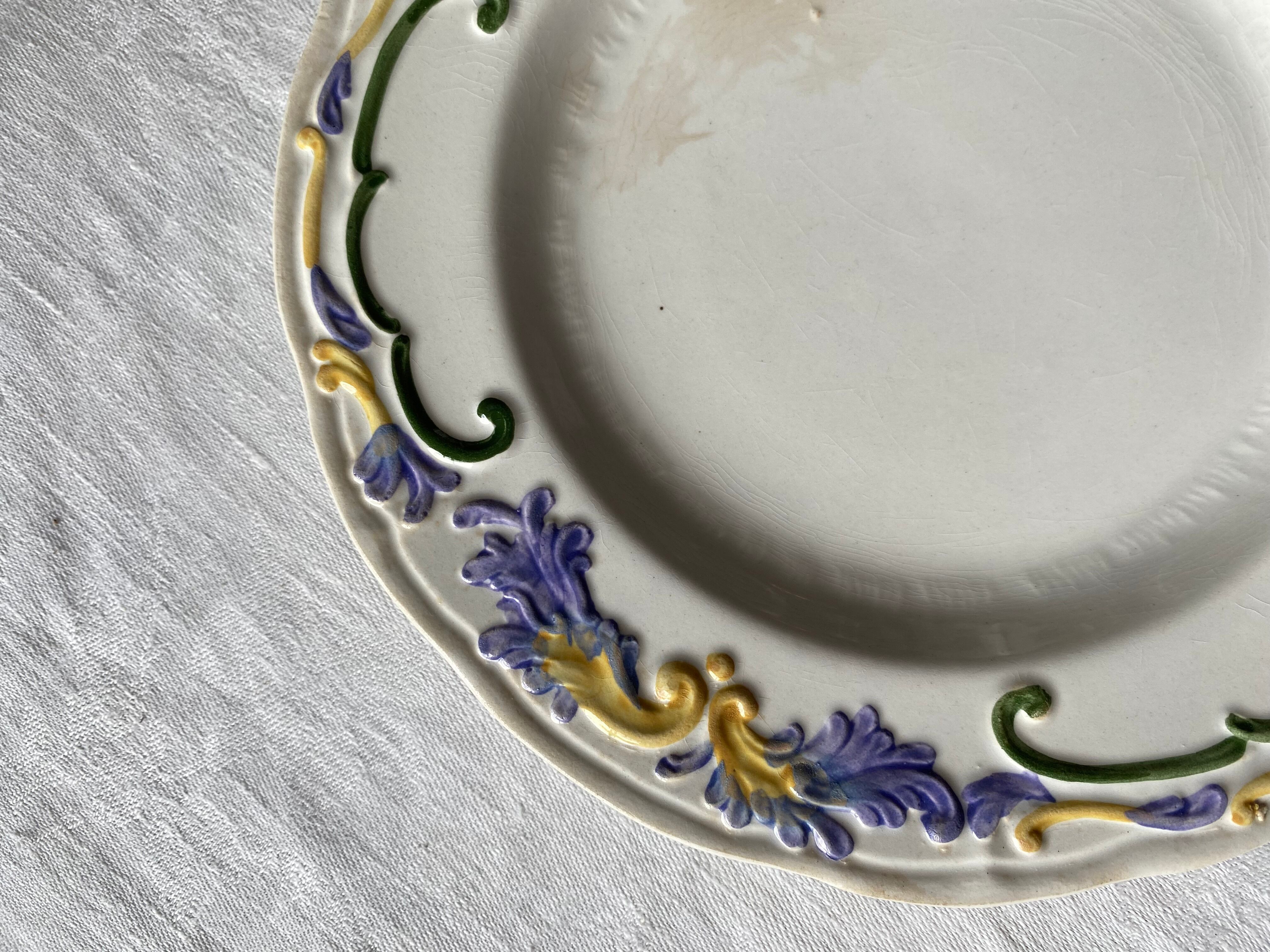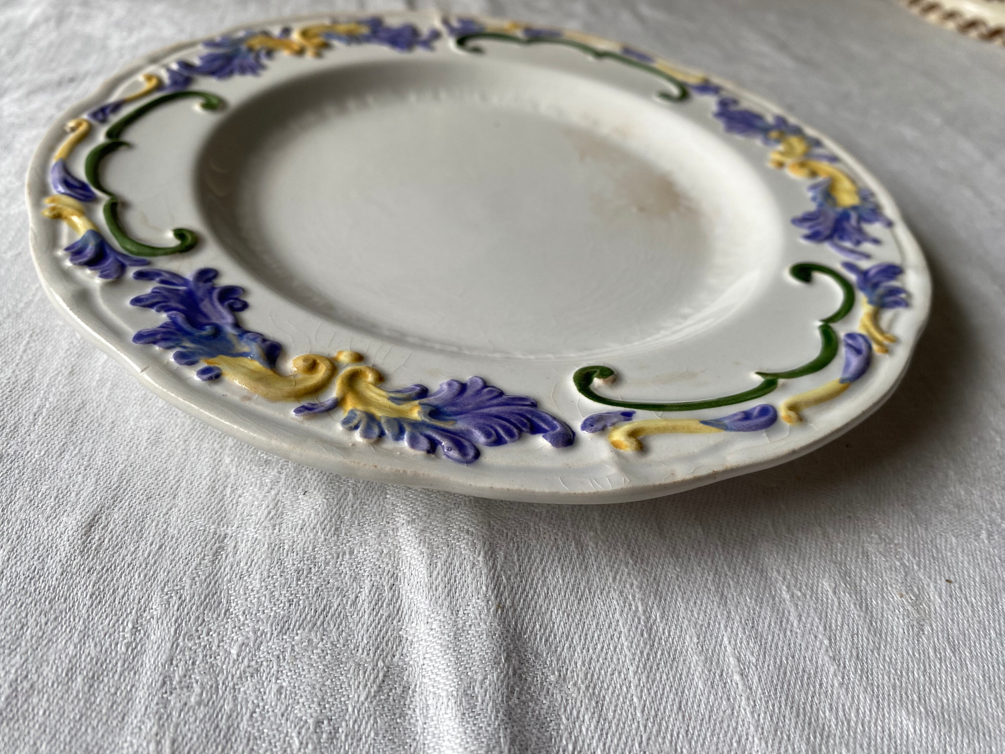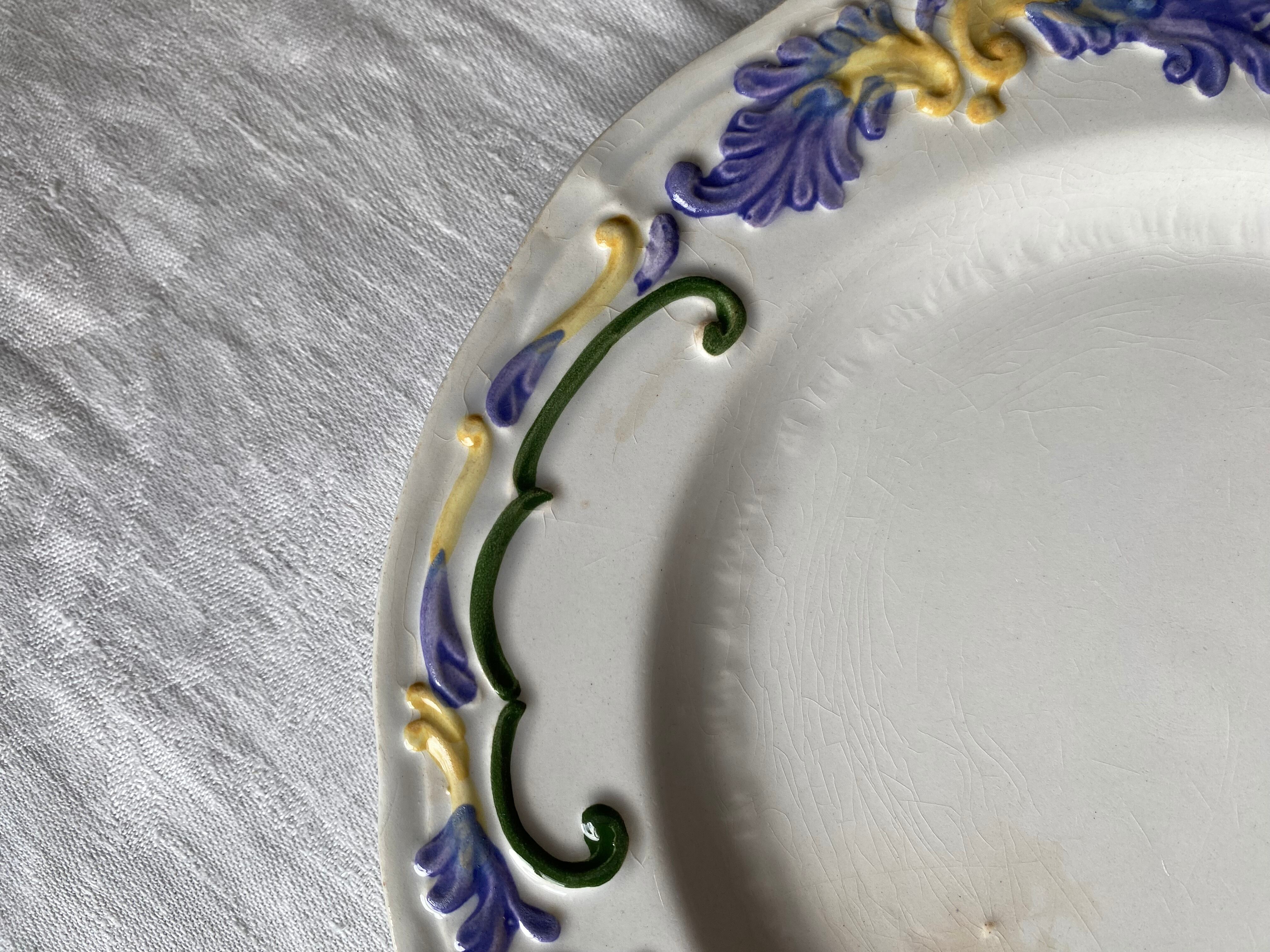 Creil et montereau バルボティーヌ アールヌーボー パープル モーブ 立体 プレート フランス アンティーク ボタニカル
