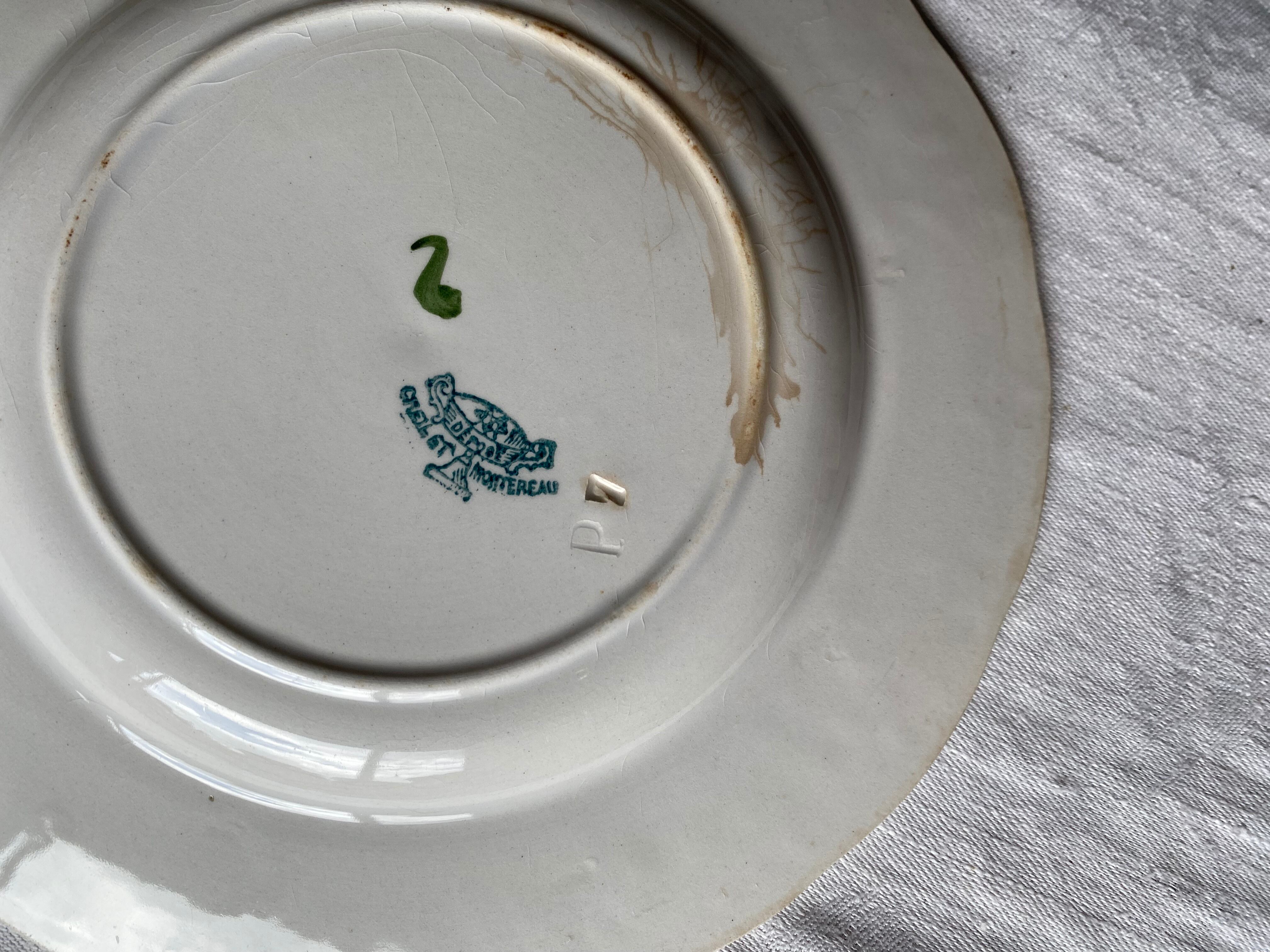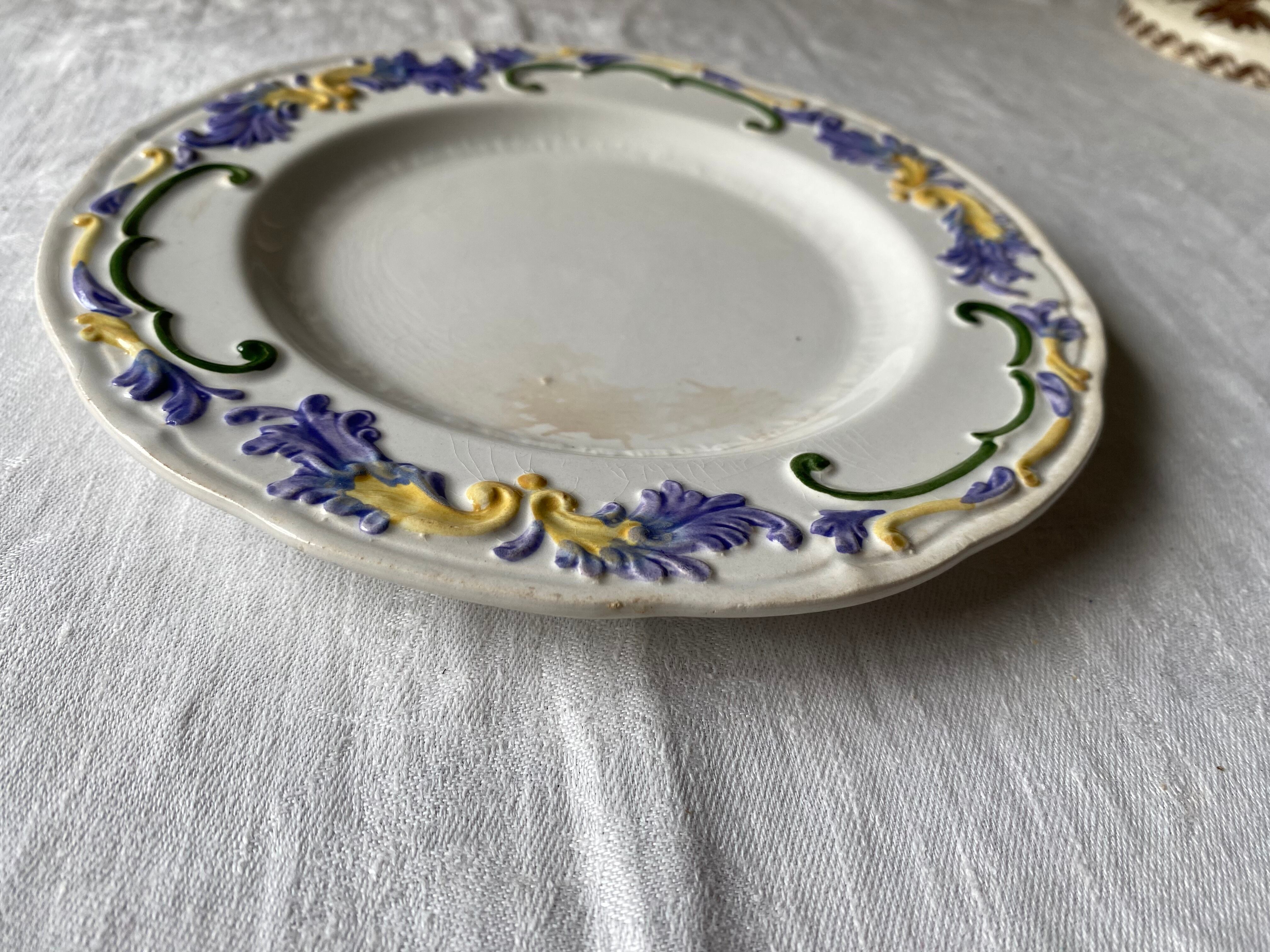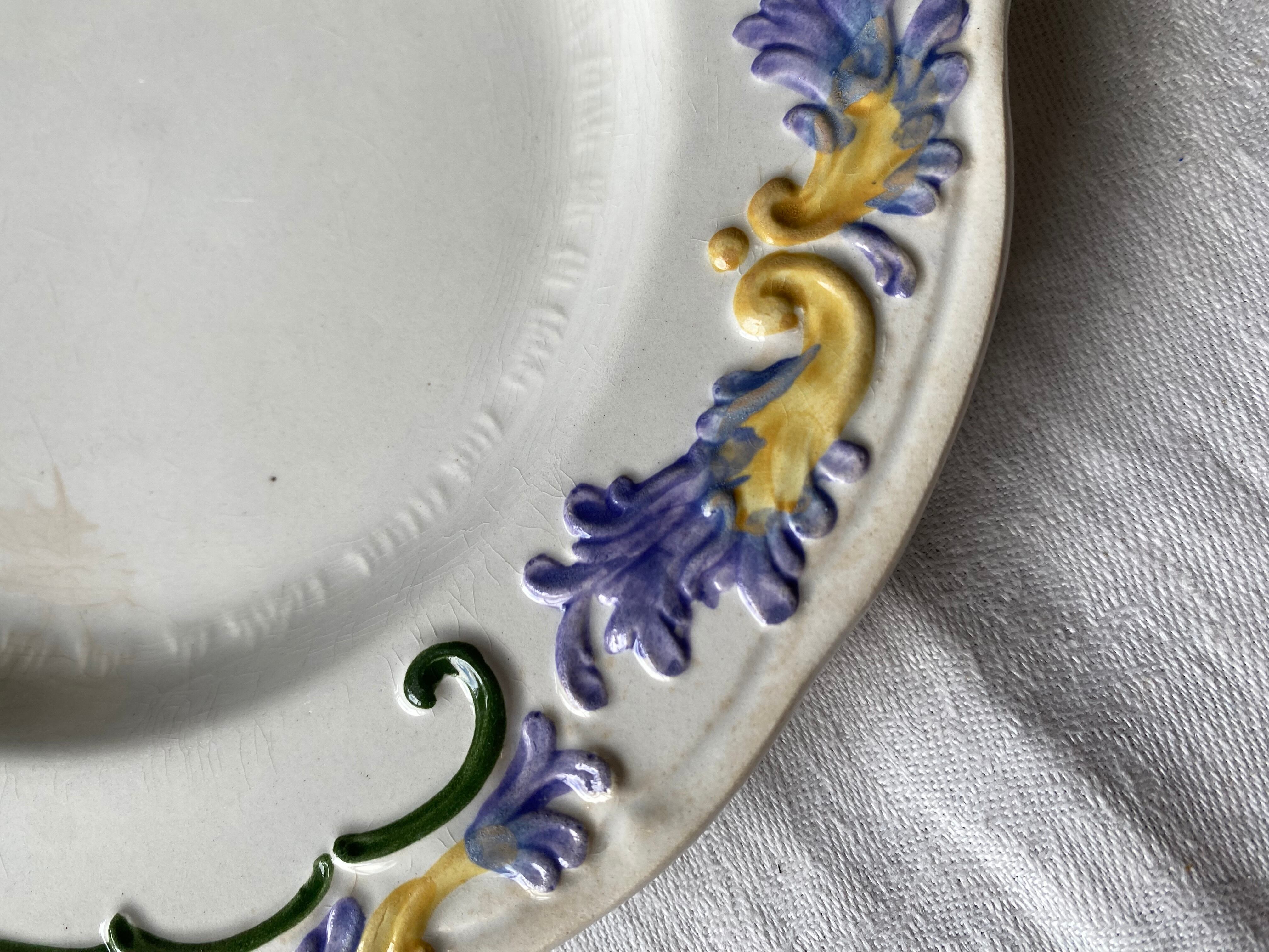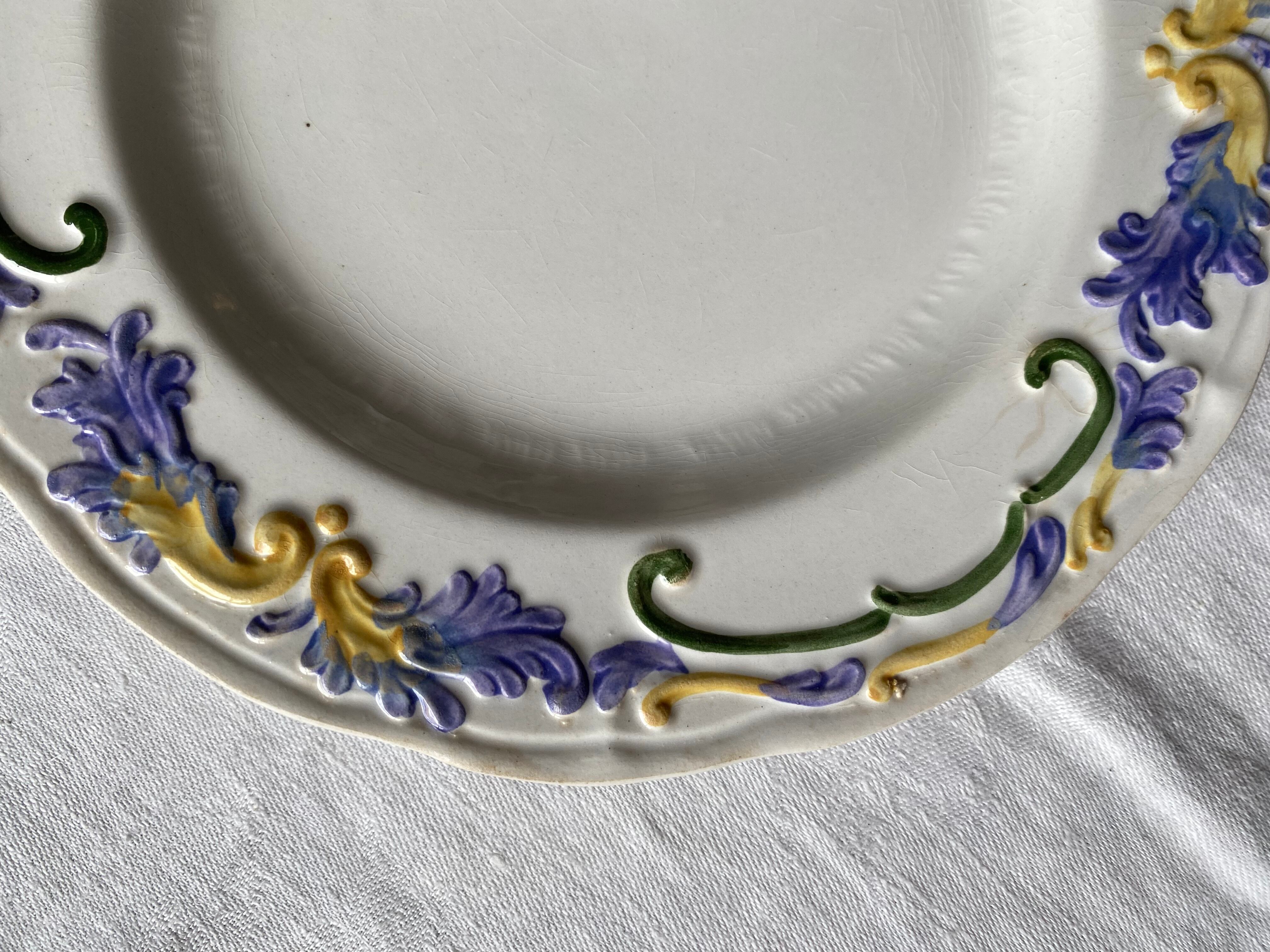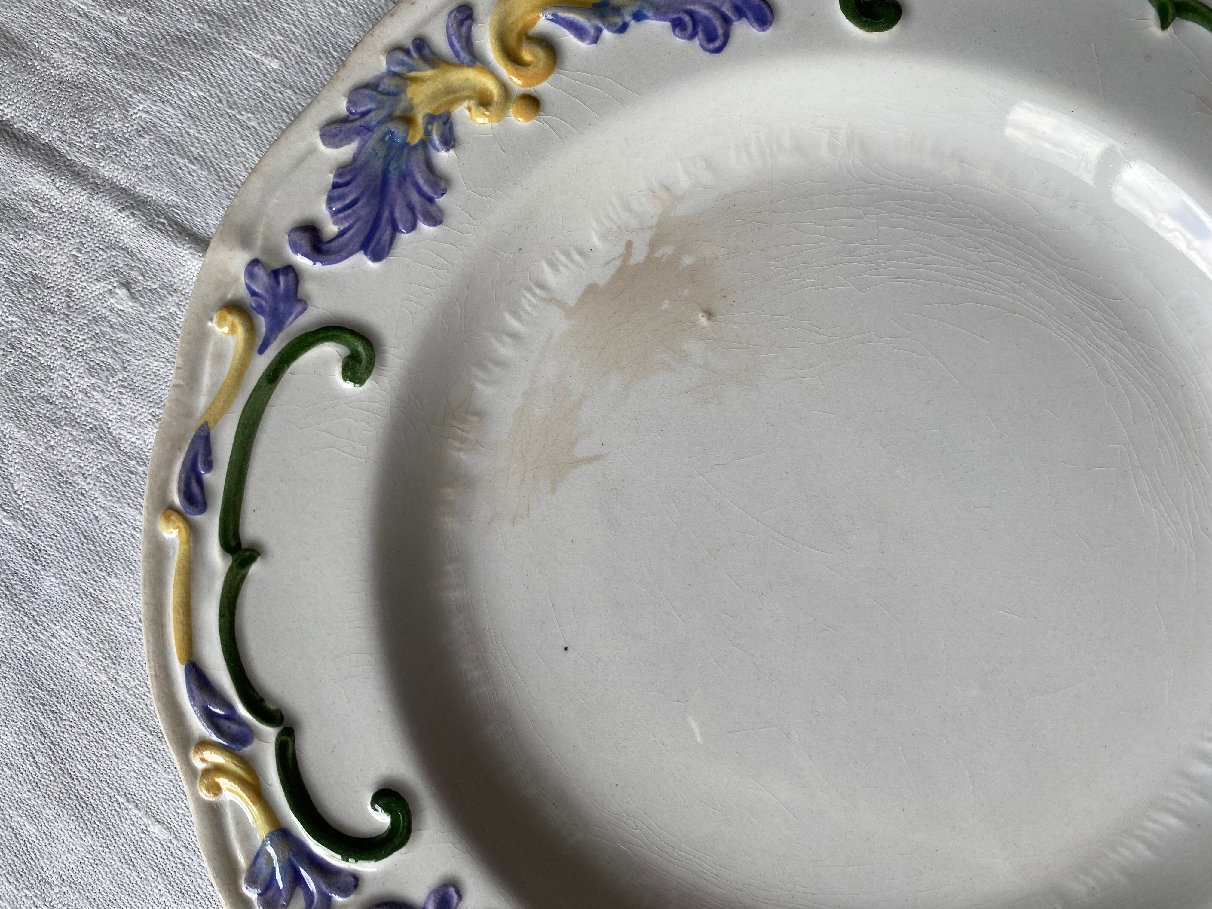 Creil et montereau バルボティーヌ アールヌーボー パープル モーブ 立体 プレート フランス アンティーク ボタニカル