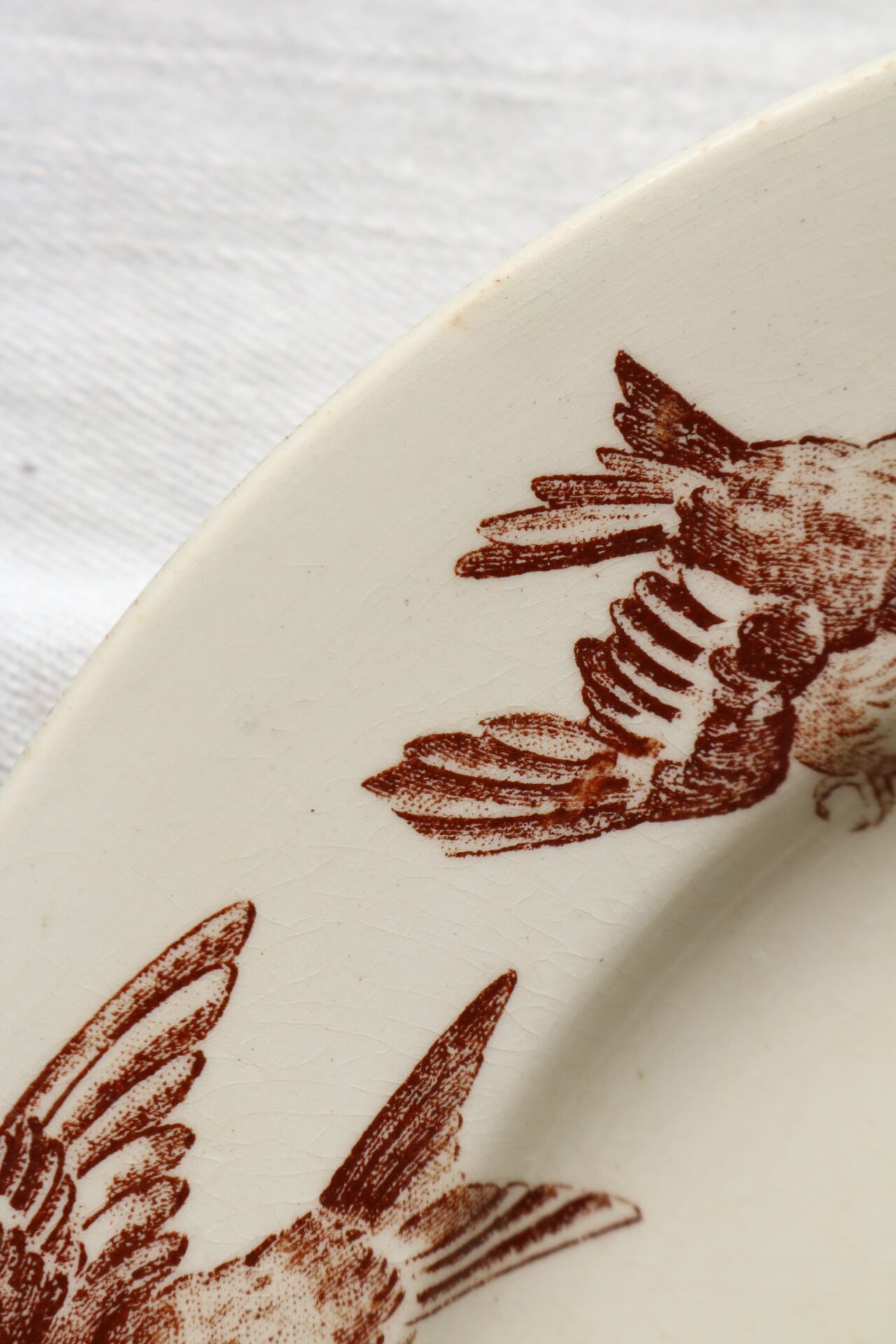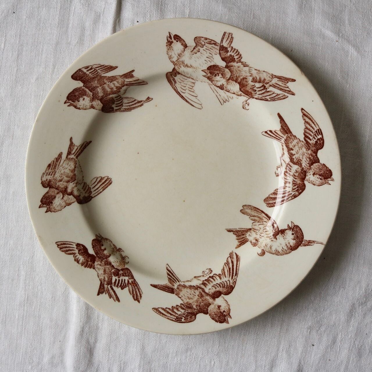 Luneville 希少 セピア ブラウン 小鳥 雀 a プレート フランス アンティーク