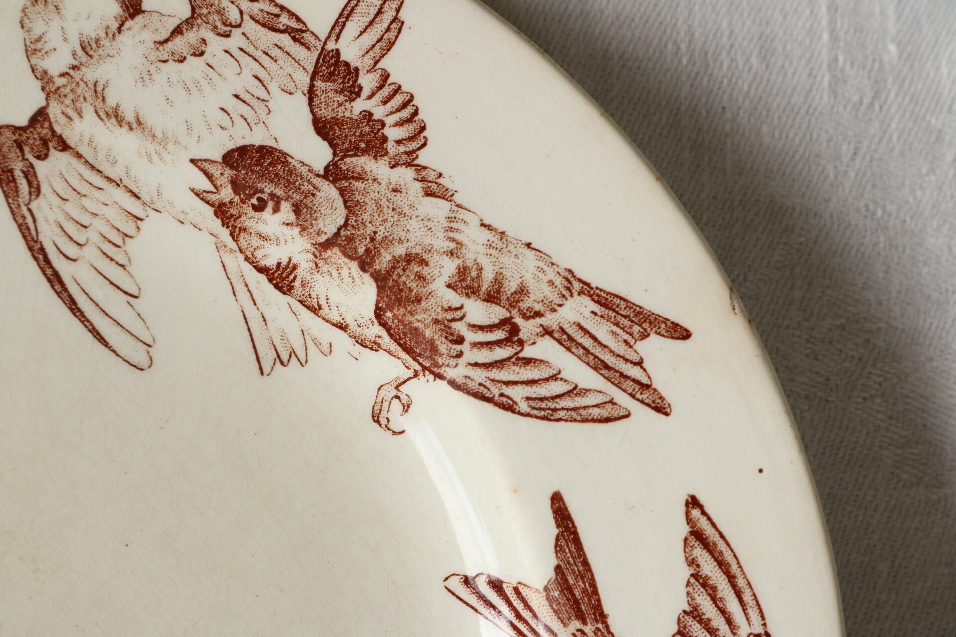 スズメのような小鳥がリム全面に転写されたプレートです。