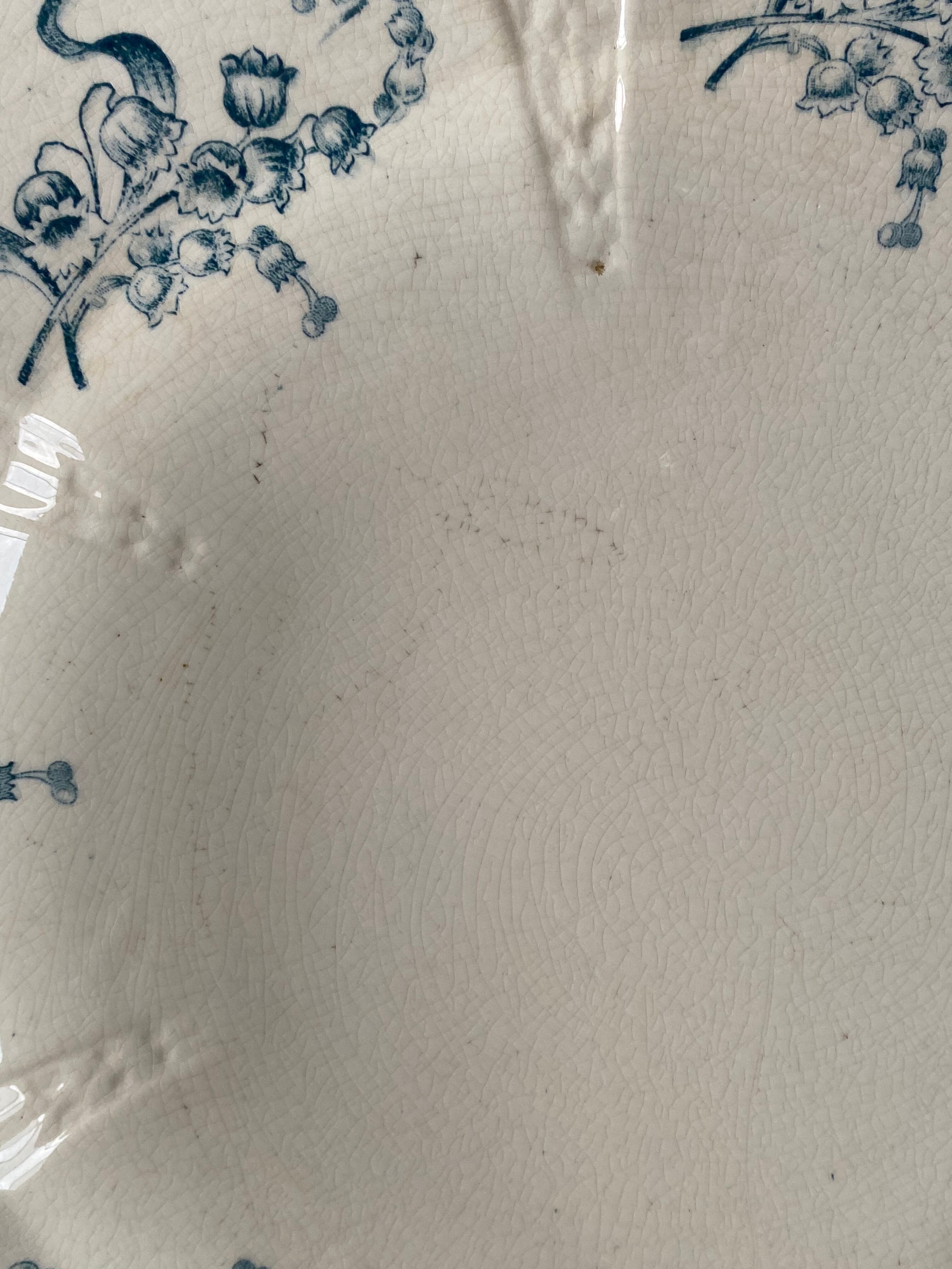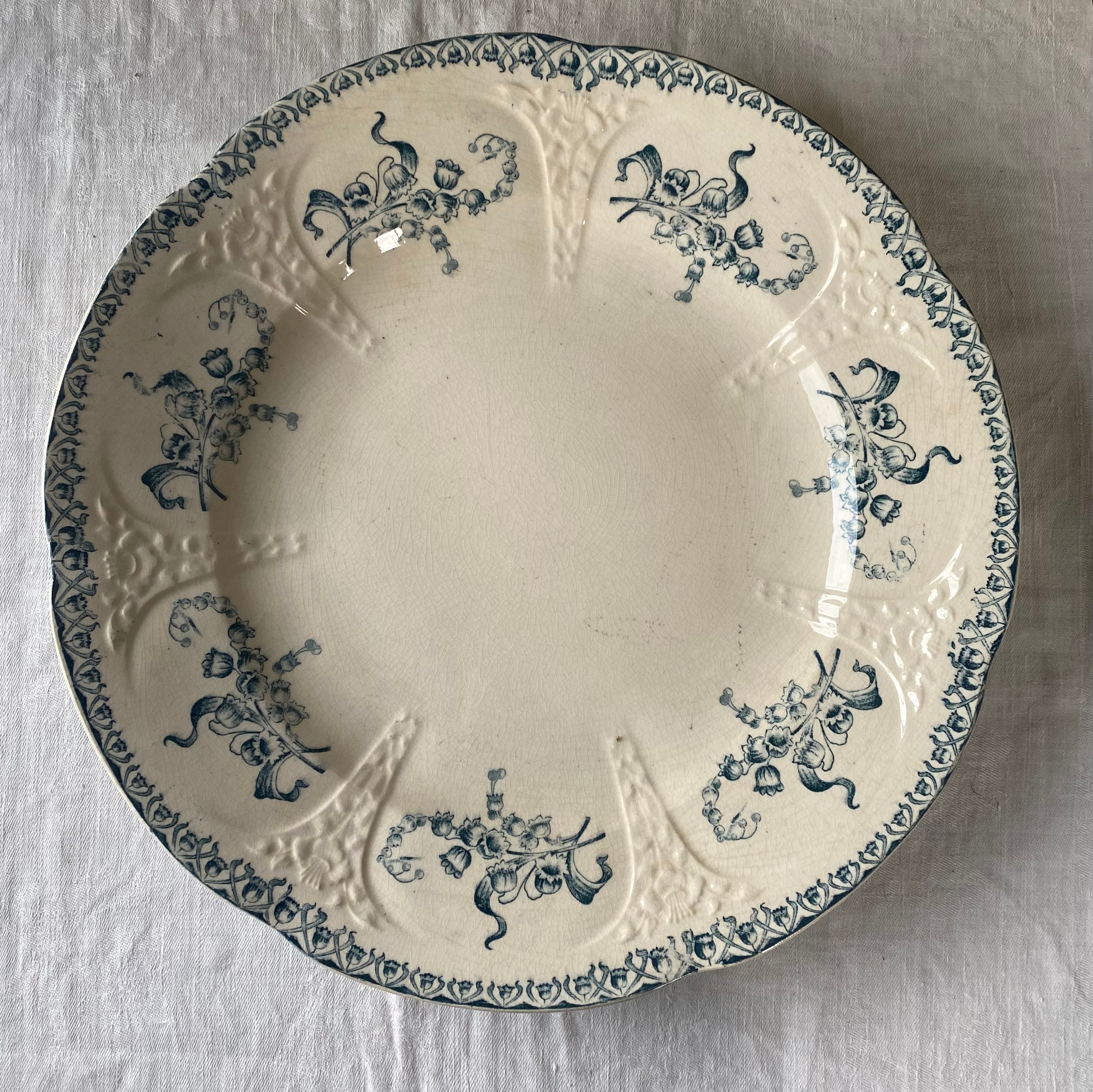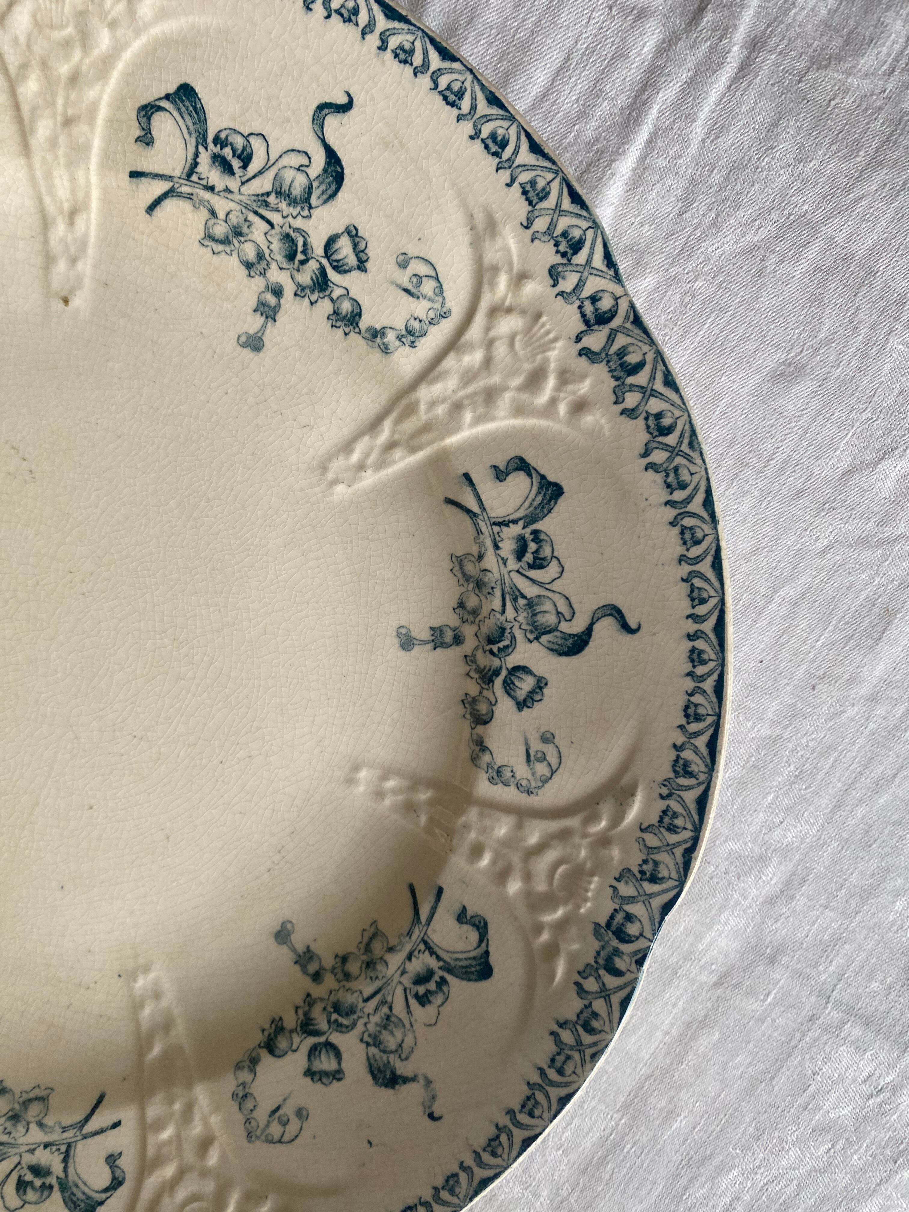 【大皿】φ33cm Longwy フランス アンティーク スズラン ミュゲ プレート b ボタニカル レリーフ フランス アンティーク