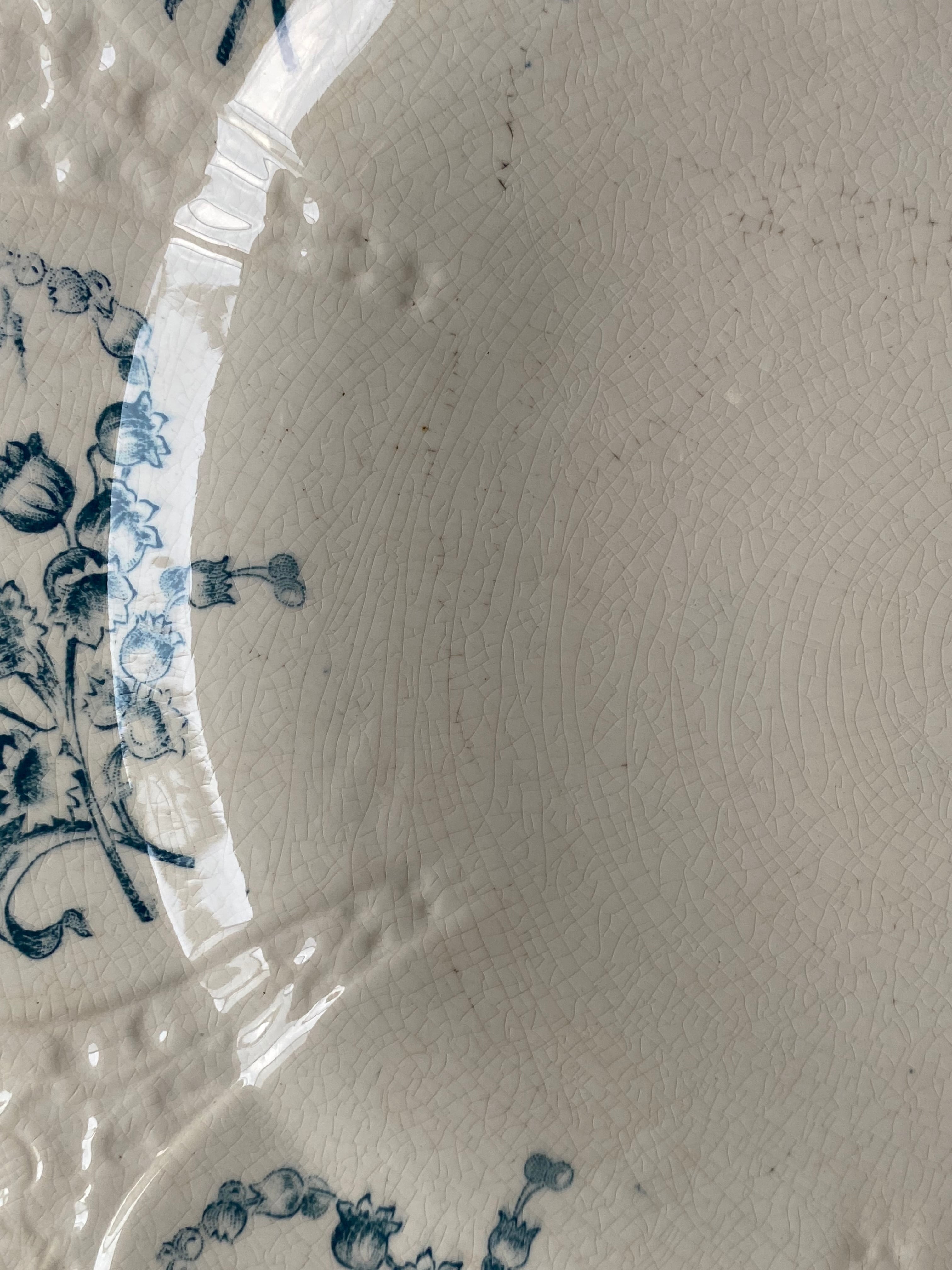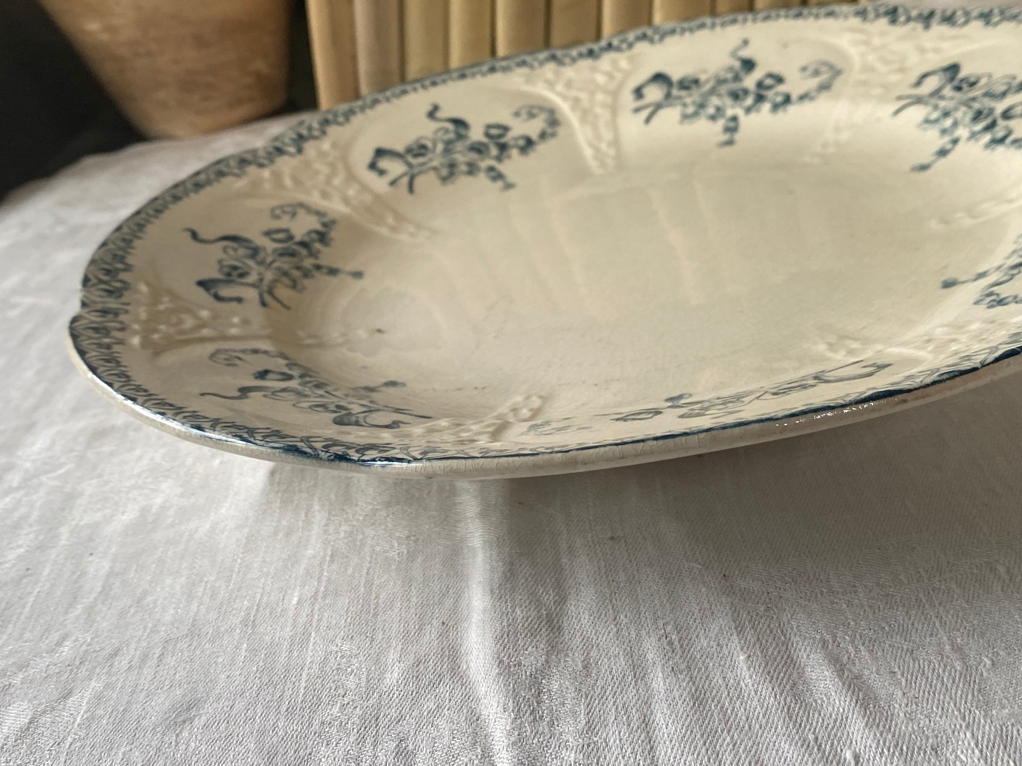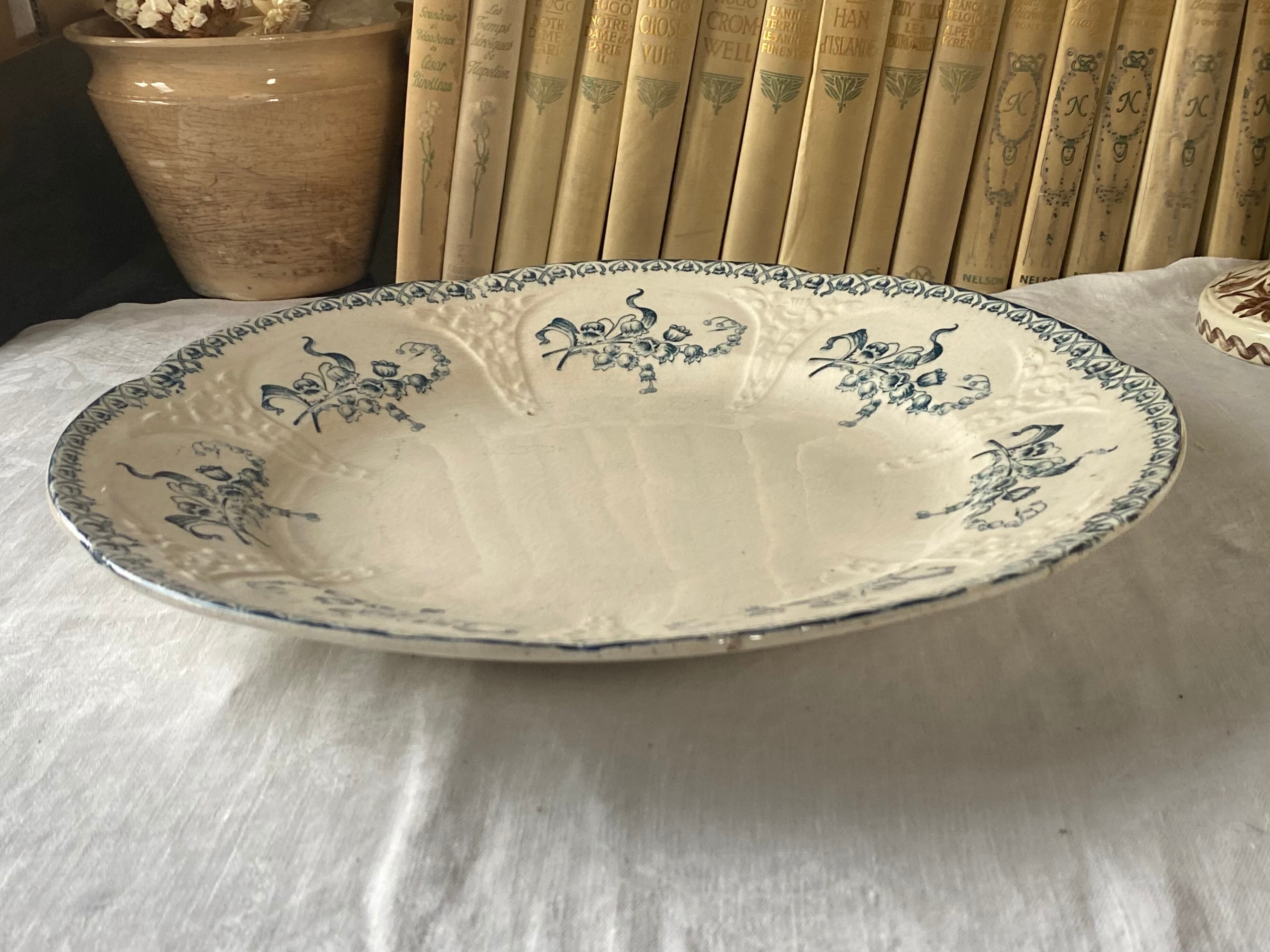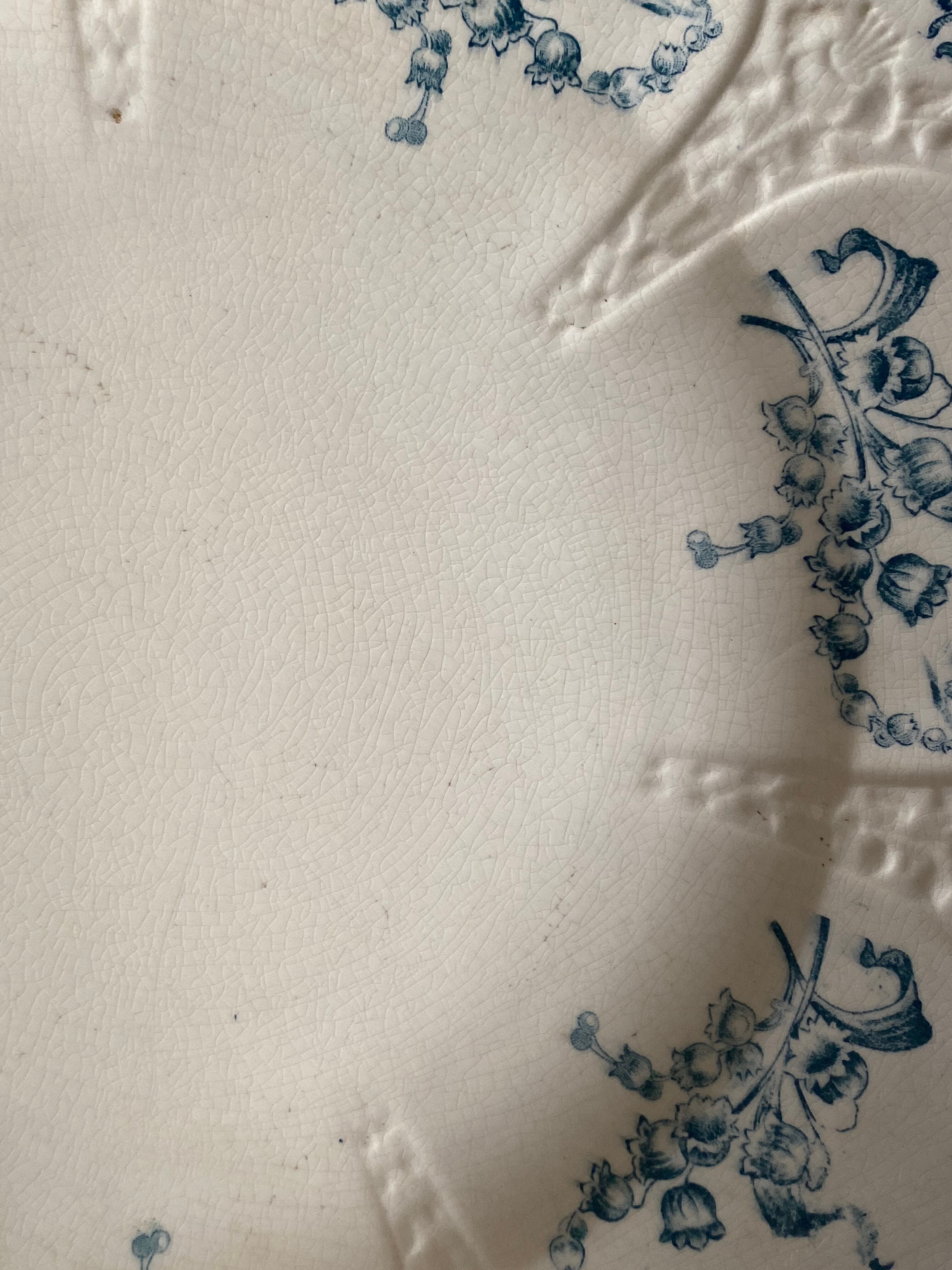 【大皿】φ33cm Longwy フランス アンティーク スズラン ミュゲ プレート b ボタニカル レリーフ フランス アンティーク