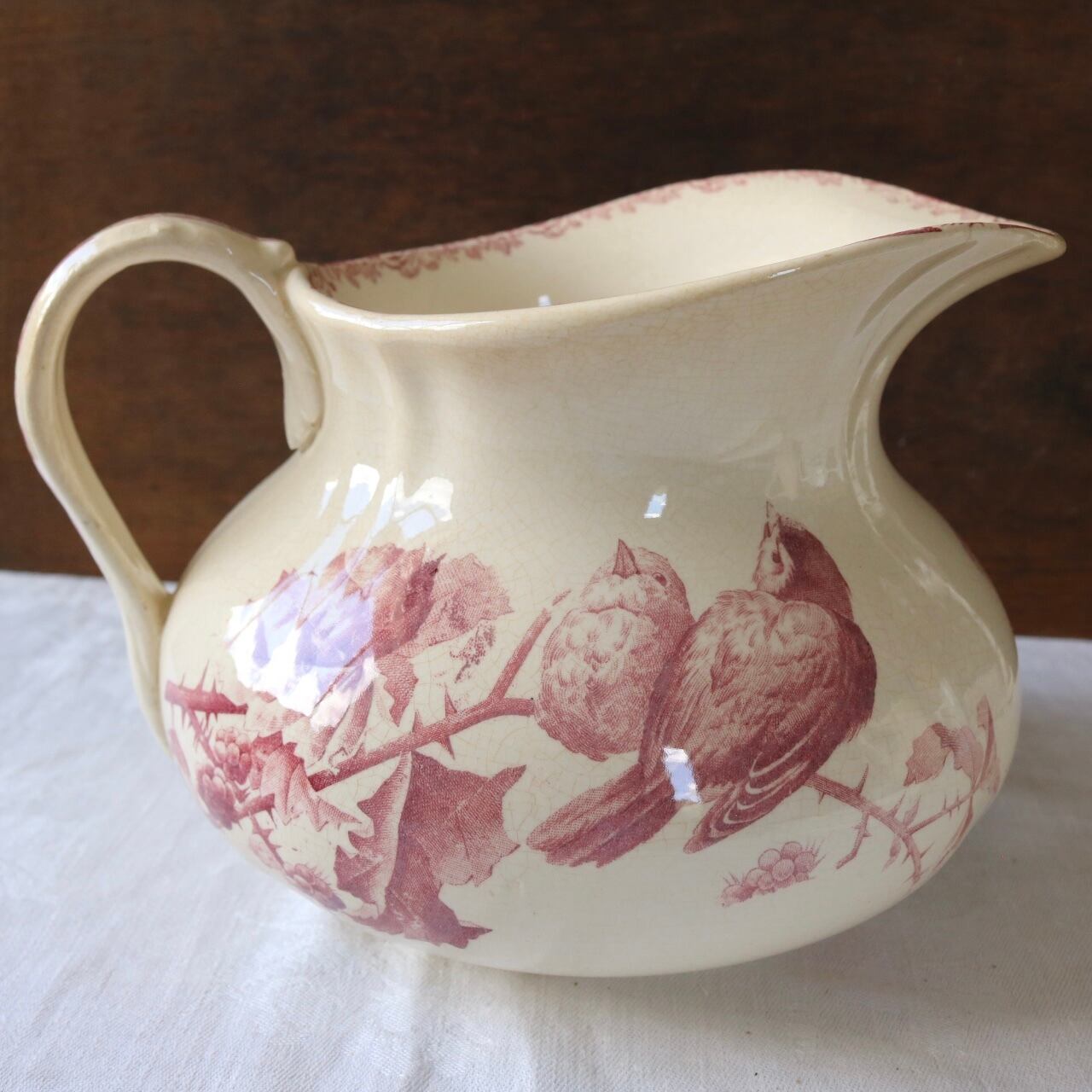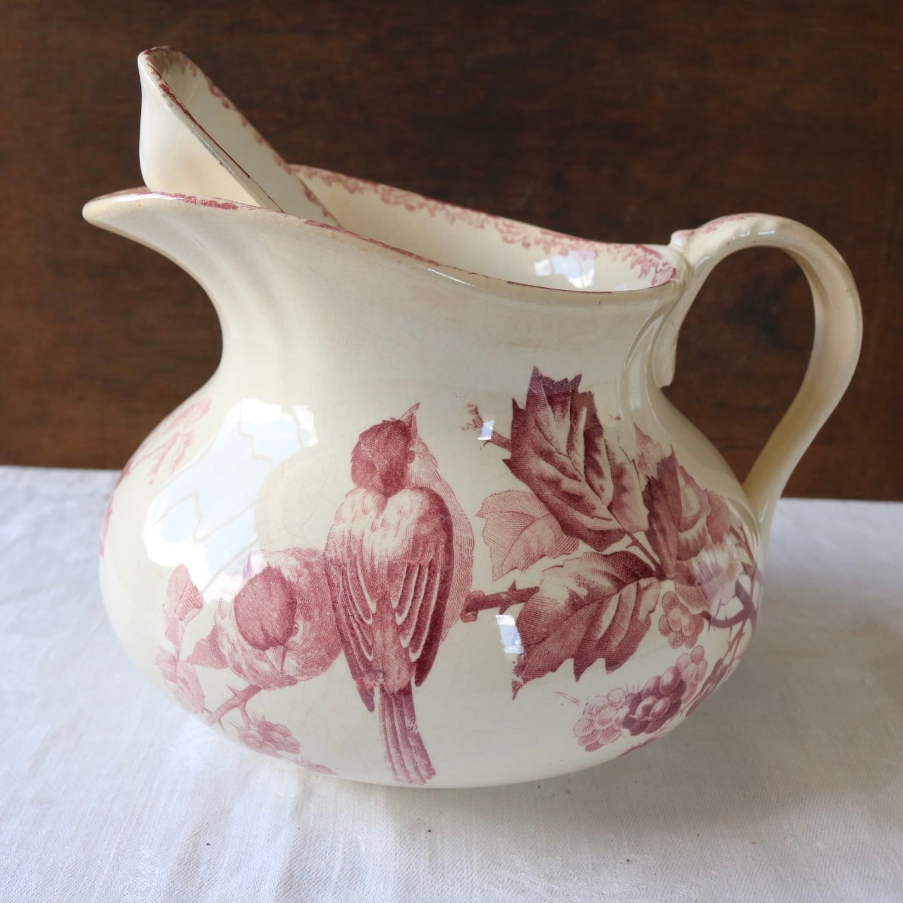 【送料無料】Choisy le roi 小鳥 水差し 洗面セット 歯ブラシ置き 櫛おき ラヴィエ バーガンディ 赤 フランス アンティーク ピッチャー ピシェ