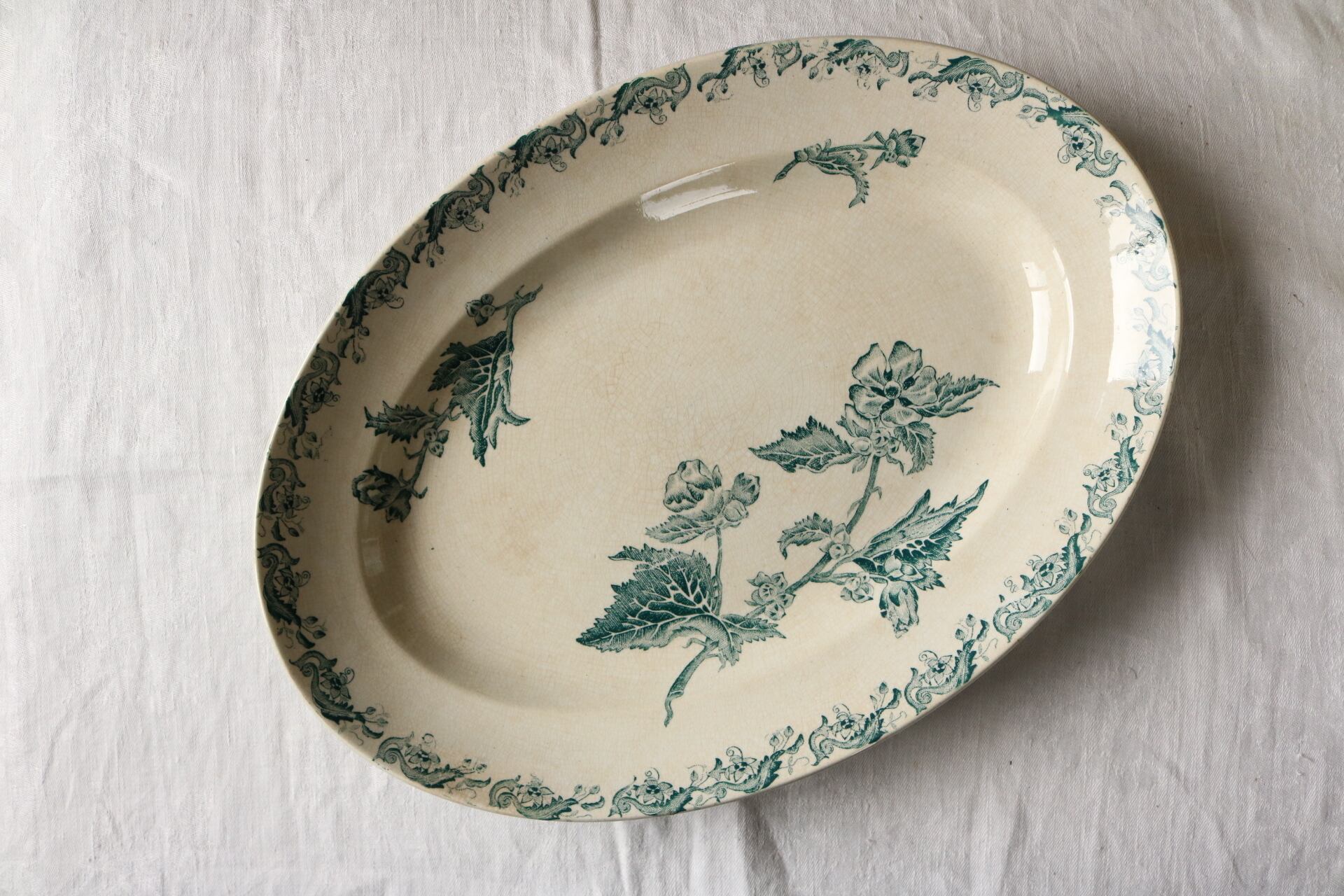 【大皿】オーバル プレート saint amand ブルーグリーン フランス アンティーク アール・ヌーヴォー