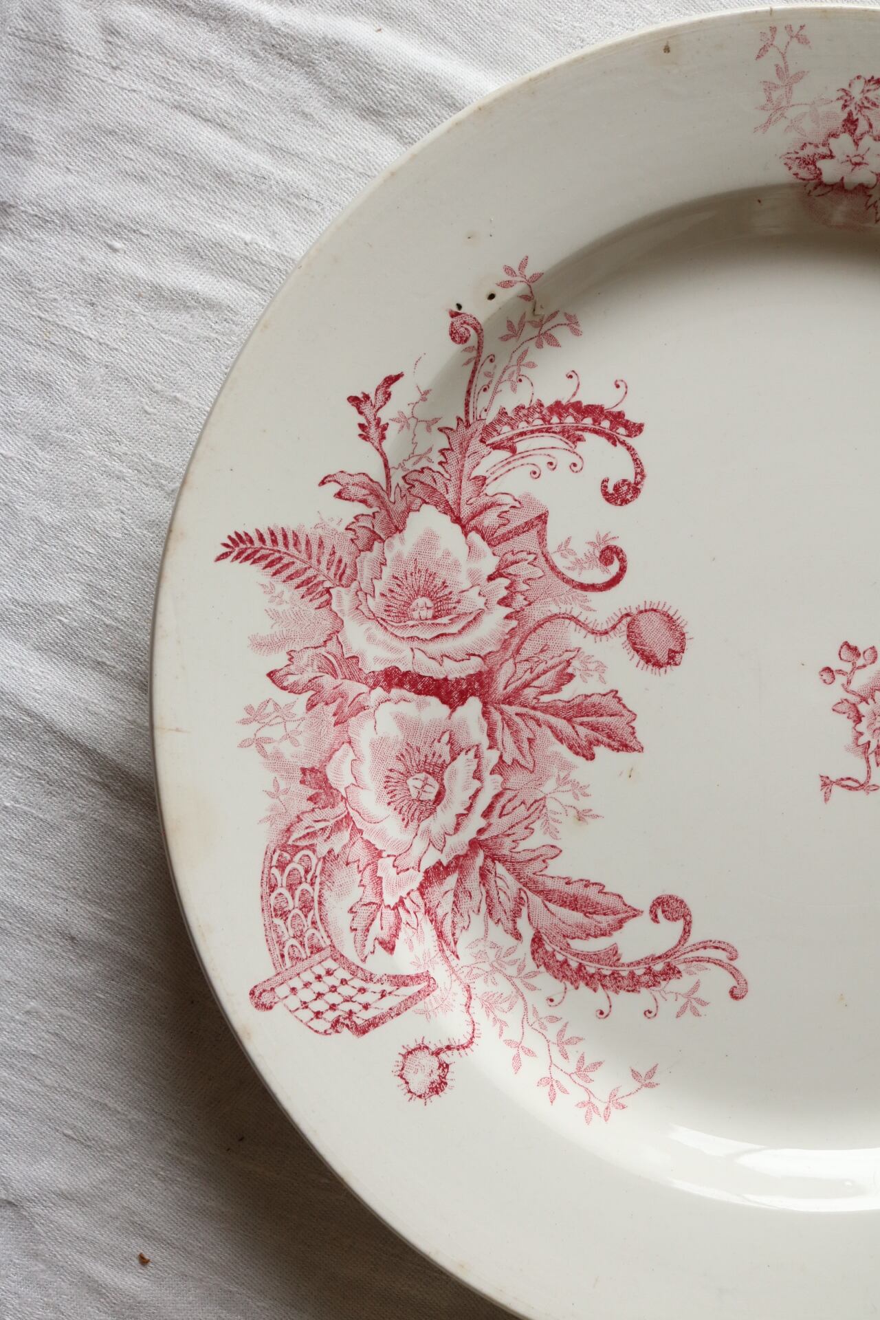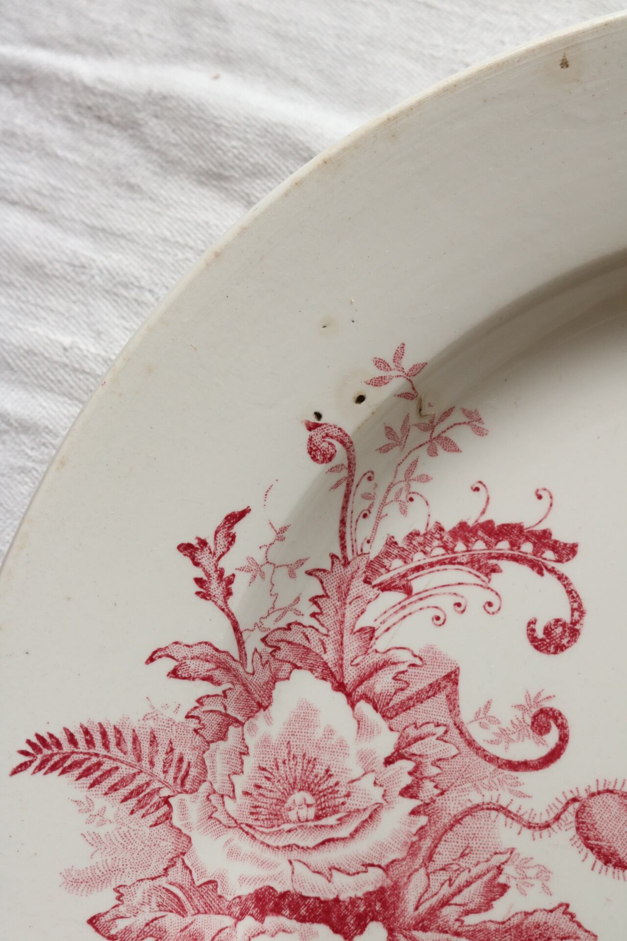 大きめ プレート ベルギー nimy 赤 ピンク ポピー アンティーク