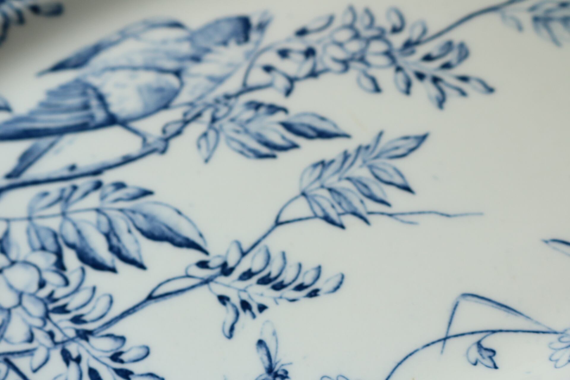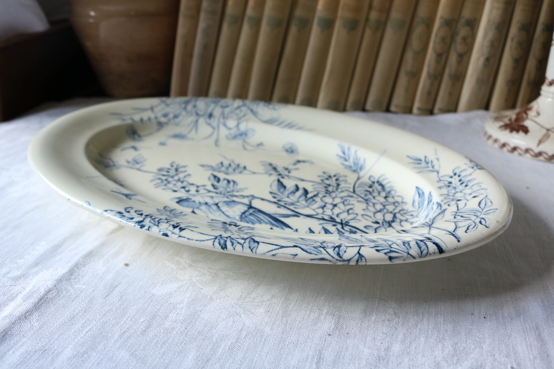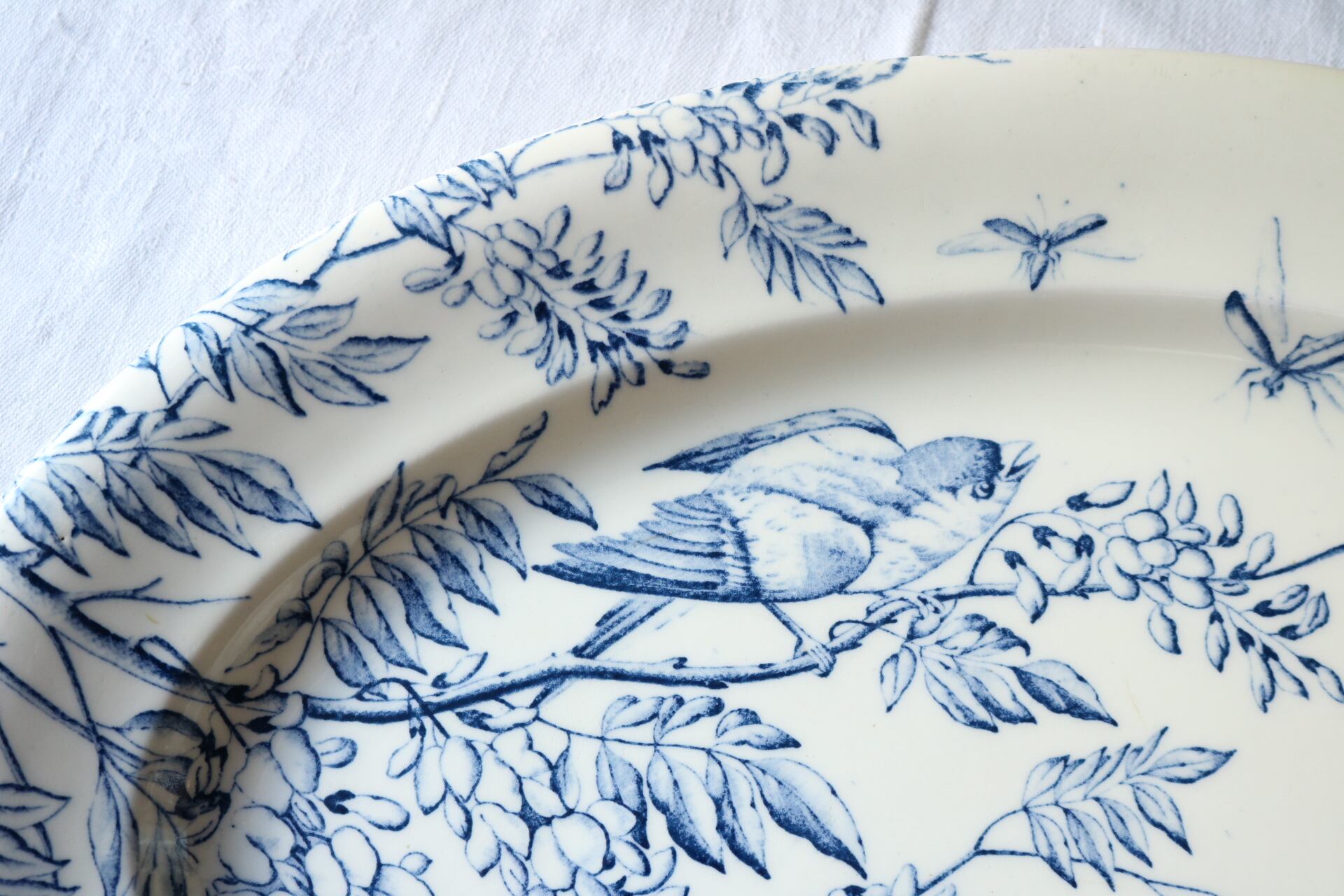 【大皿】オーバル 37cm プレート クレールフォンテーヌ ブルー 小鳥 フランス アンティーク ボタニカル