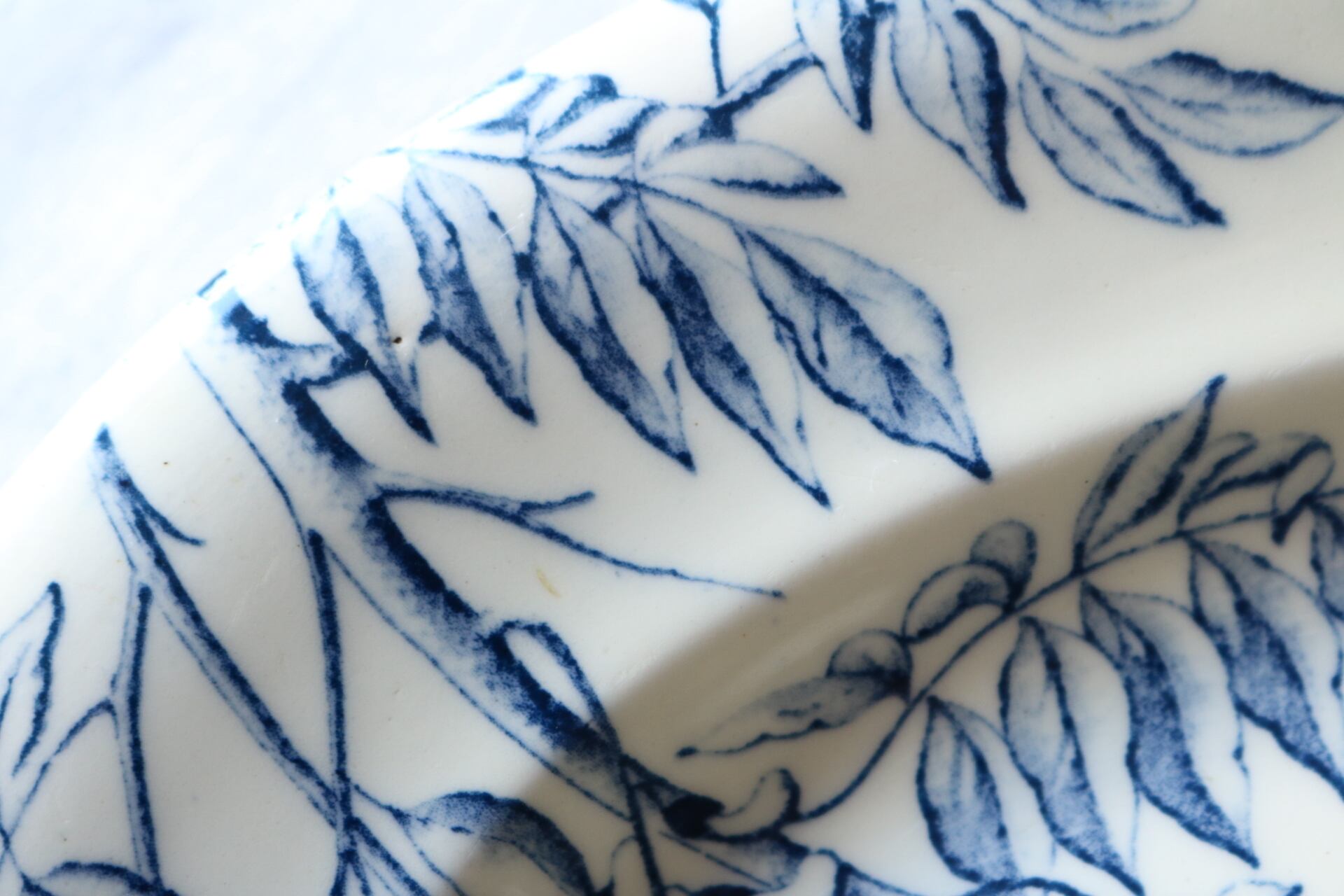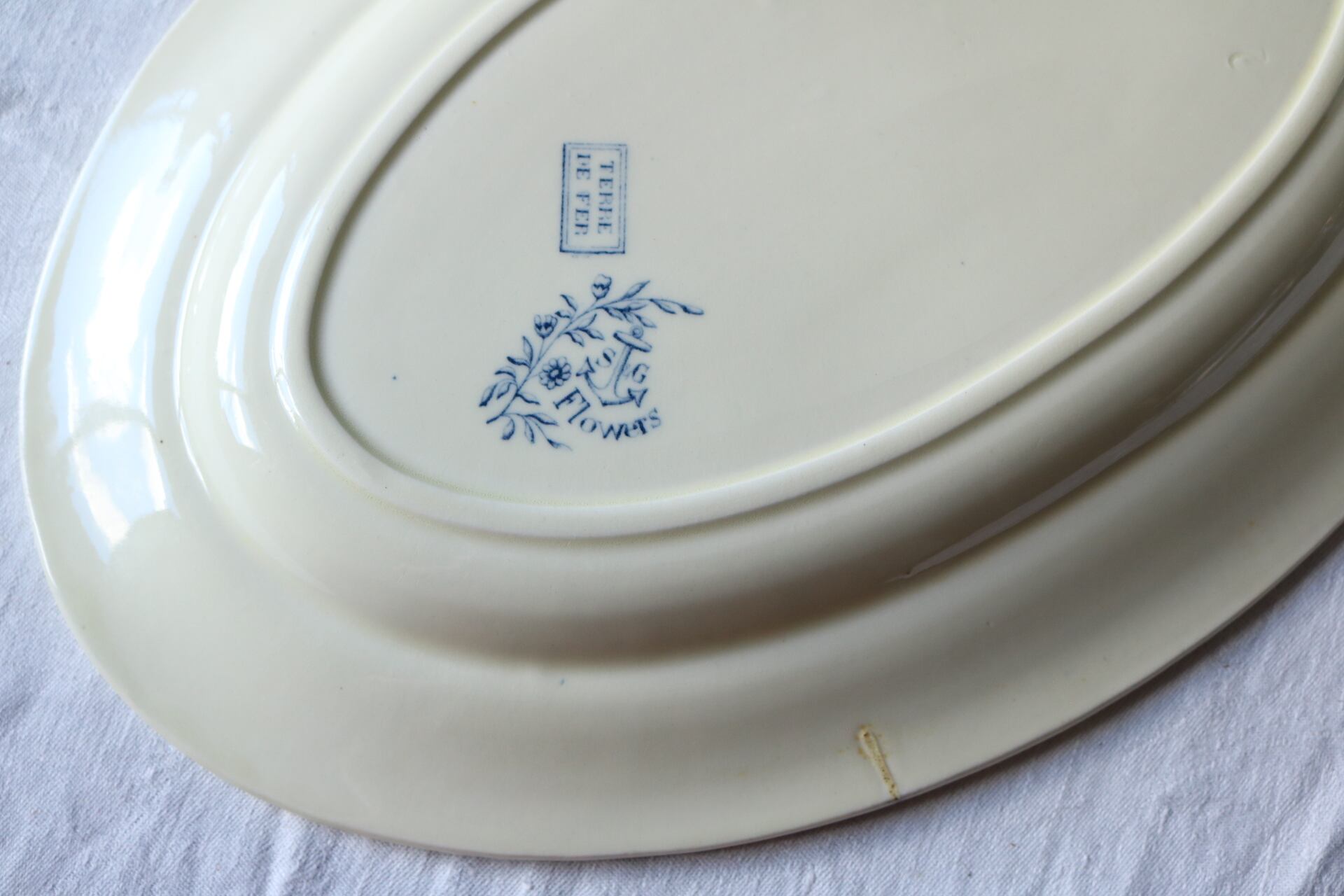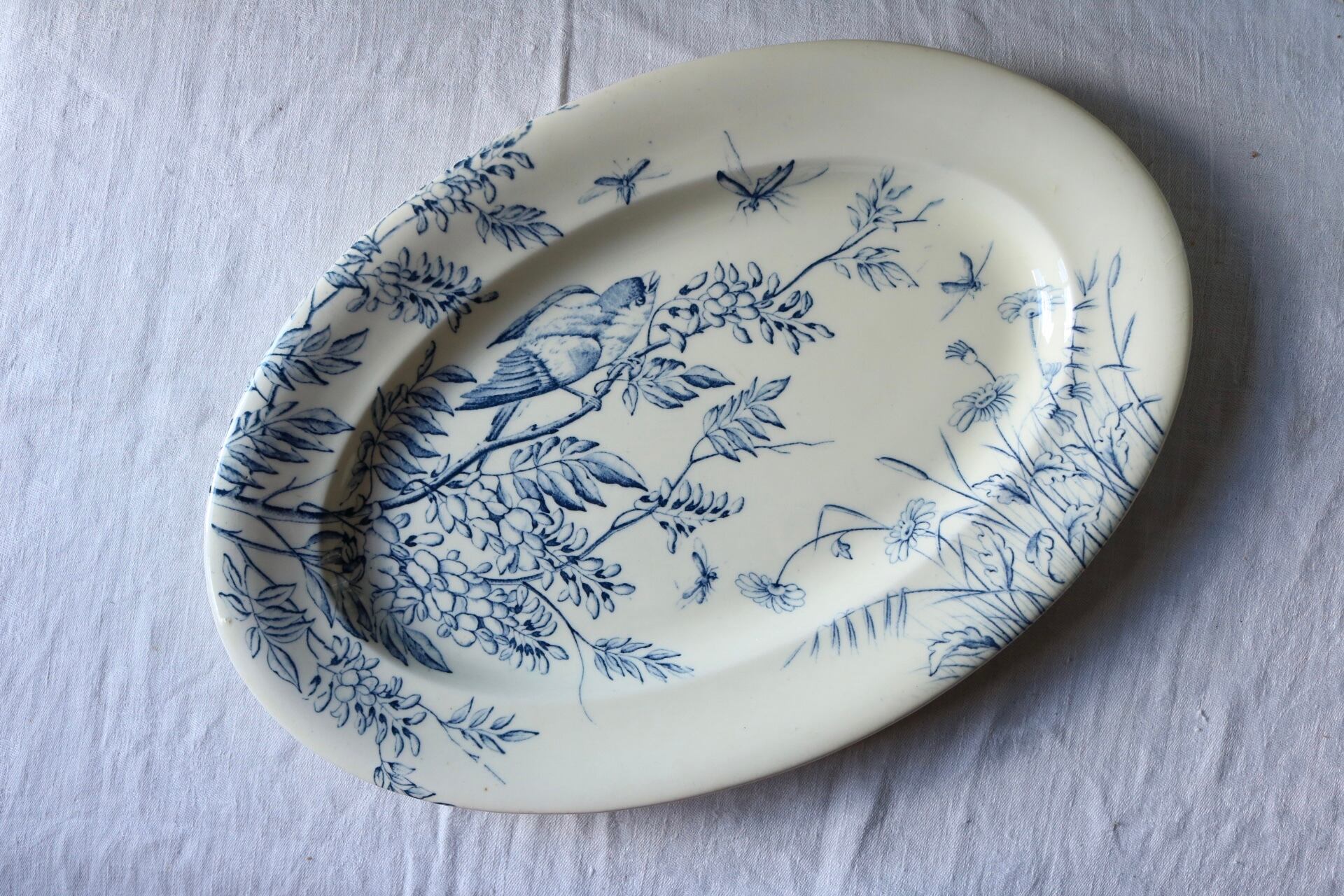 【大皿】オーバル 37cm プレート クレールフォンテーヌ ブルー 小鳥 フランス アンティーク ボタニカル