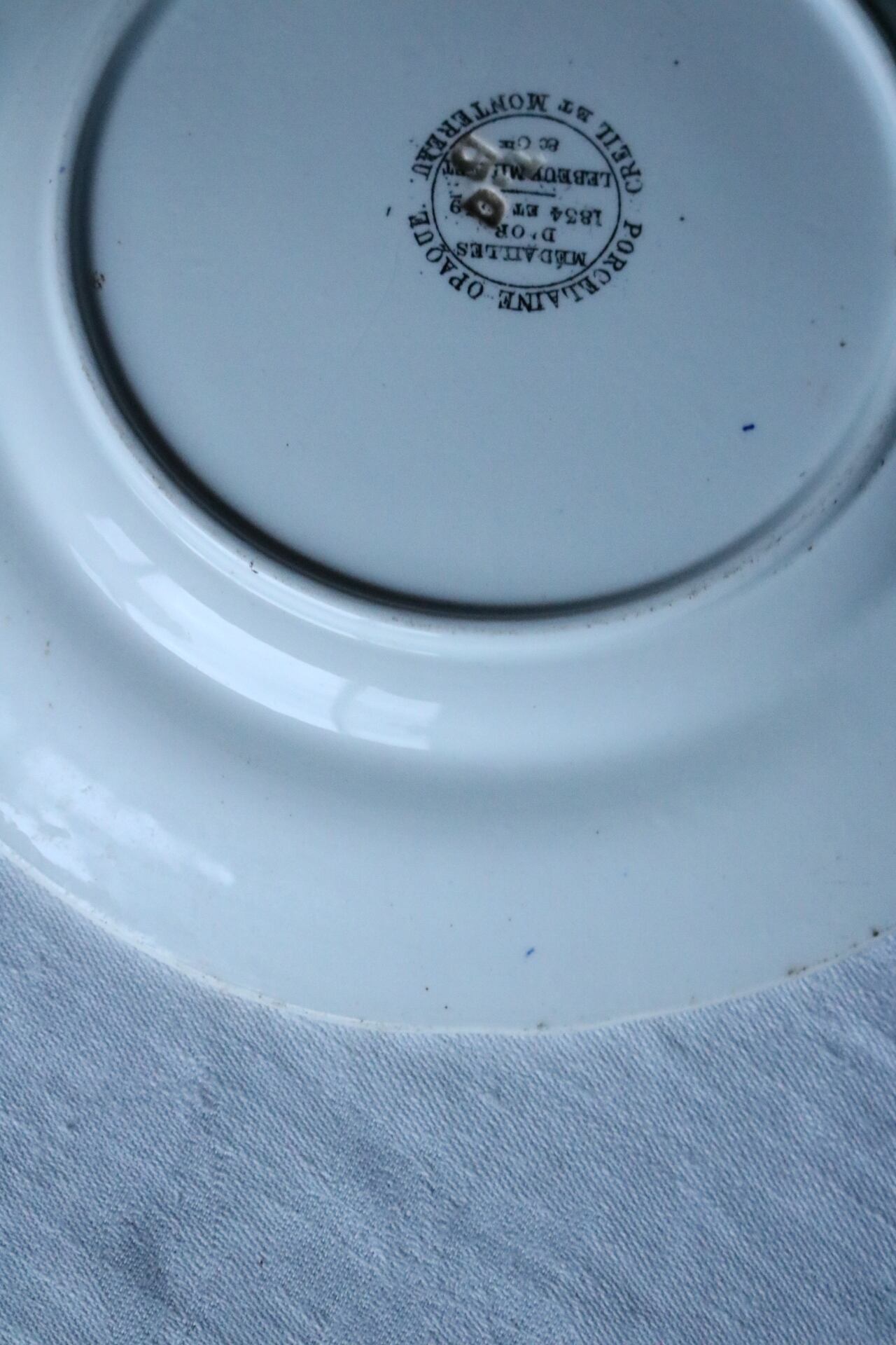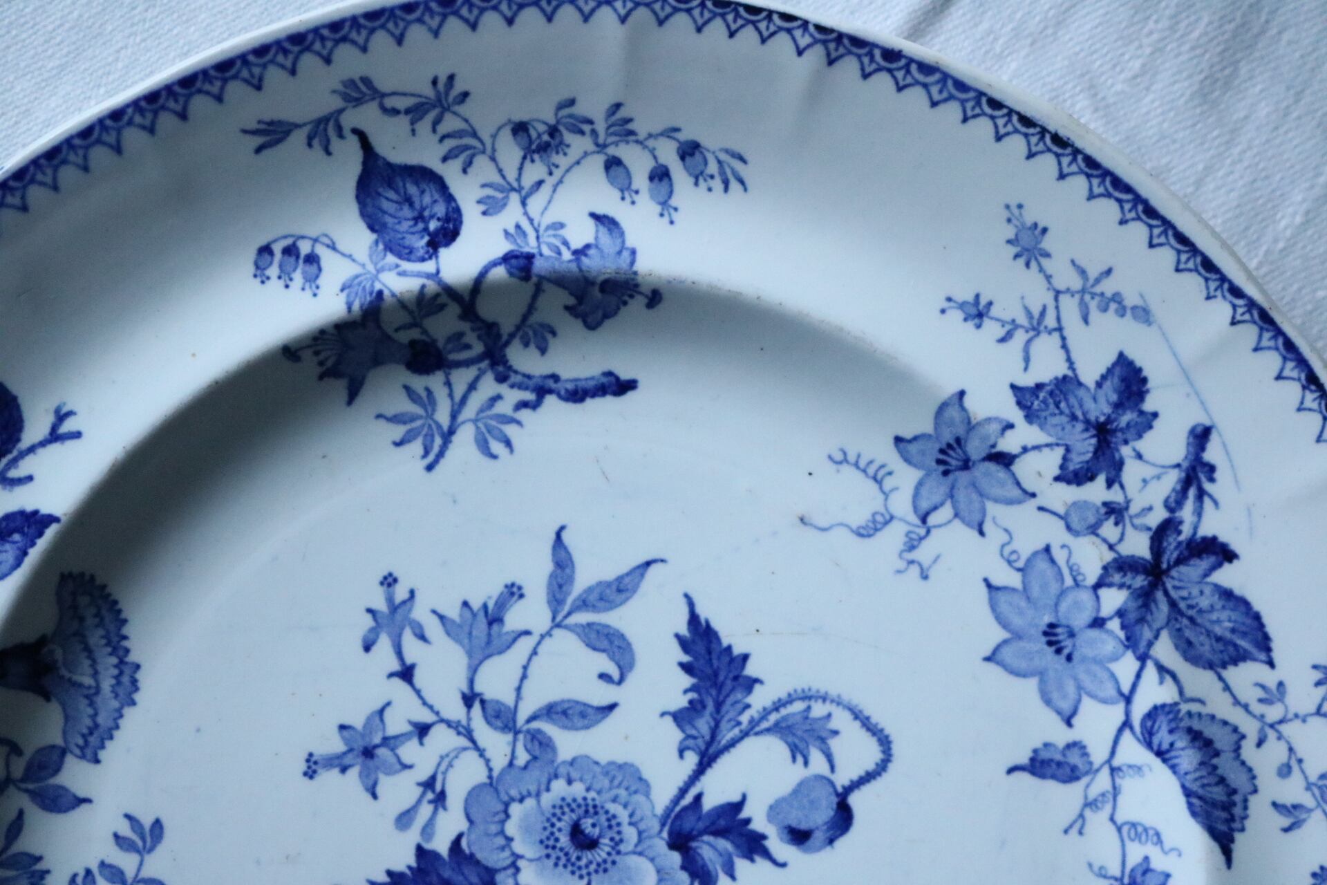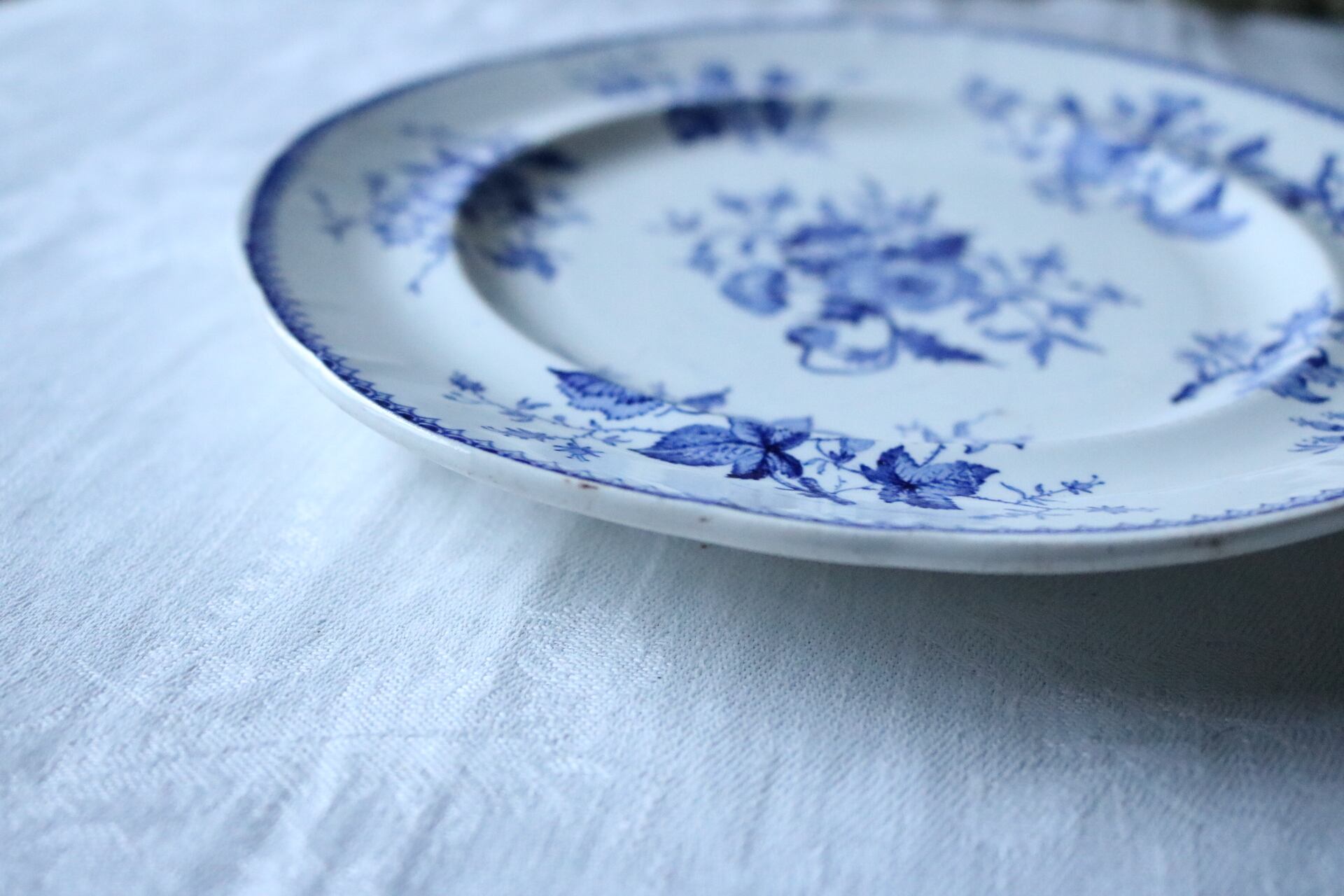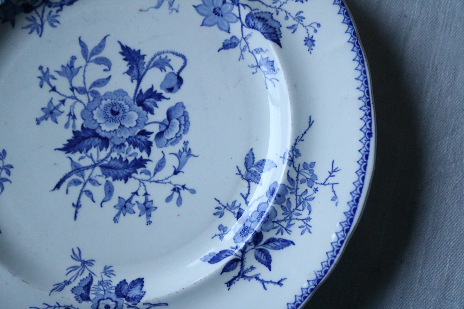 Creil montereau プレート ファイアンスフィーヌ ブルー 小花柄 フランス アンティーク