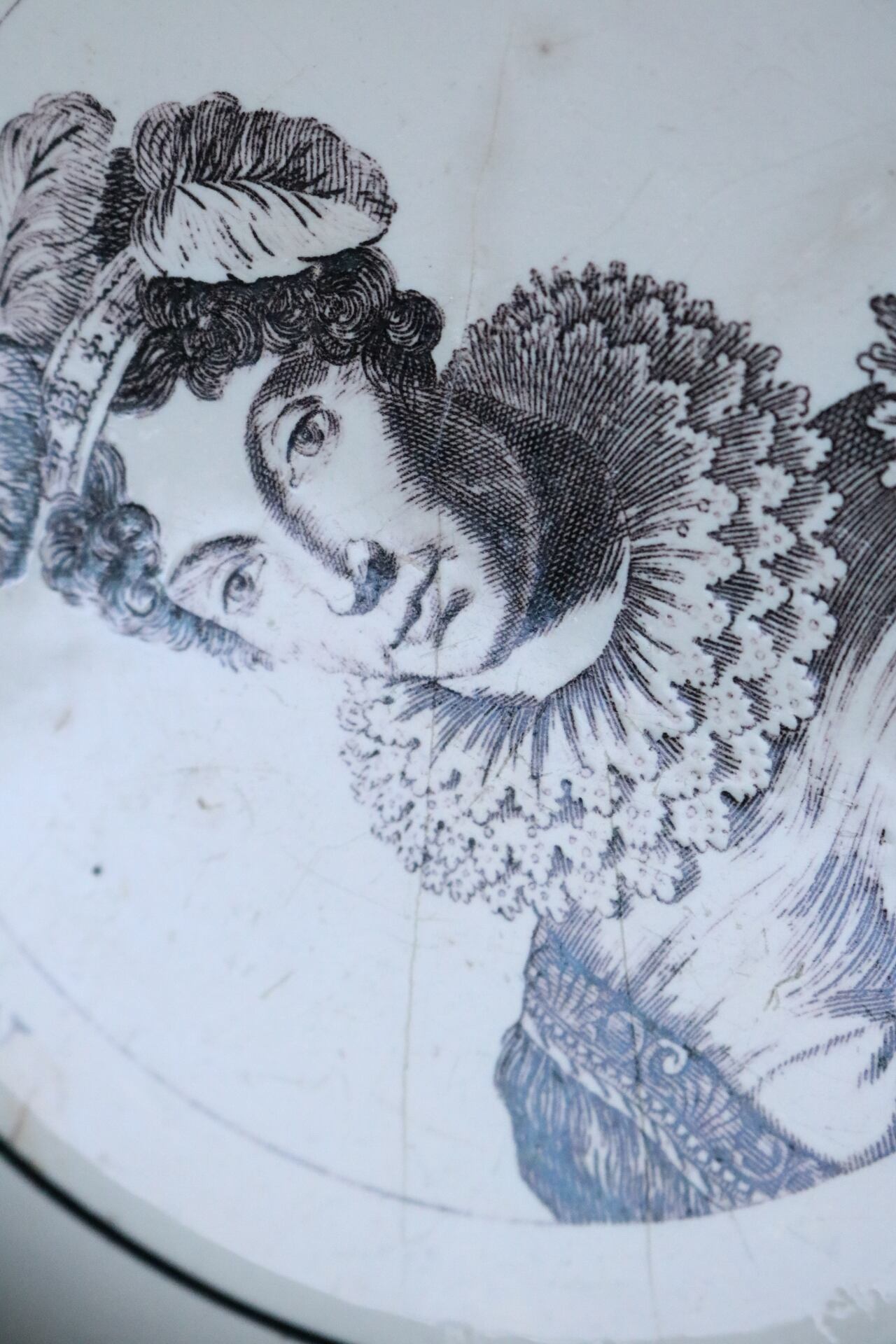 montereau 人物 肖像画 マリーテレーズ b グリザイユ ファイアンスフィーヌ フランス アンティーク