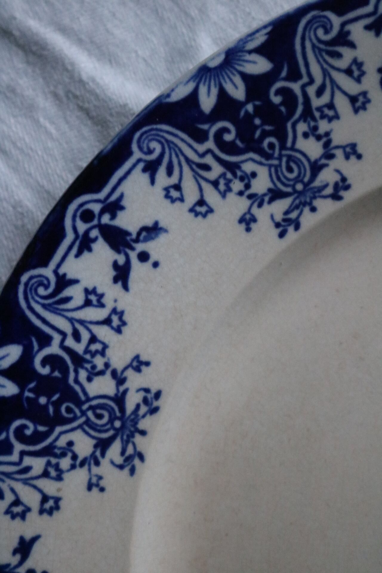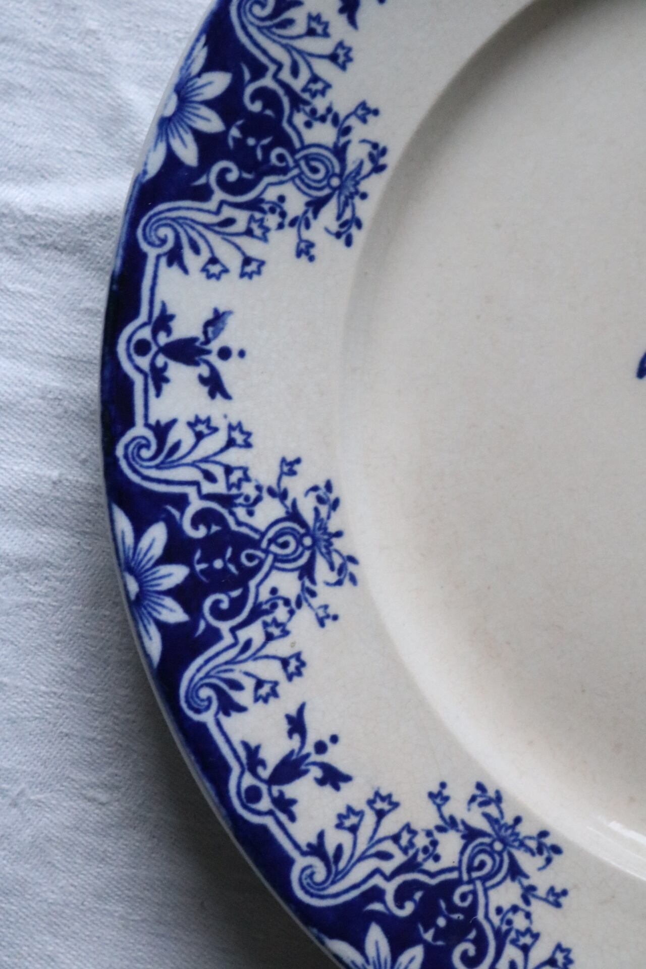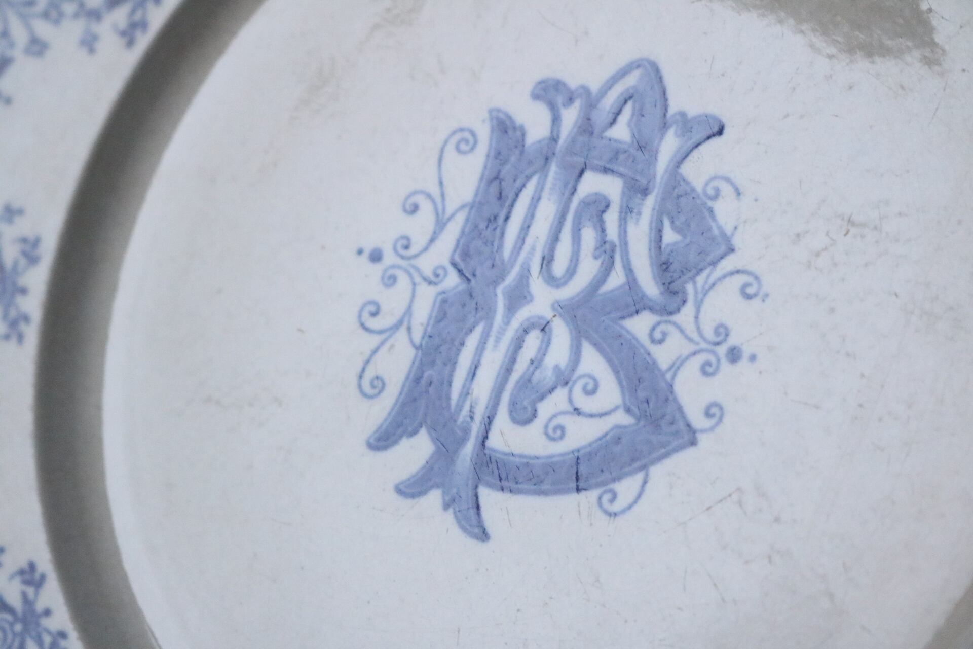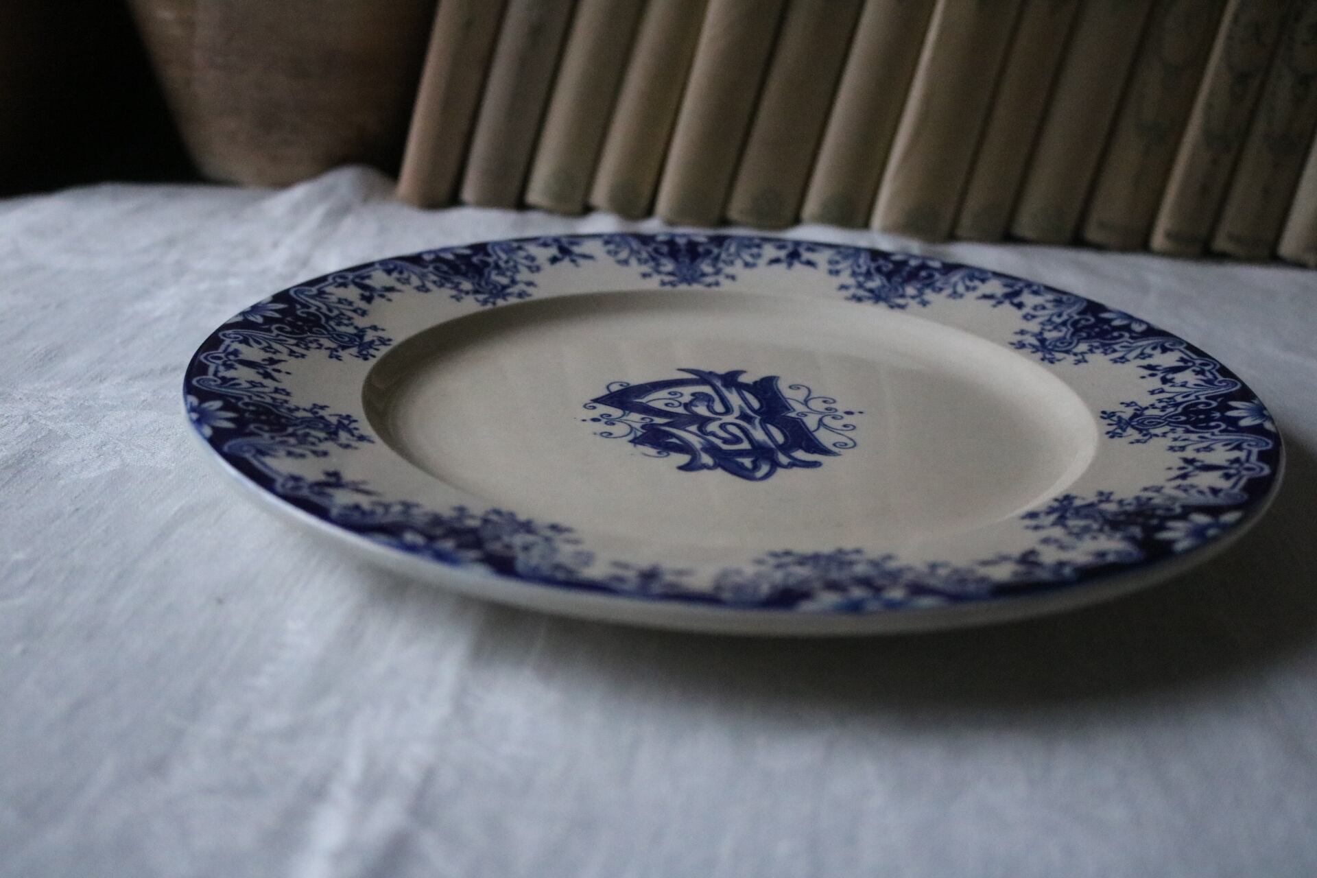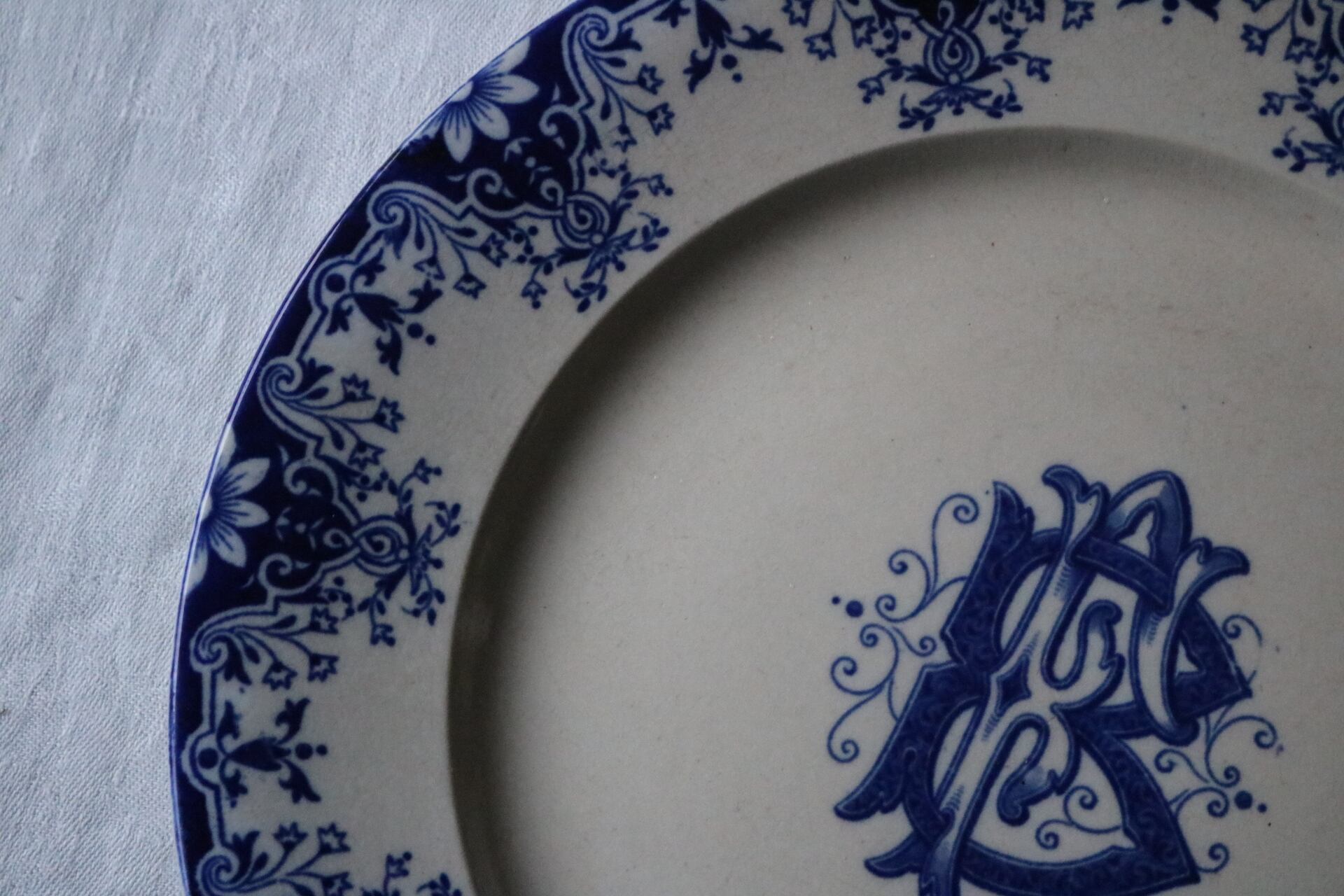 Bordeaux Rouen 藍色 ブルーカマイユ プレートD フランス モノグラム イニシャル アンティーク
