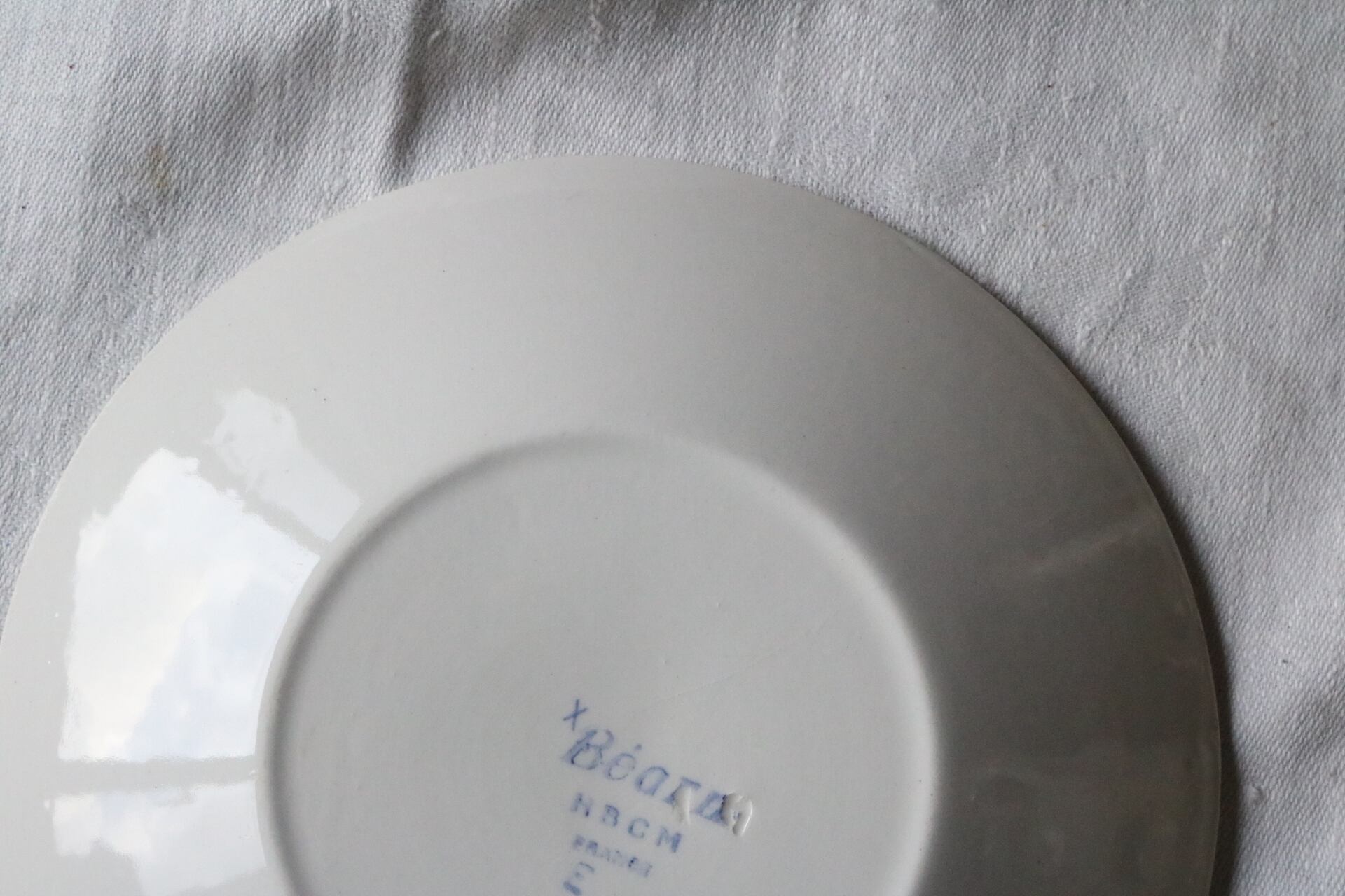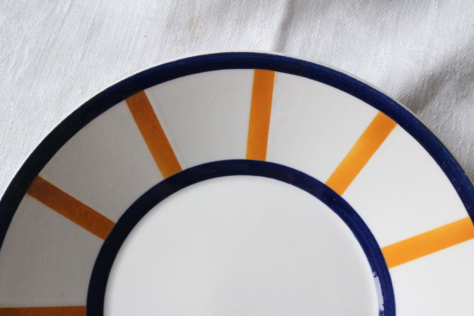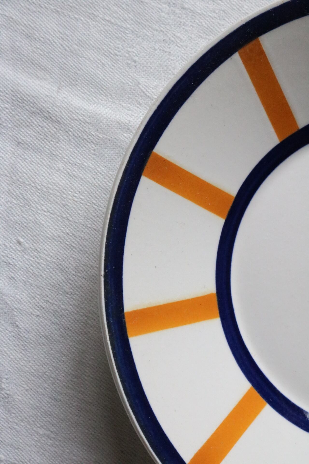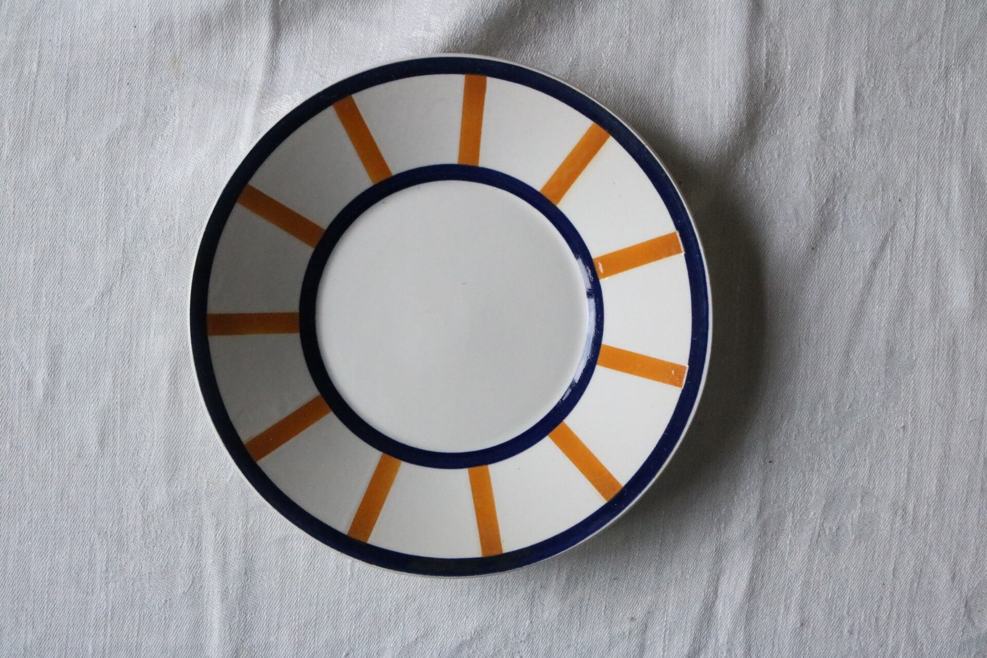 Creil montereau ソーサー 黄色 紺色 小皿 豆皿 パン皿 プレート バスク フランス アンティーク バスク柄 hbcm