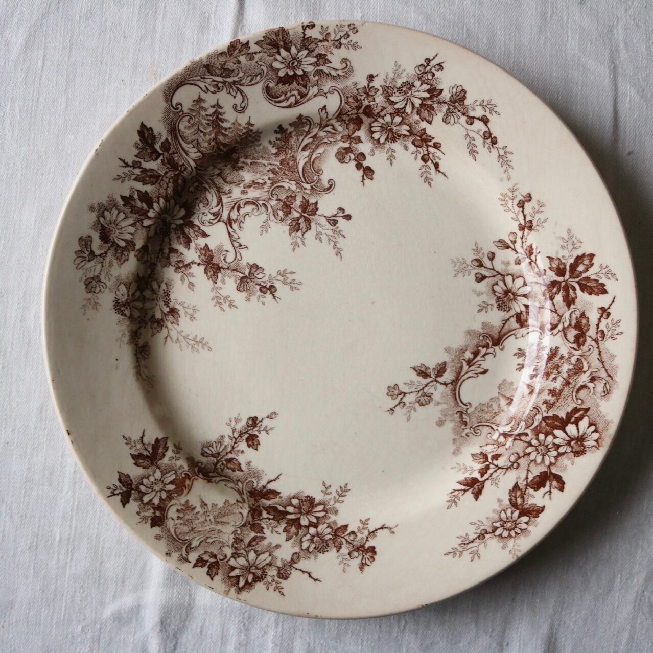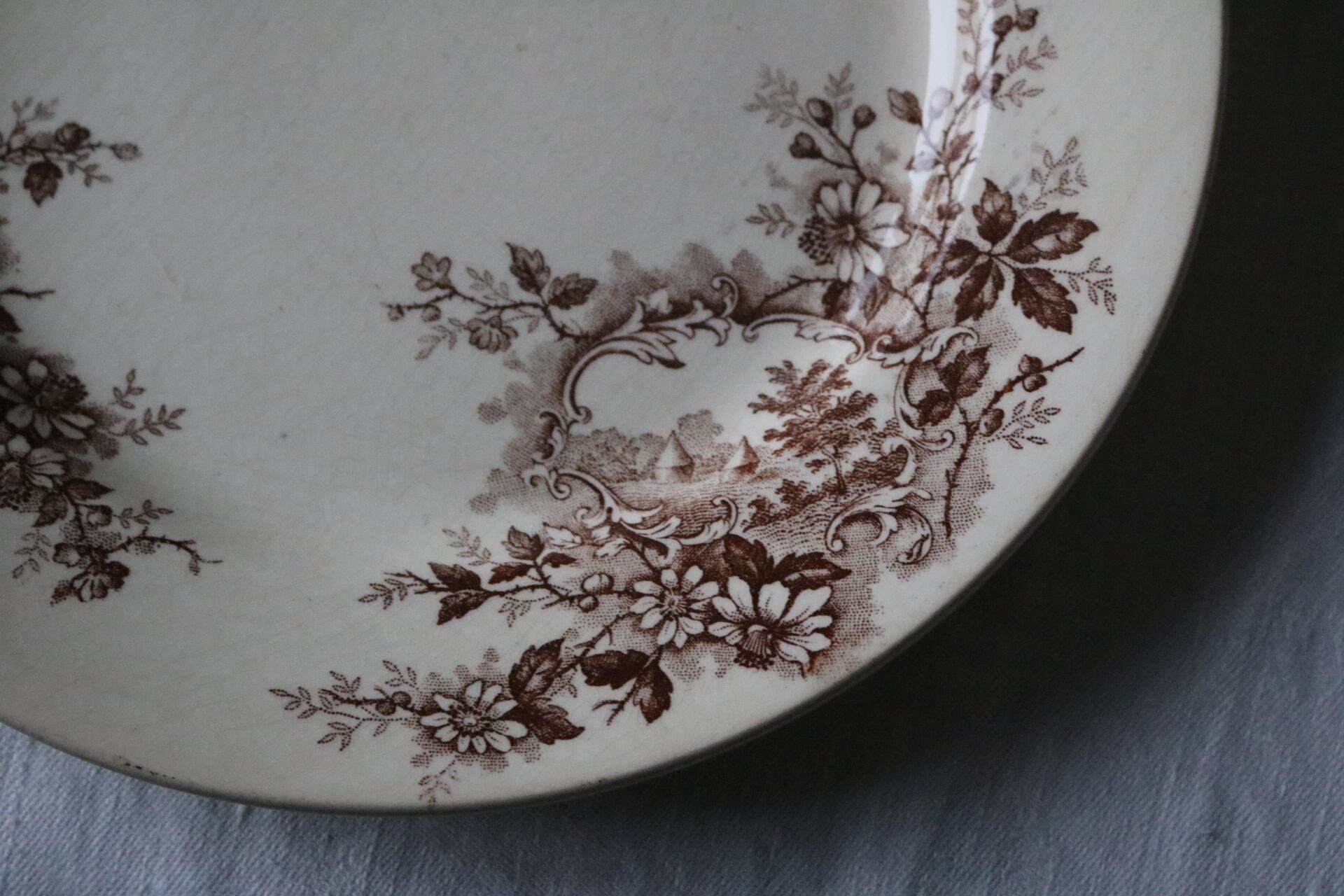 Choisy le roi 風景 ブラウン ポンパドール d セピア プレート フランス アンティーク