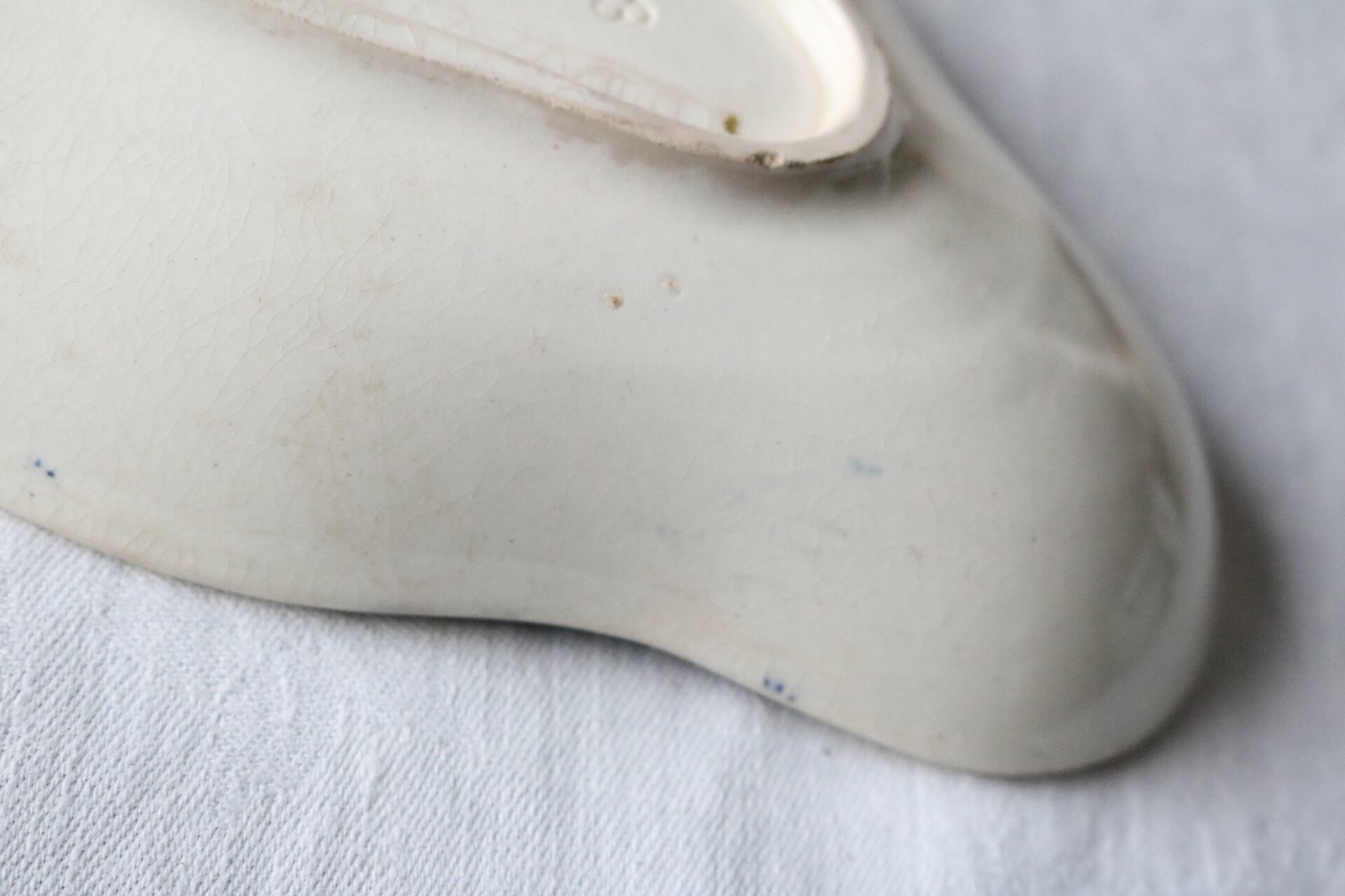 貫入、カトラリー跡、小傷、絵柄の飛びや滲み