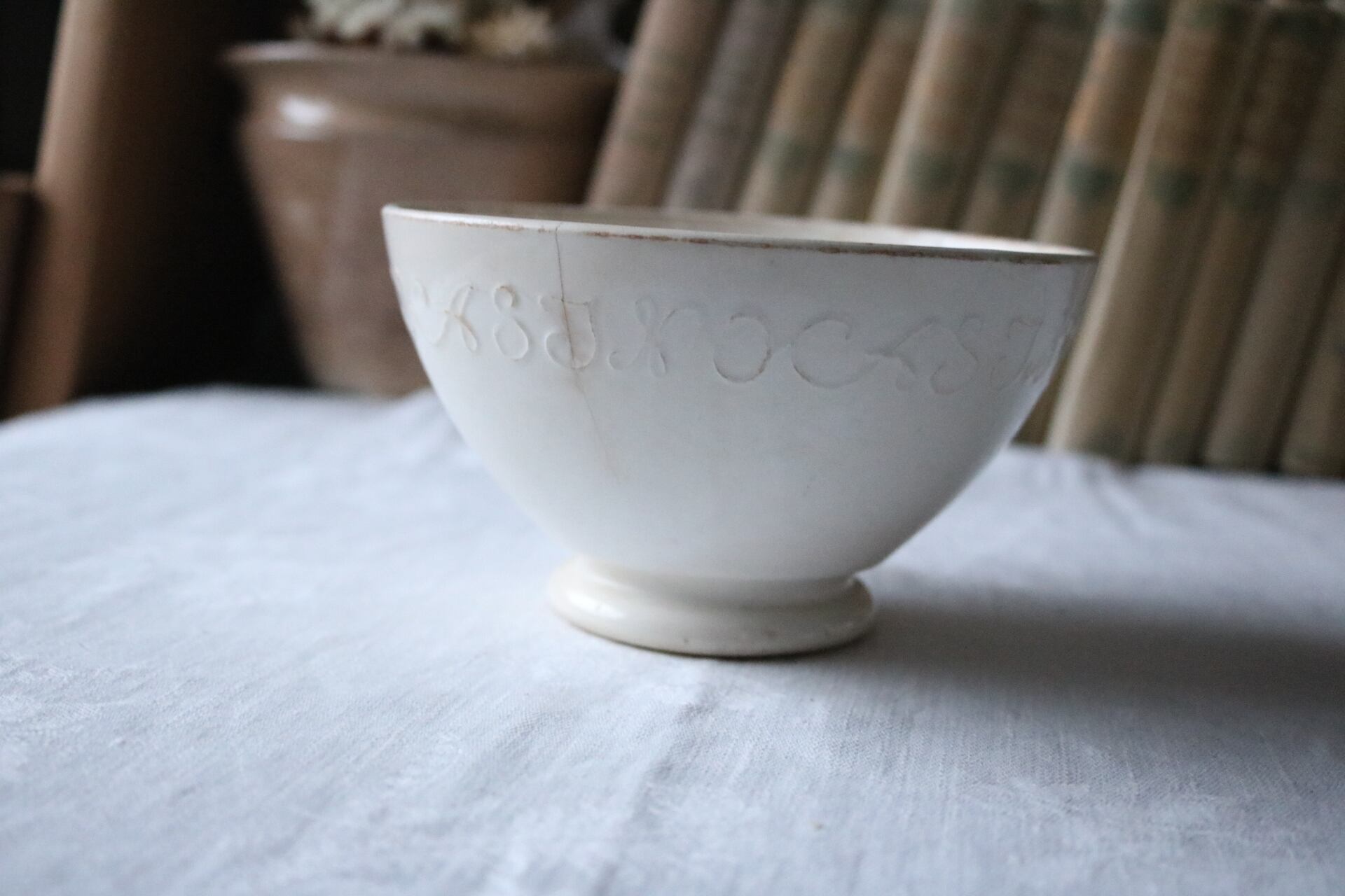 Sarreguemines レリーフ アルファベット カフェオレボウル フランス アンティーク