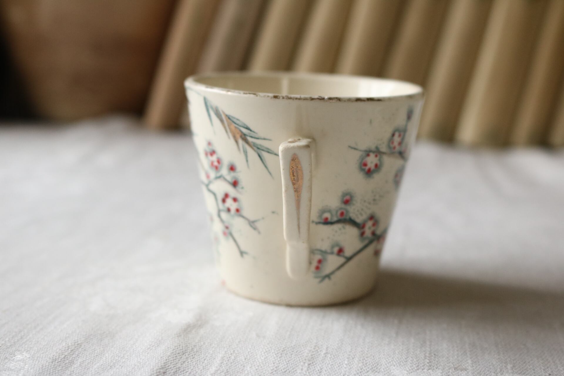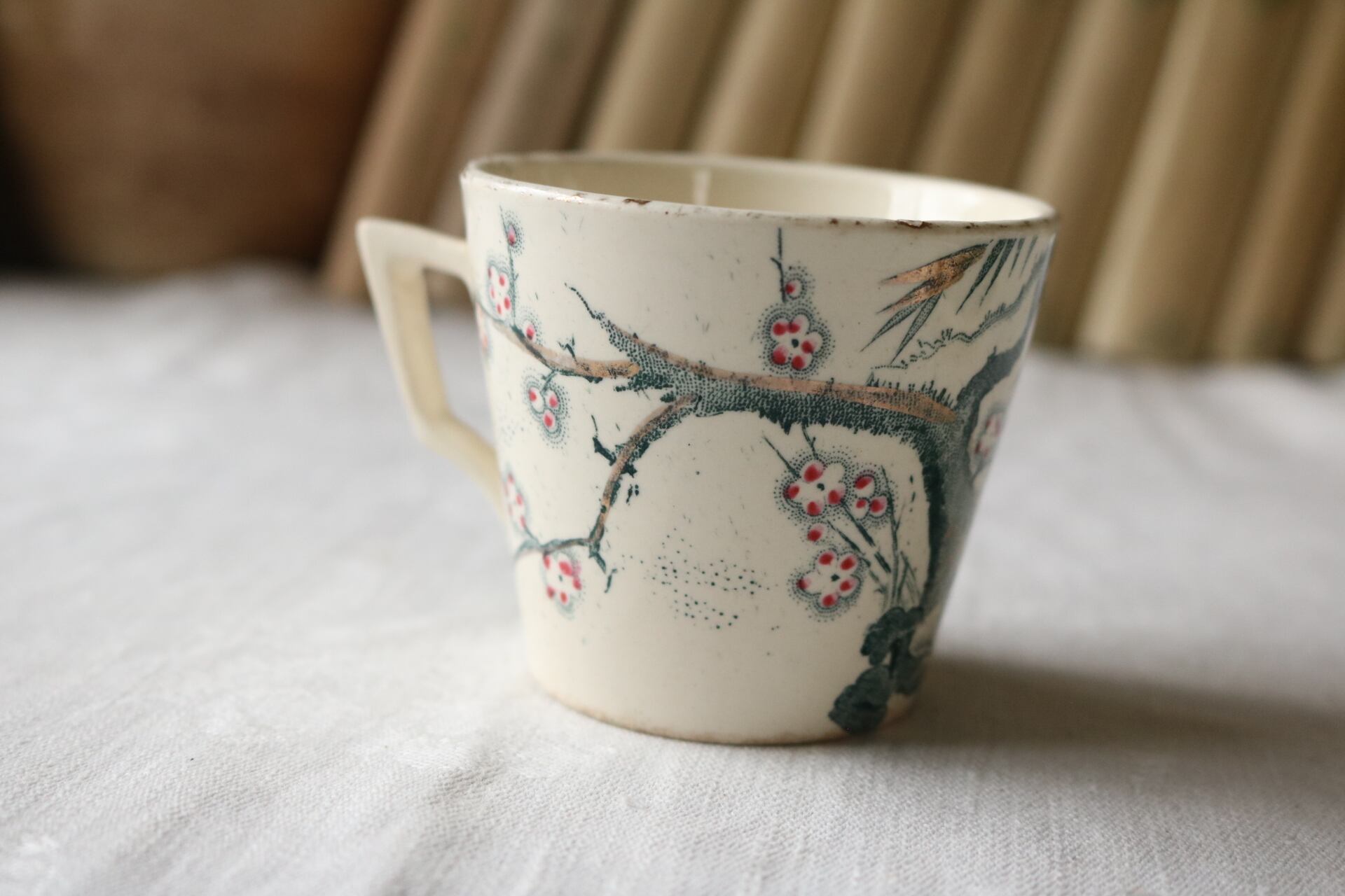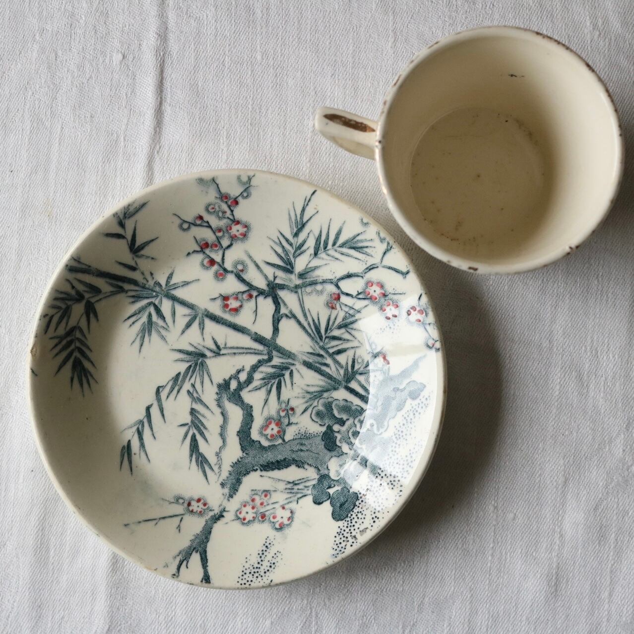 Creil montereau ジャポニズム 竹 手彩色 バンブー 梅 梅の花 金彩 グリーン 小花柄 カップ & ソーサー c&s