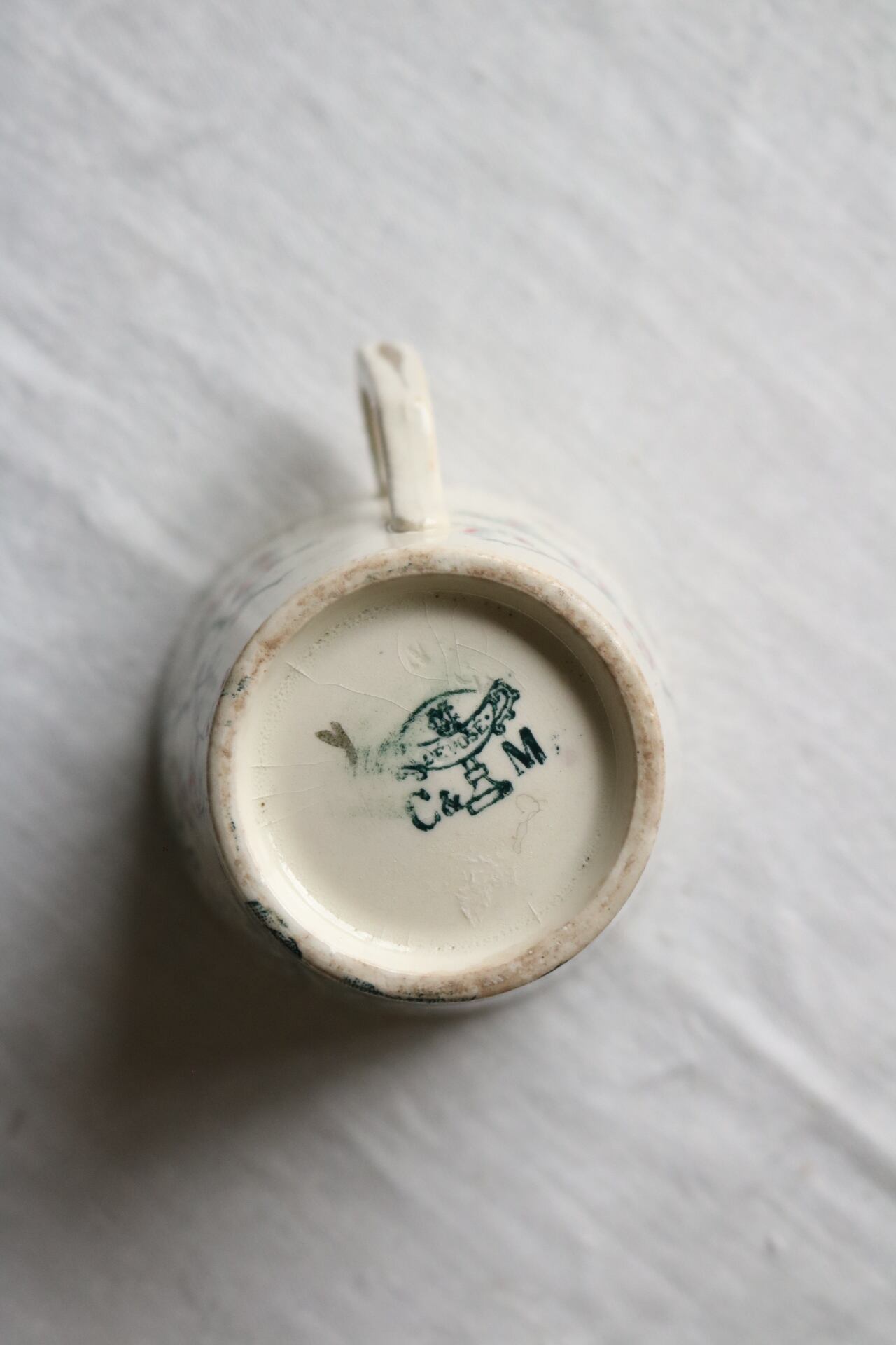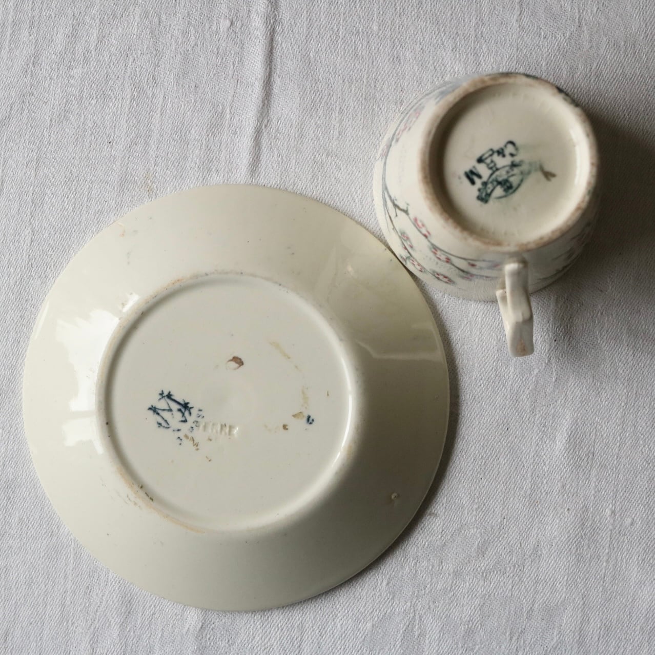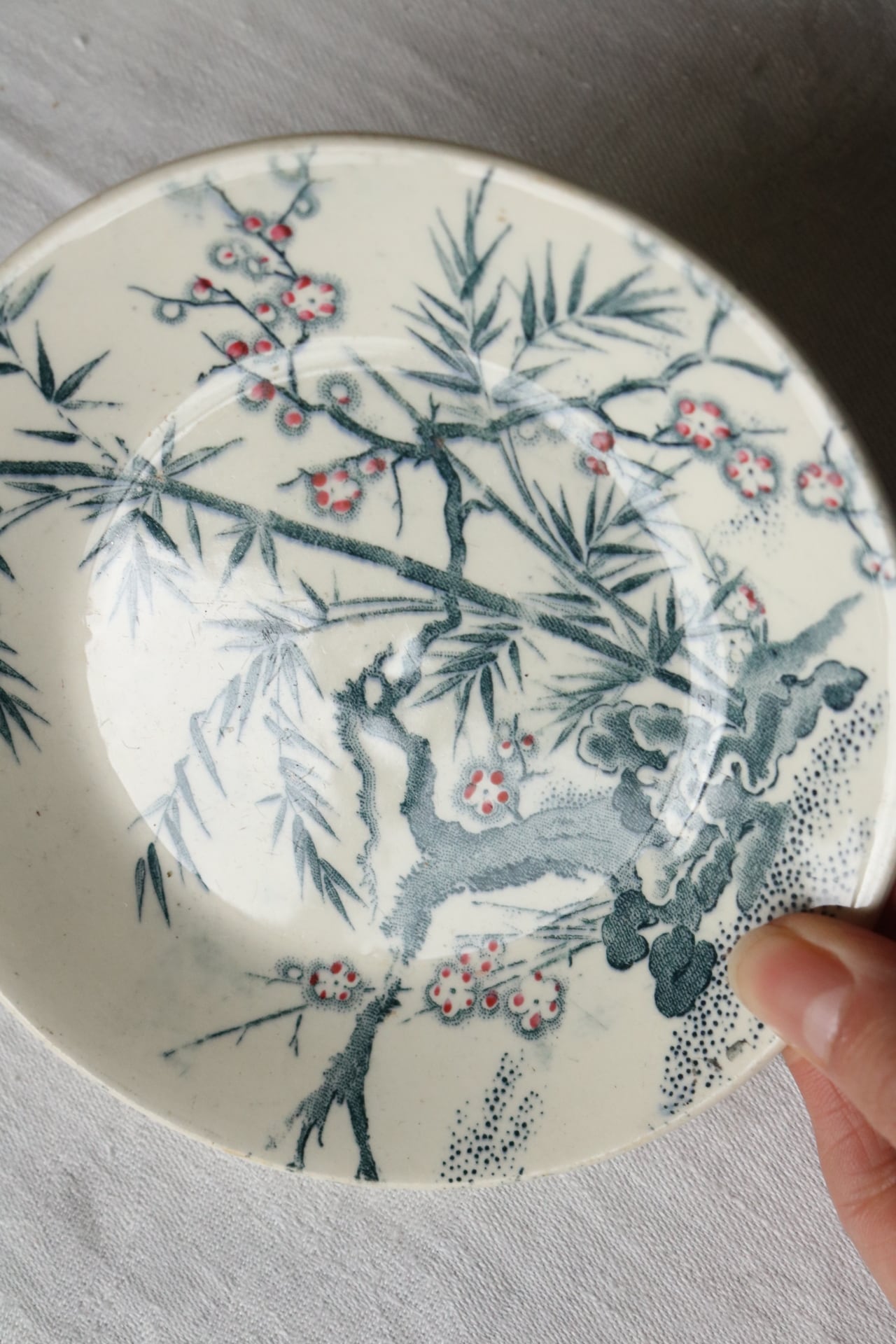 Creil montereau ジャポニズム 竹 手彩色 バンブー 梅 梅の花 金彩 グリーン 小花柄 カップ & ソーサー c&s