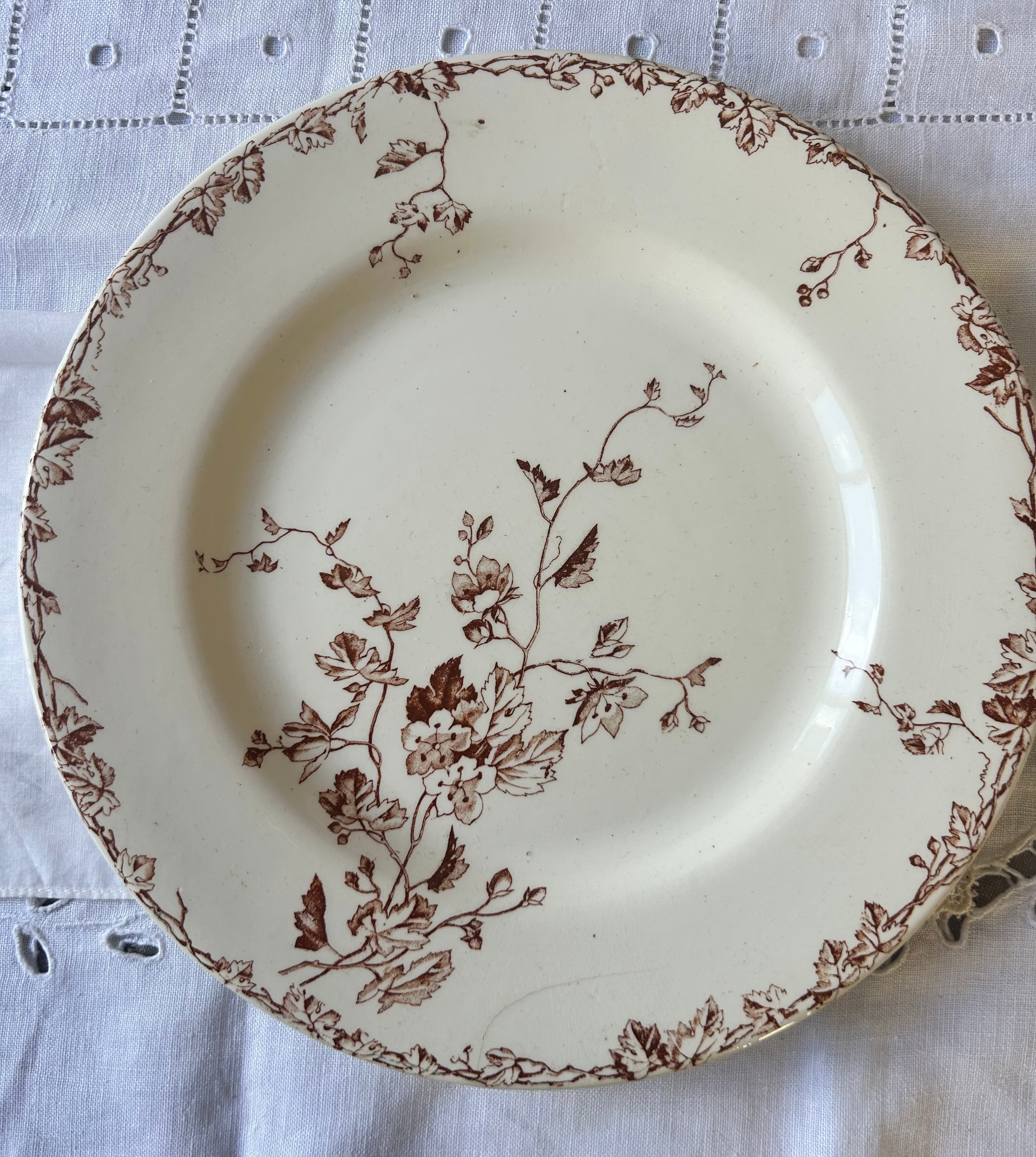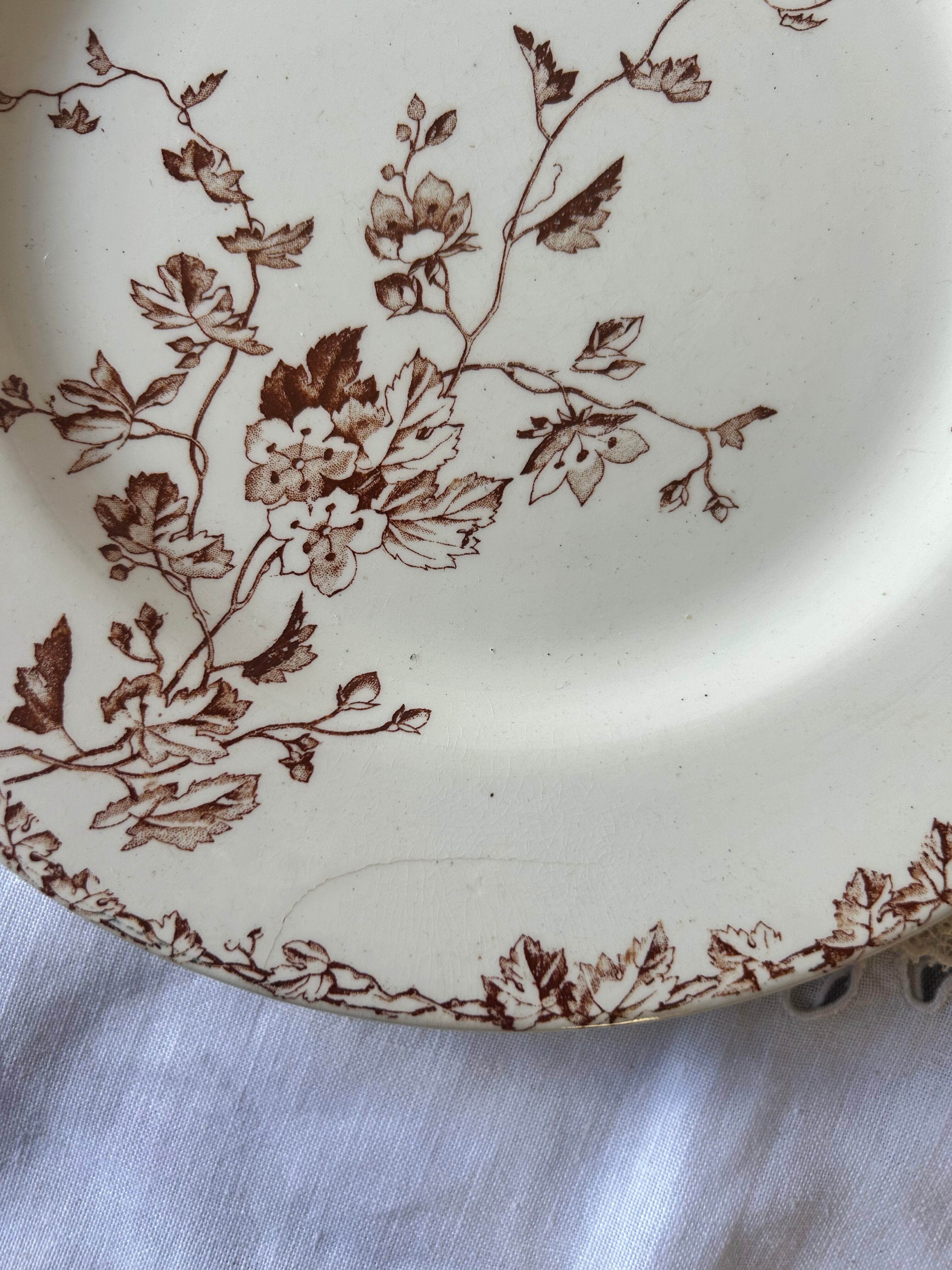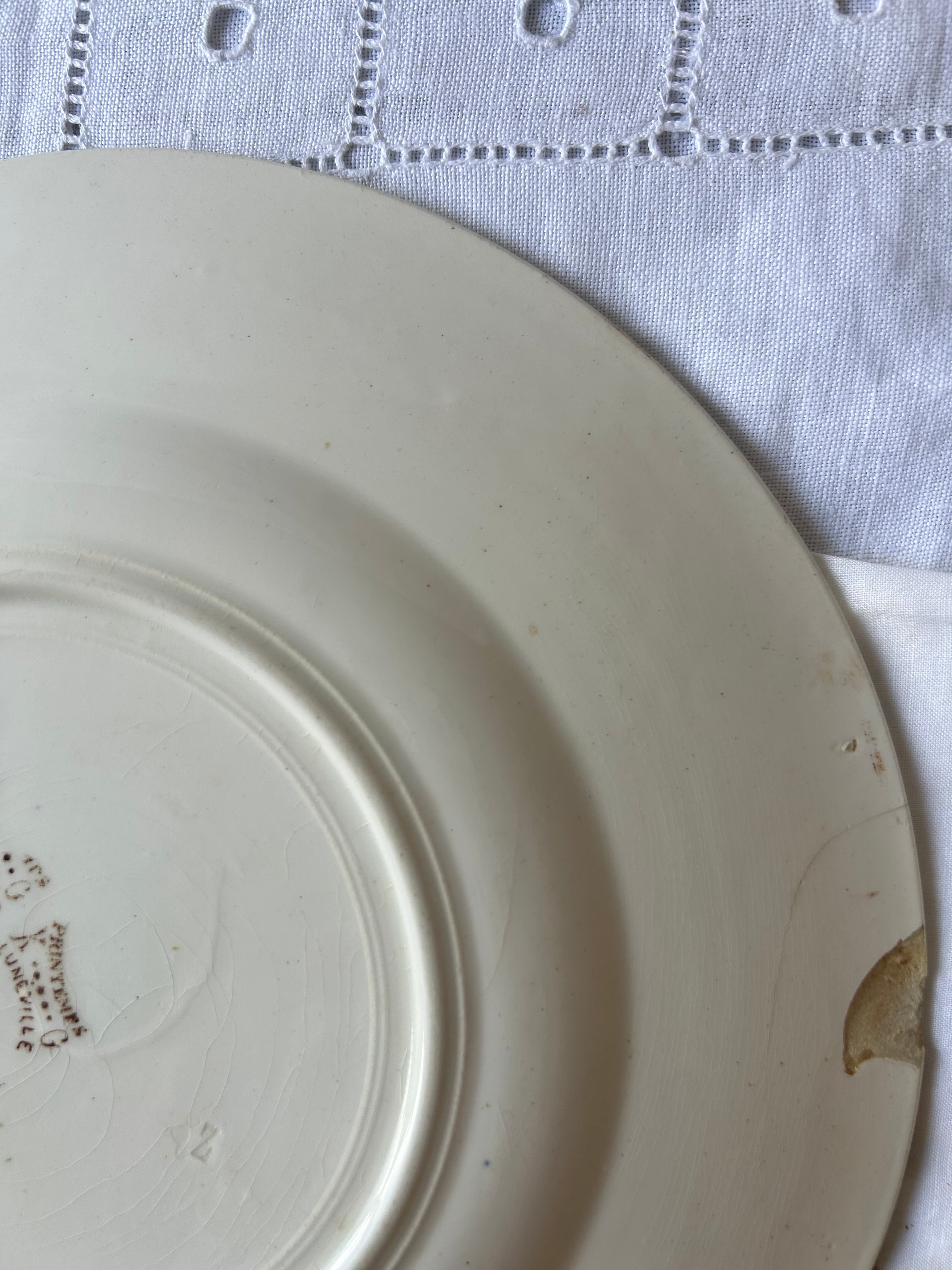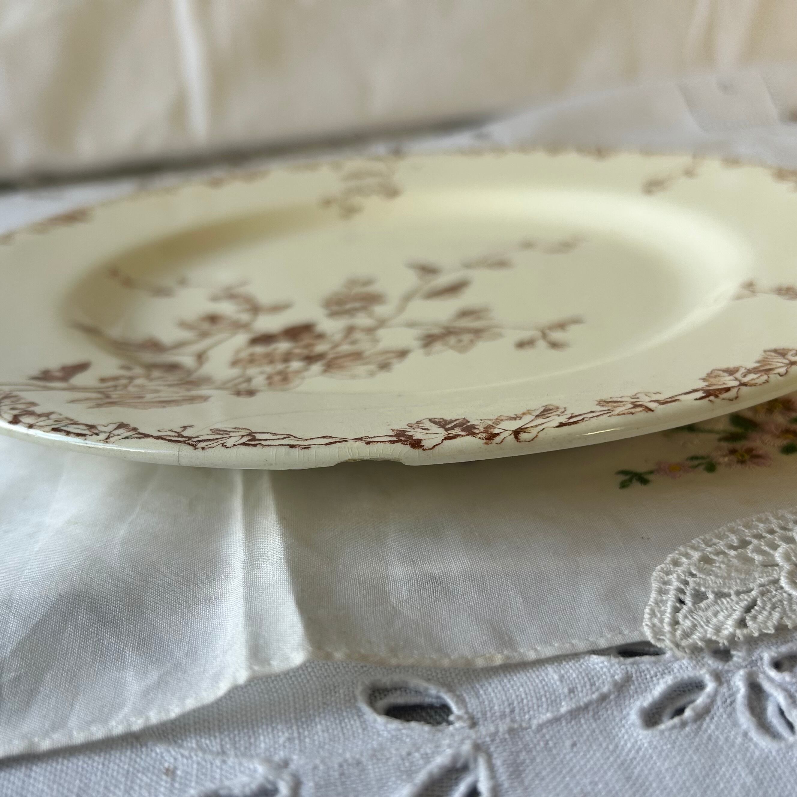 【難あり】Luneville フランス アンティーク 金継ぎ プレート セピア