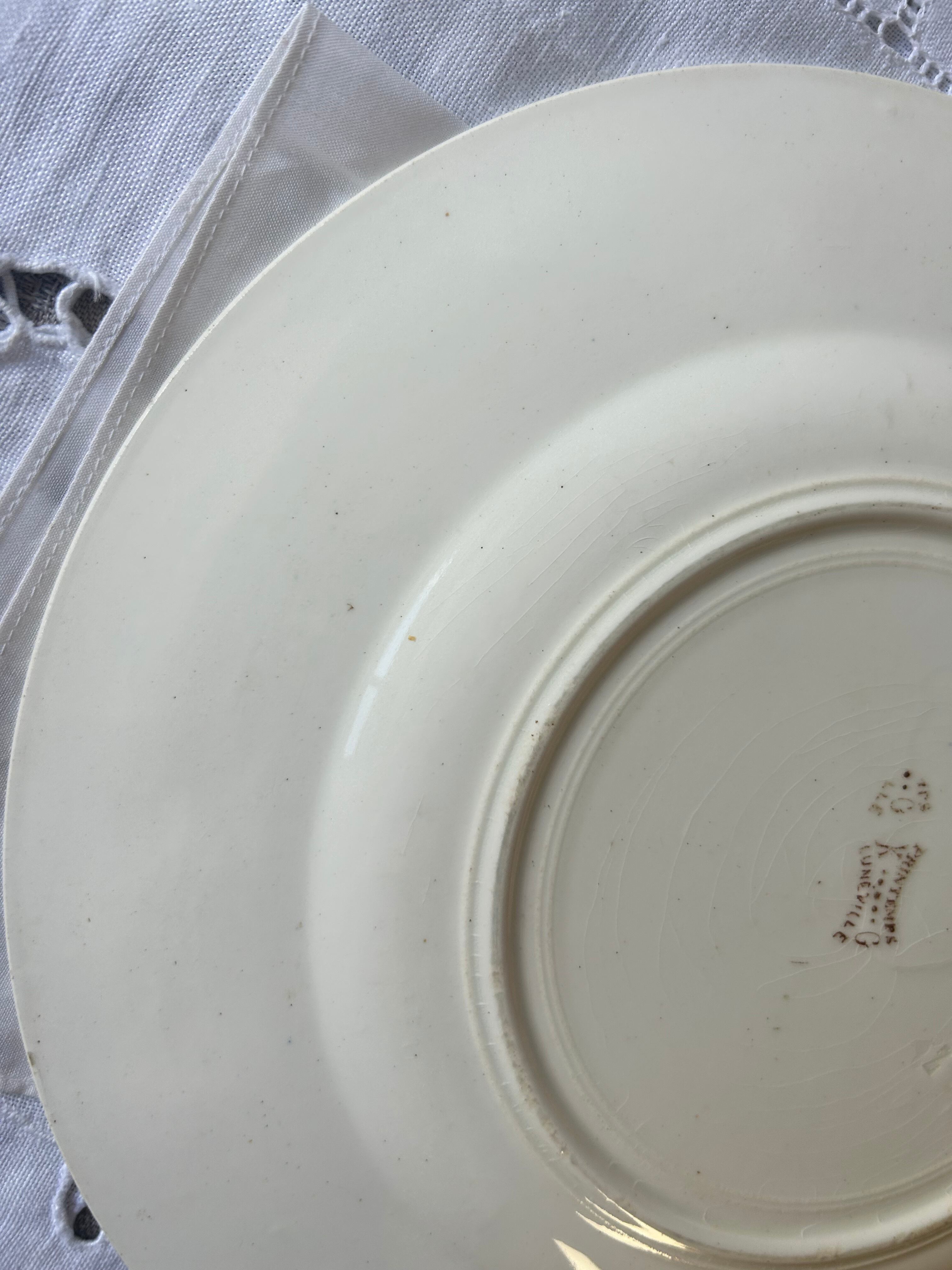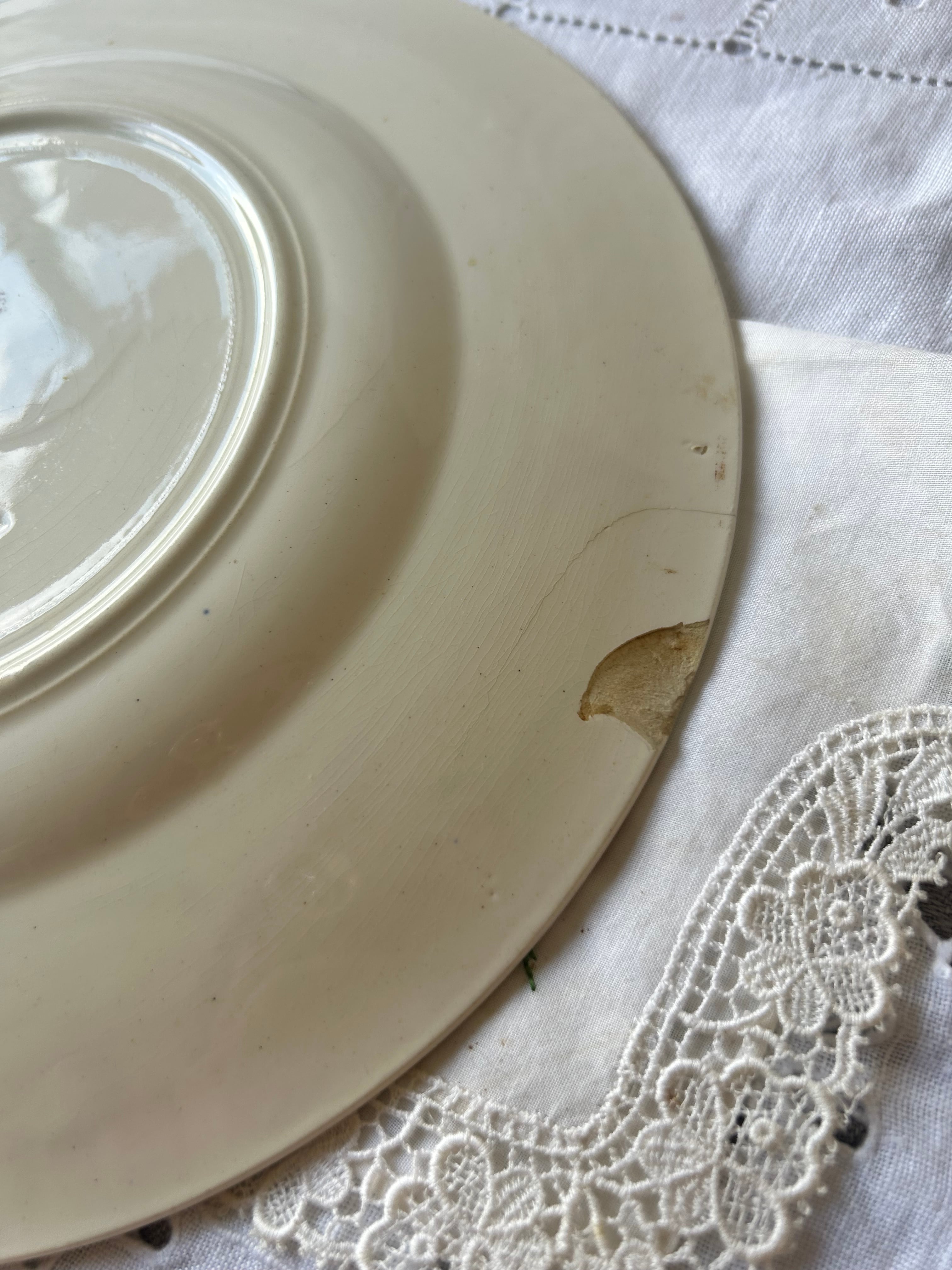 古いものなので、書ききれない経年による染み、カトラリー跡、小傷、絵柄の飛び、滲み、焼成時からの傷、凹凸、釉薬のはげ等ある場合がございます。