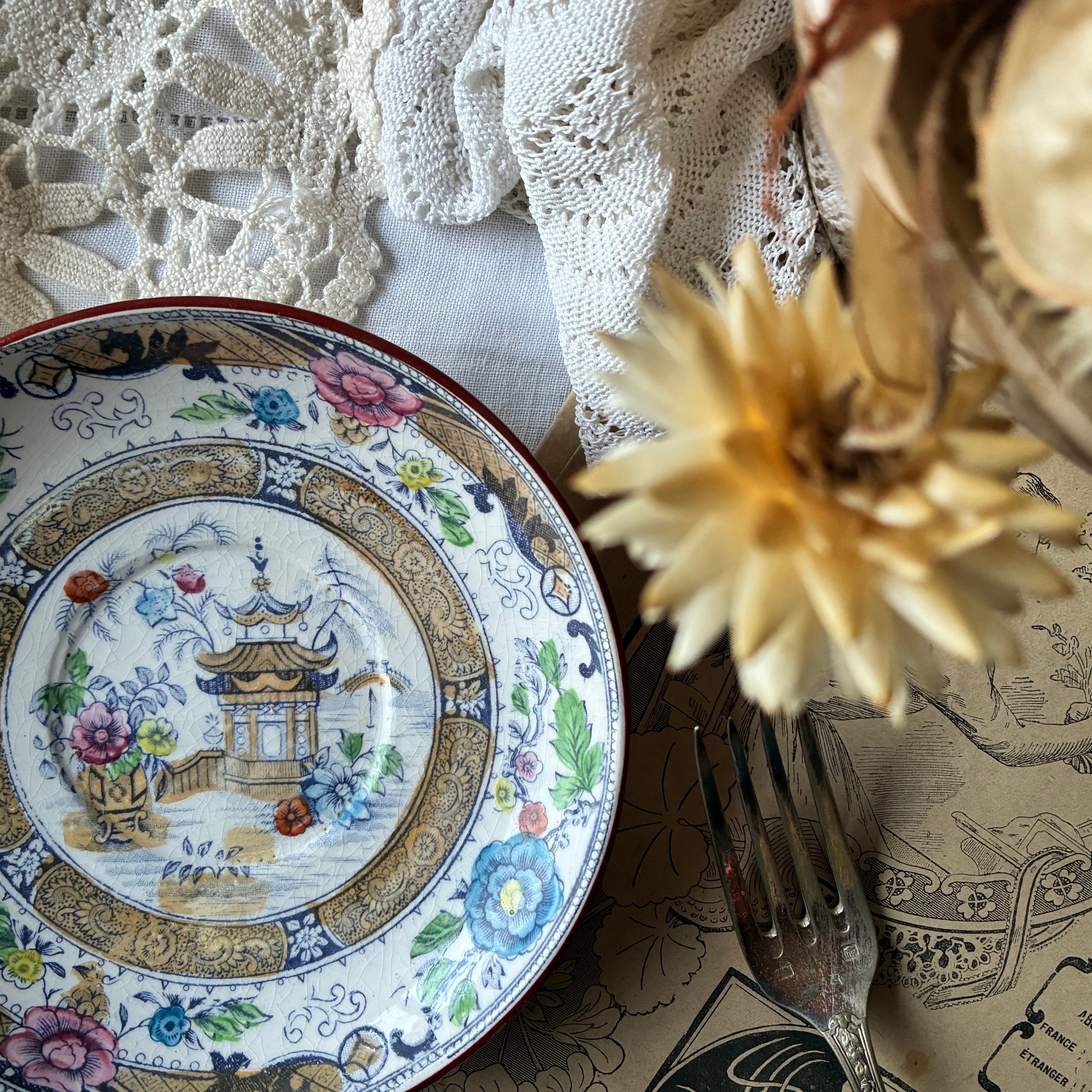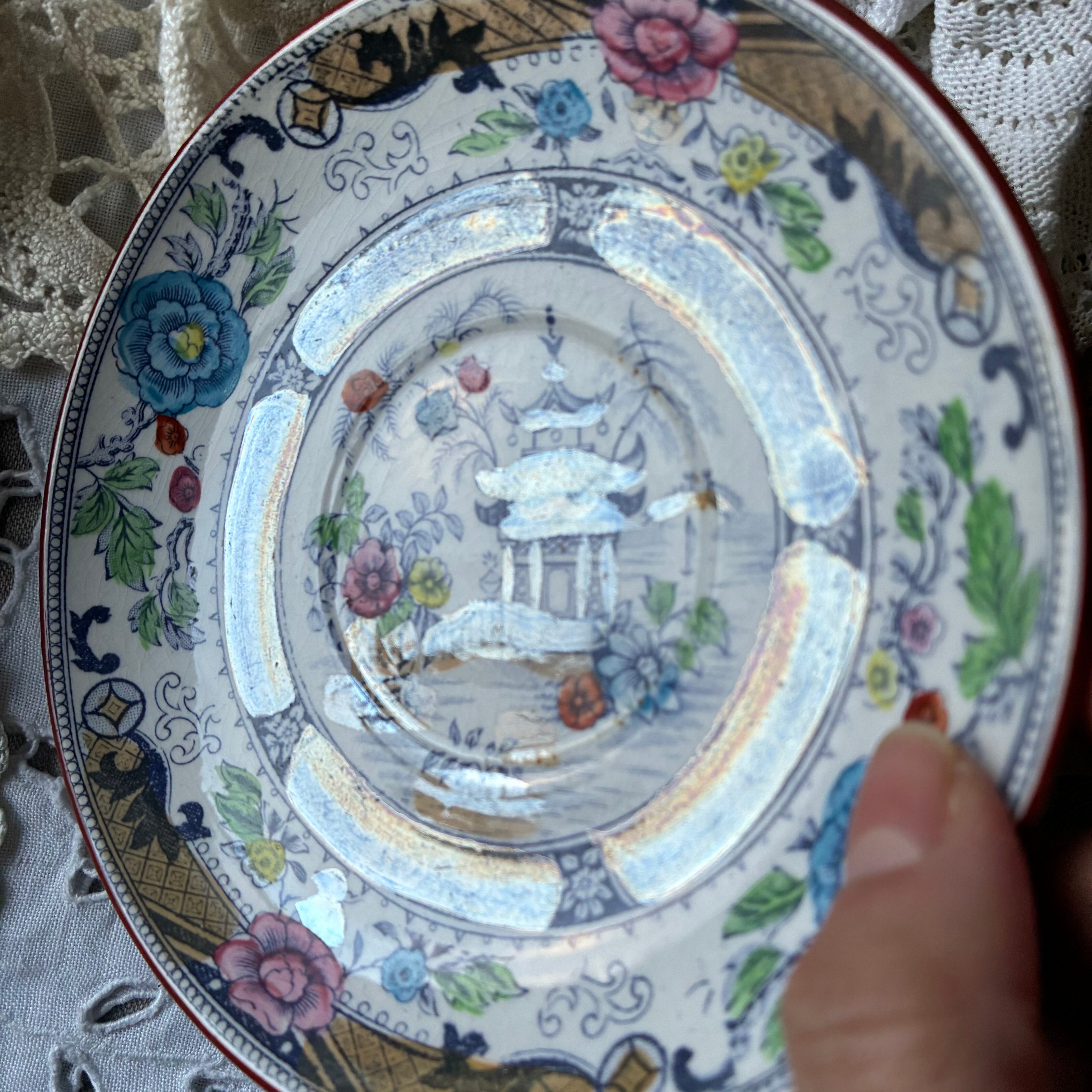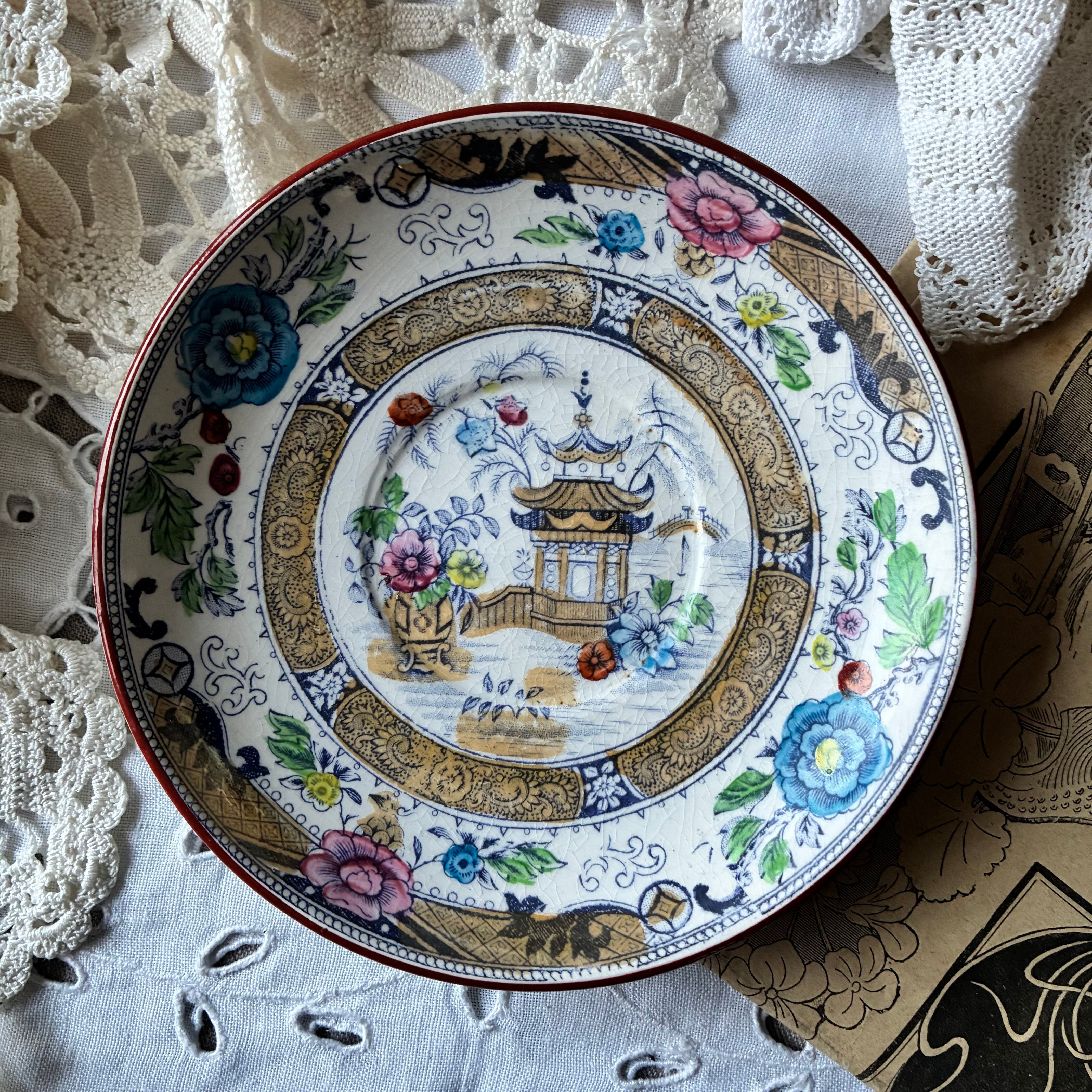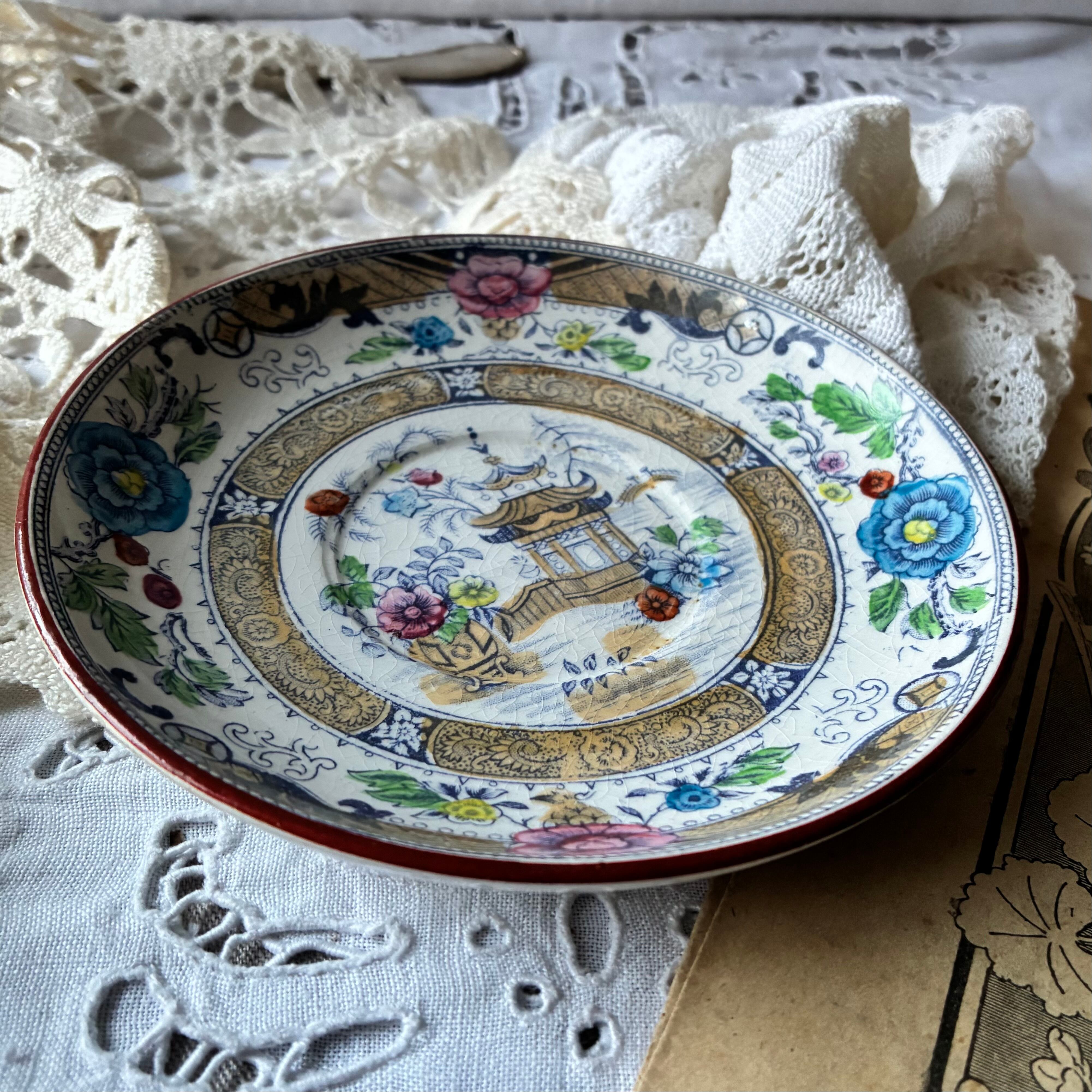 ソーサー Creil montereau 多色刷り ジャポニズム シノワズリ フランス アンティーク
