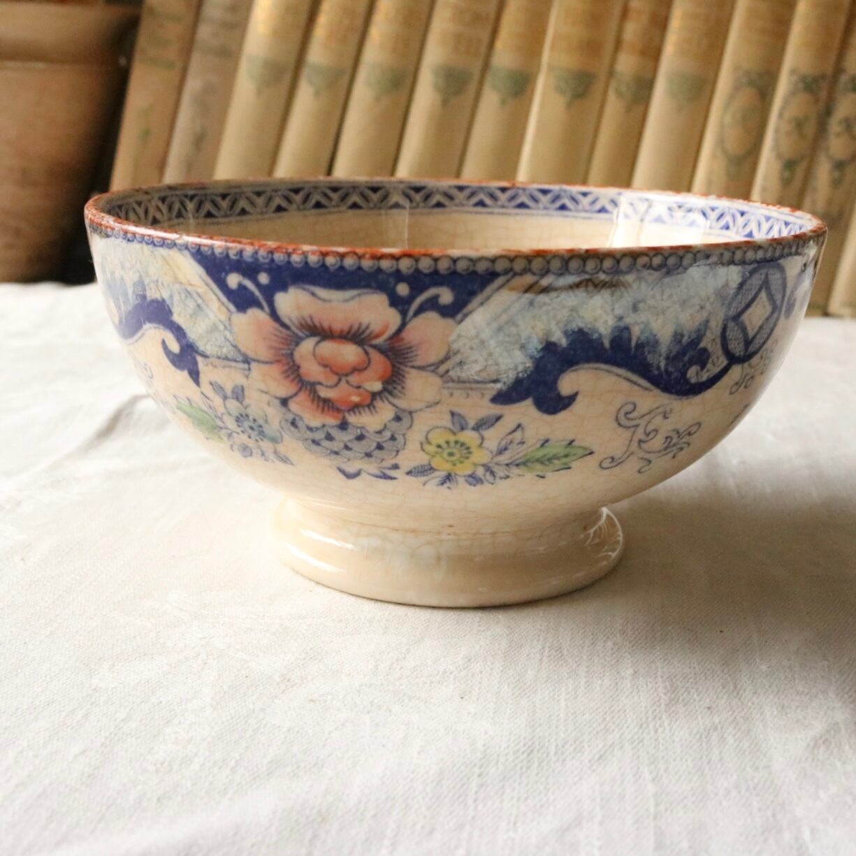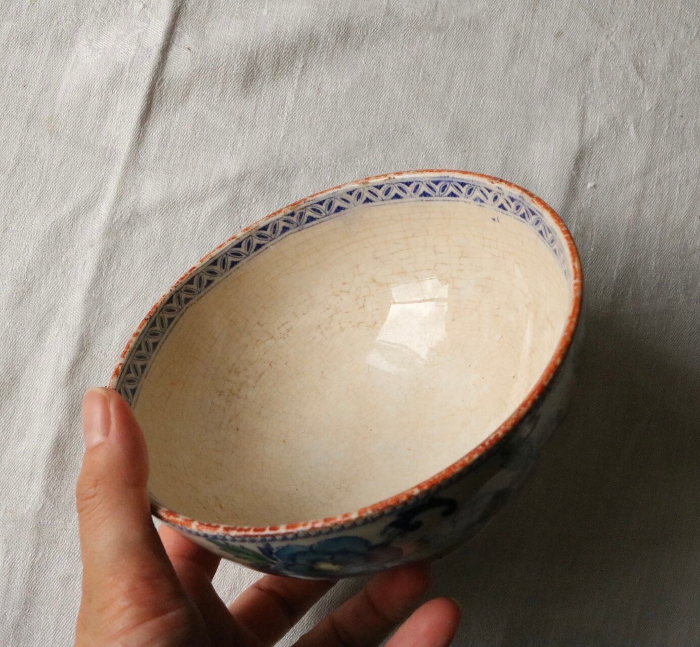 Creil montereau a 多彩色 枯れた ボウル カフェオレボウル ジャポニズム シノワズリ フランス アンティーク