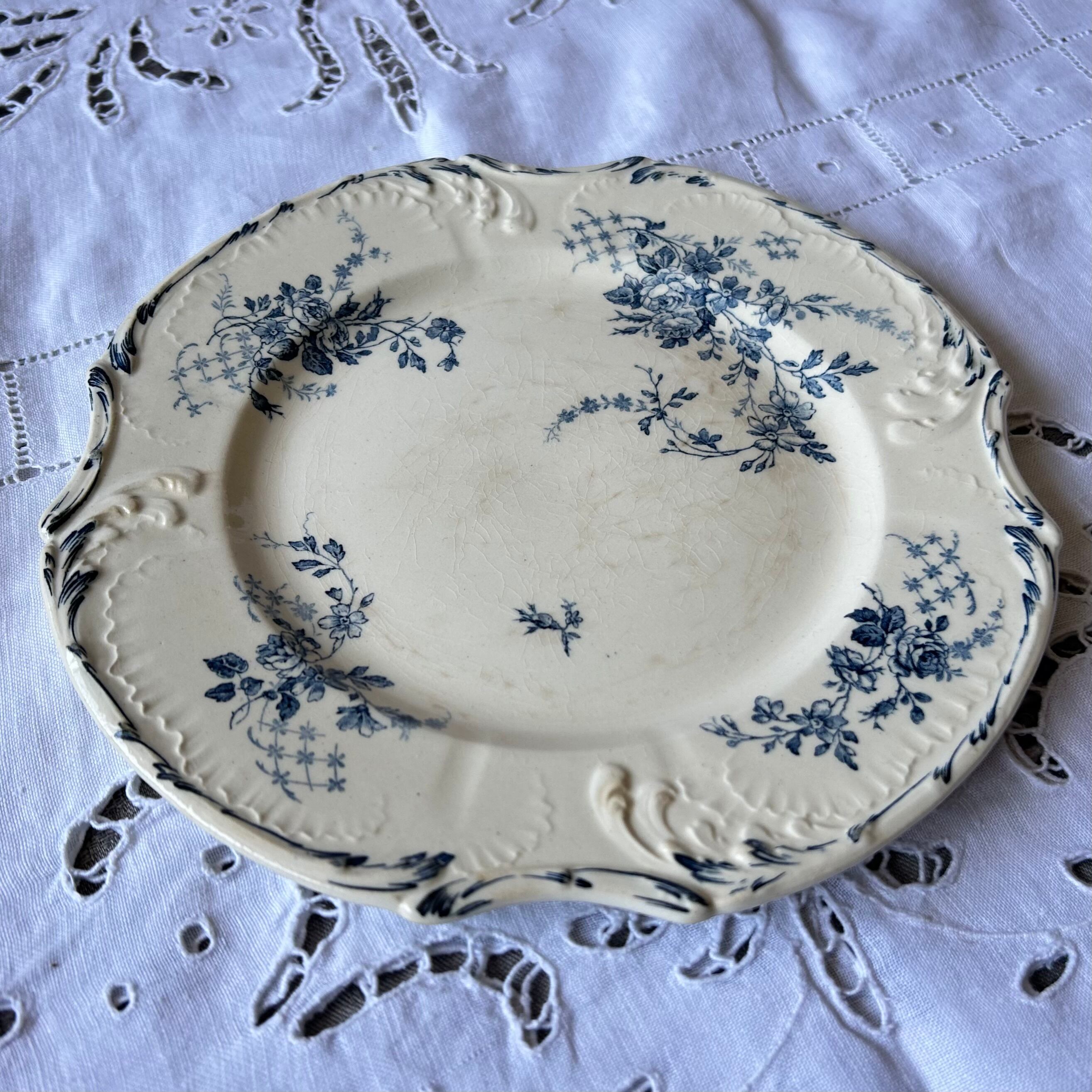 Gien ブルー 四角いプレート レリーフ フランス アンティークb