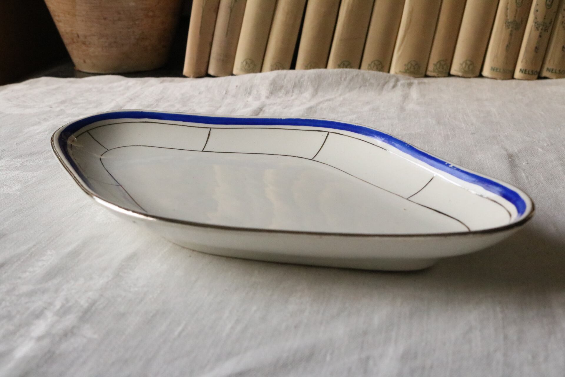 Saint Amand シンプル ブルー シルバー ライン フランス ラヴィエ アンティーク