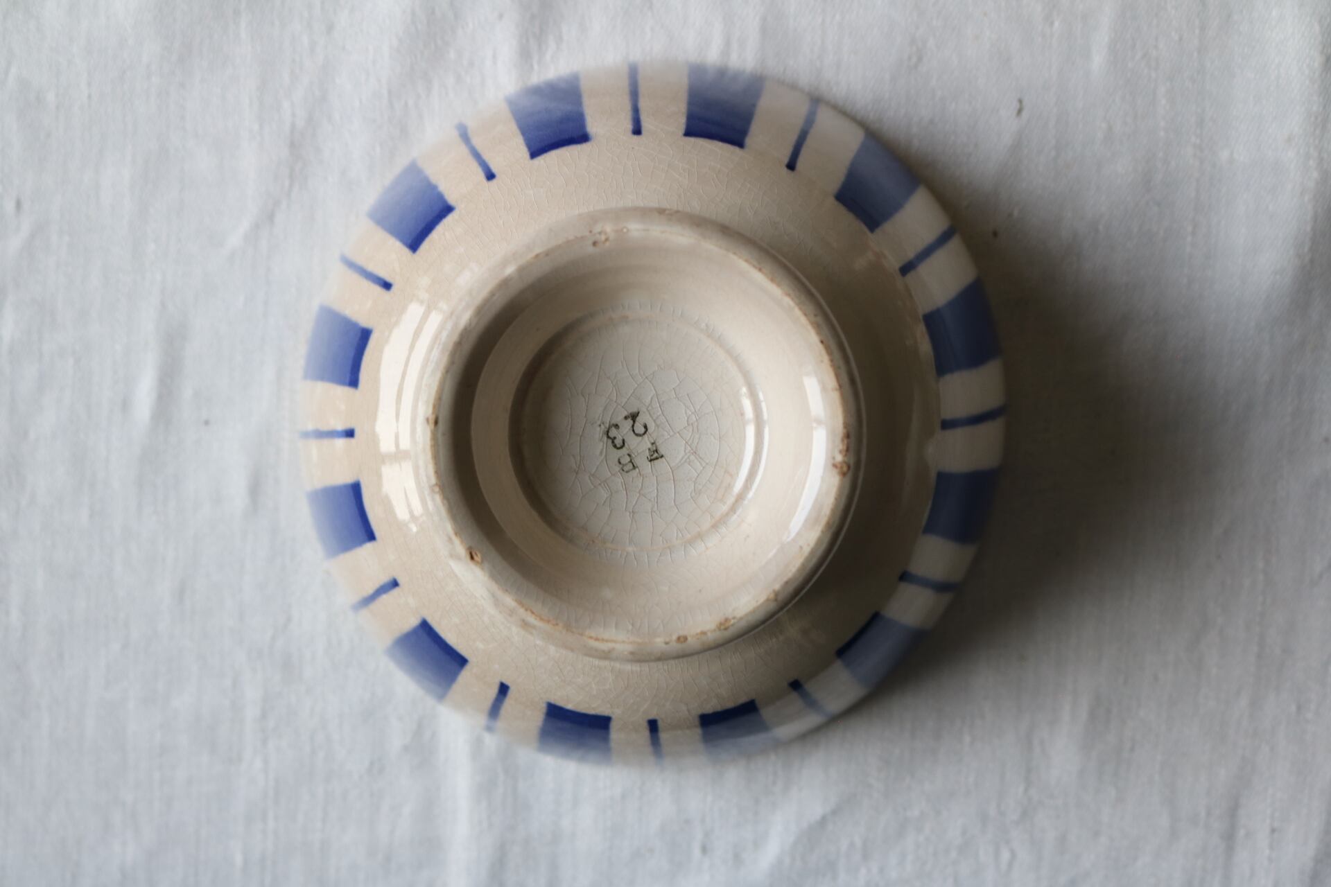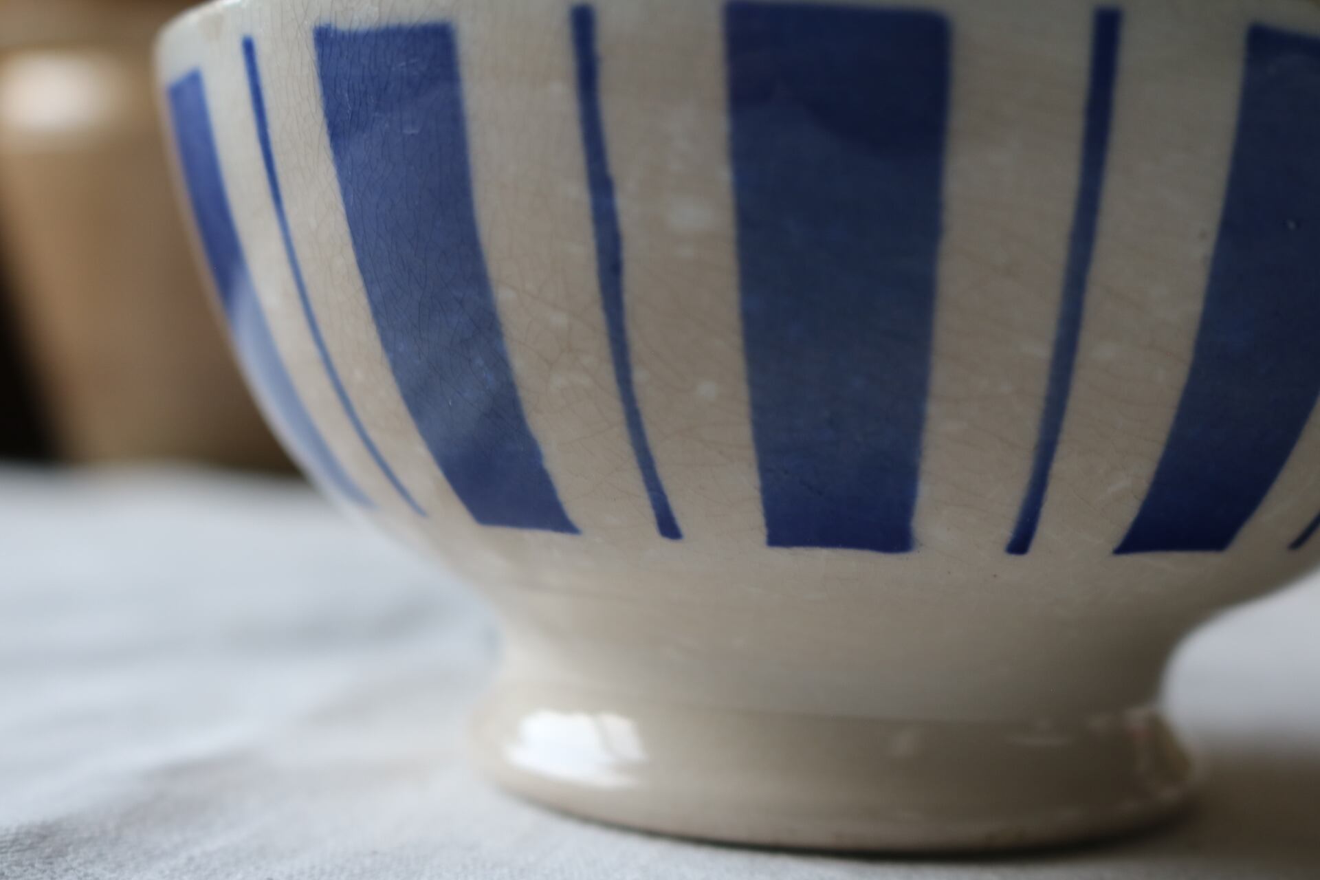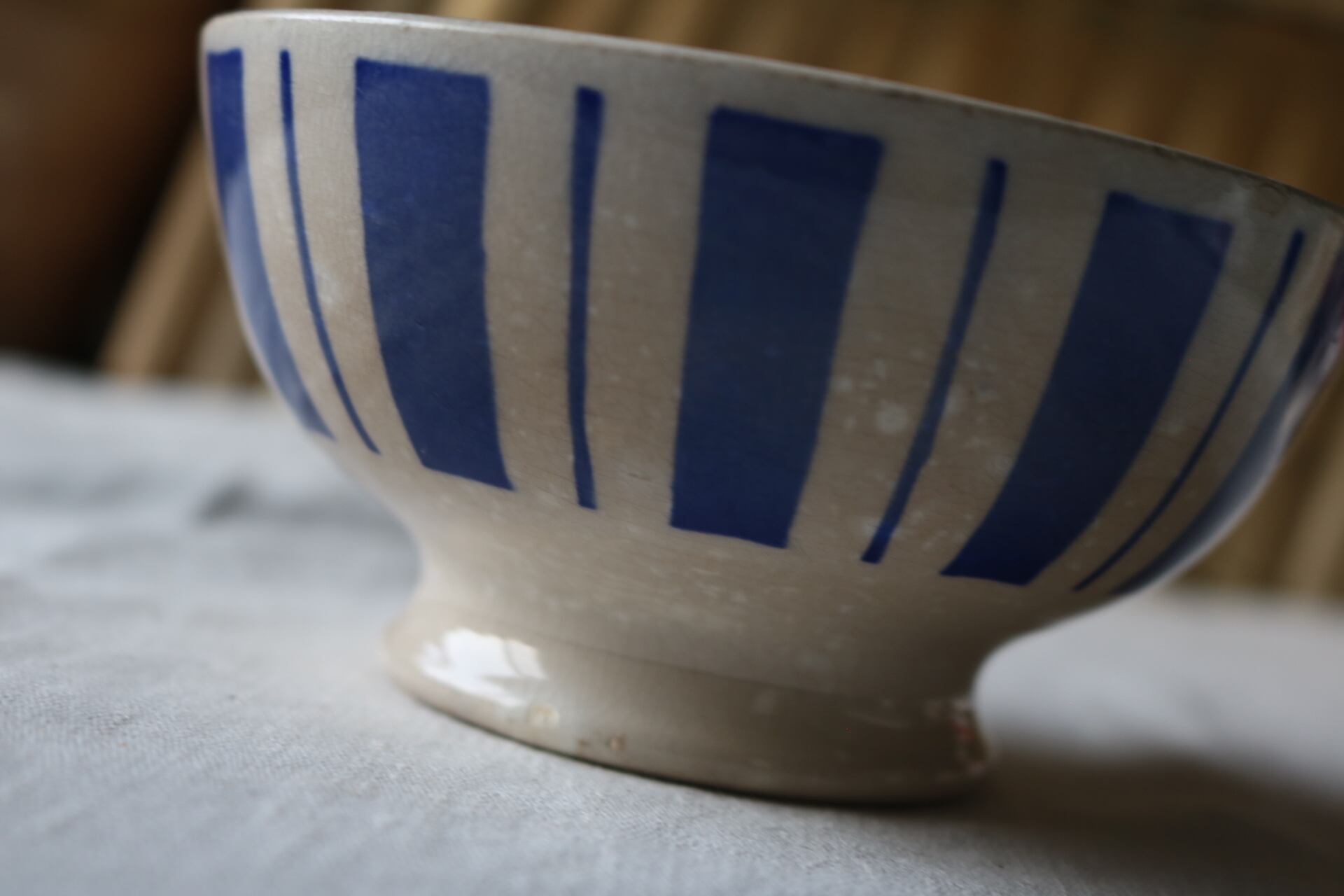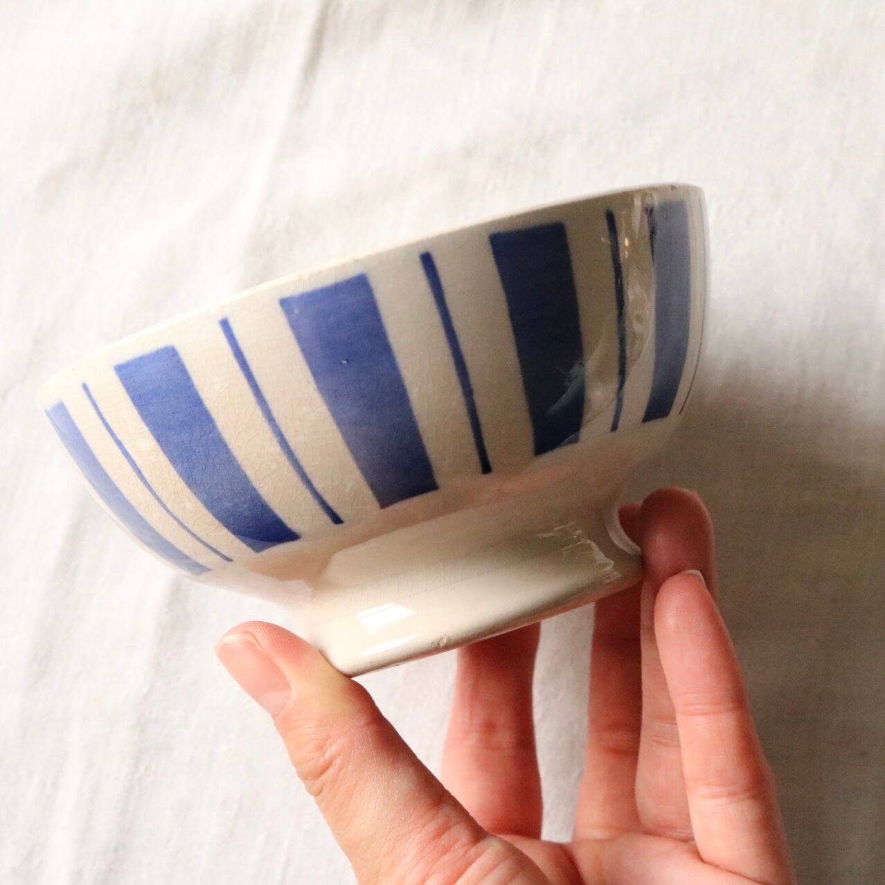 Badonviller ブルーライン ストライプ ステンシル カフェオレボウル フランス アンティーク