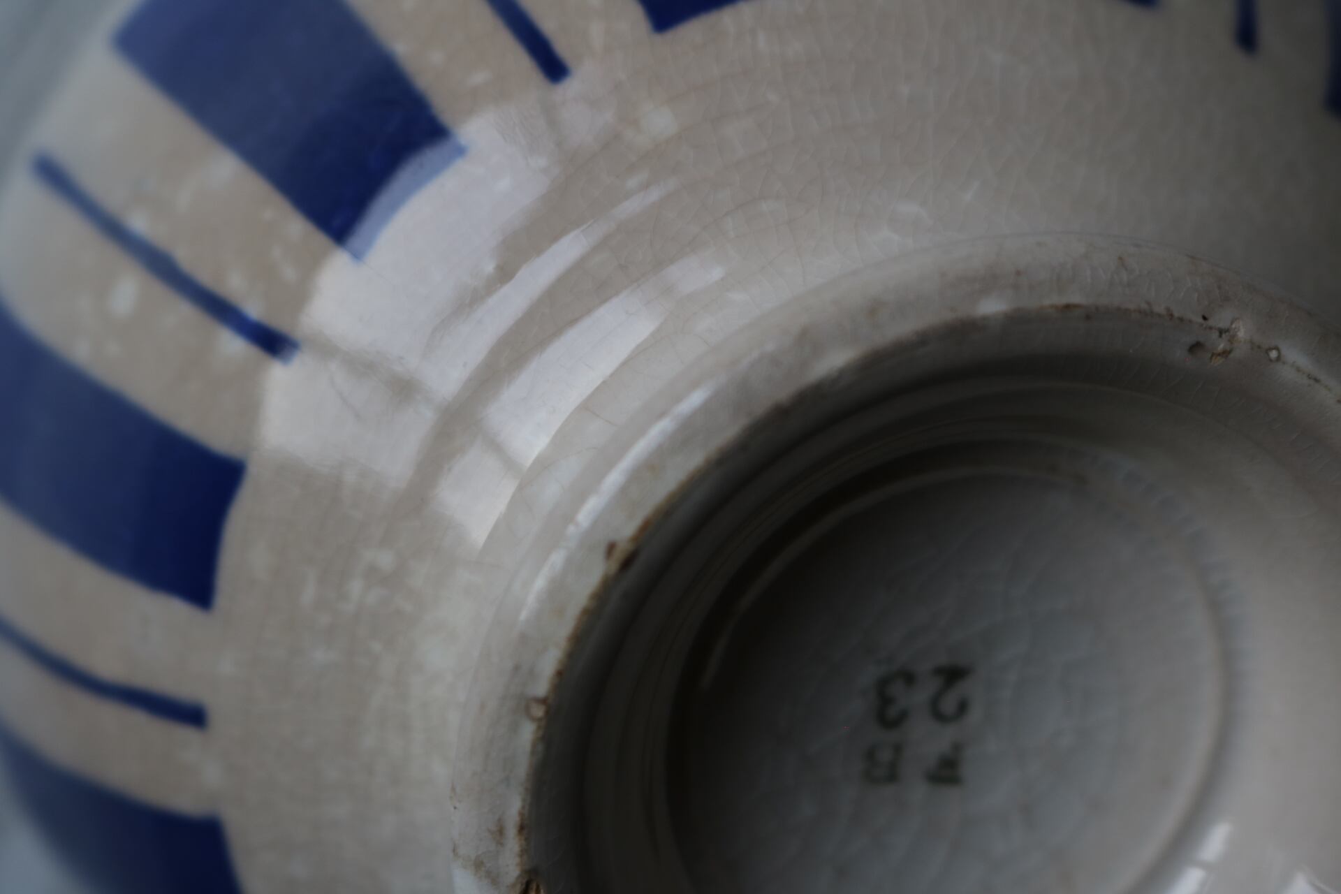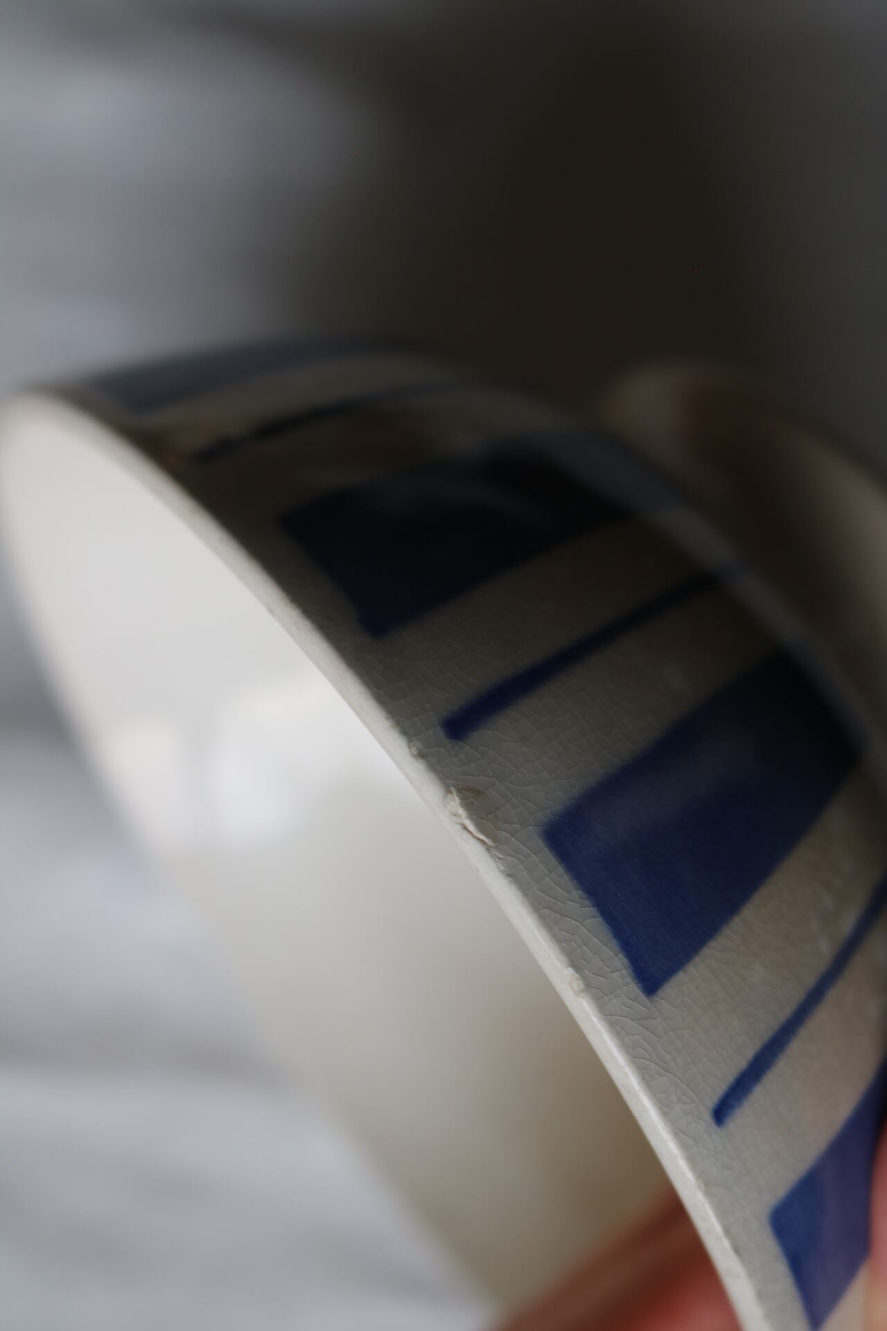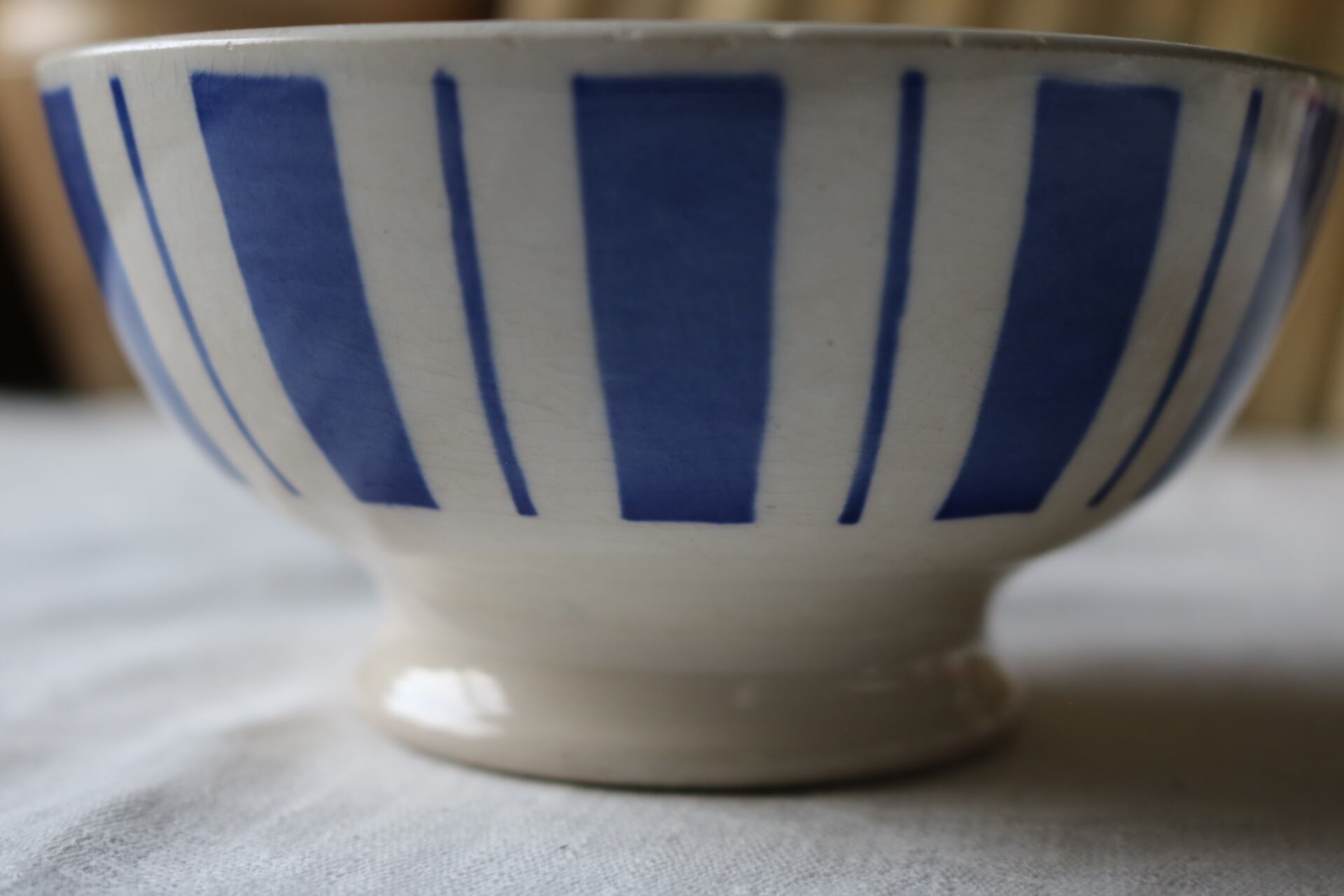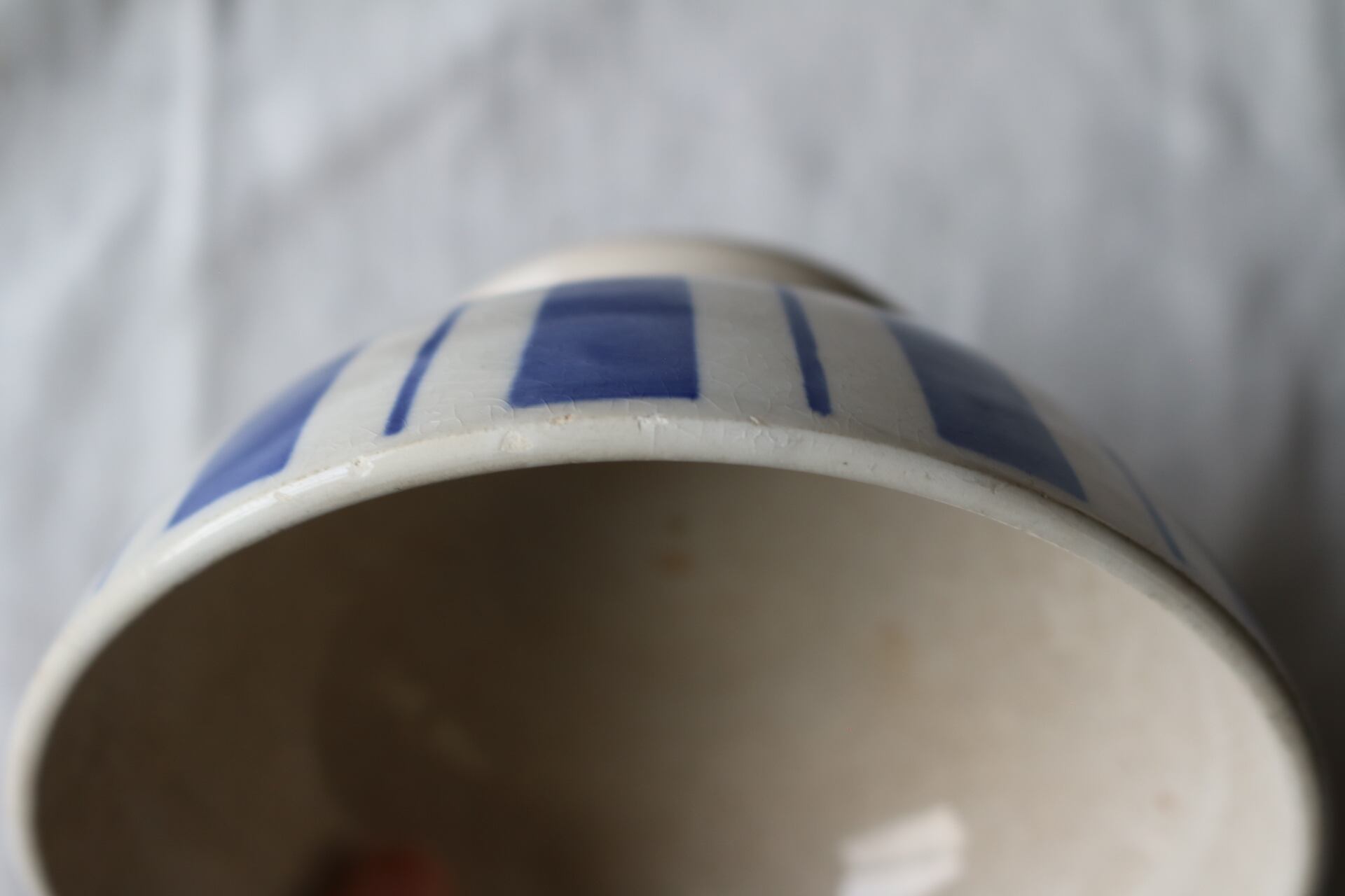 Badonviller ブルーライン ストライプ ステンシル カフェオレボウル フランス アンティーク