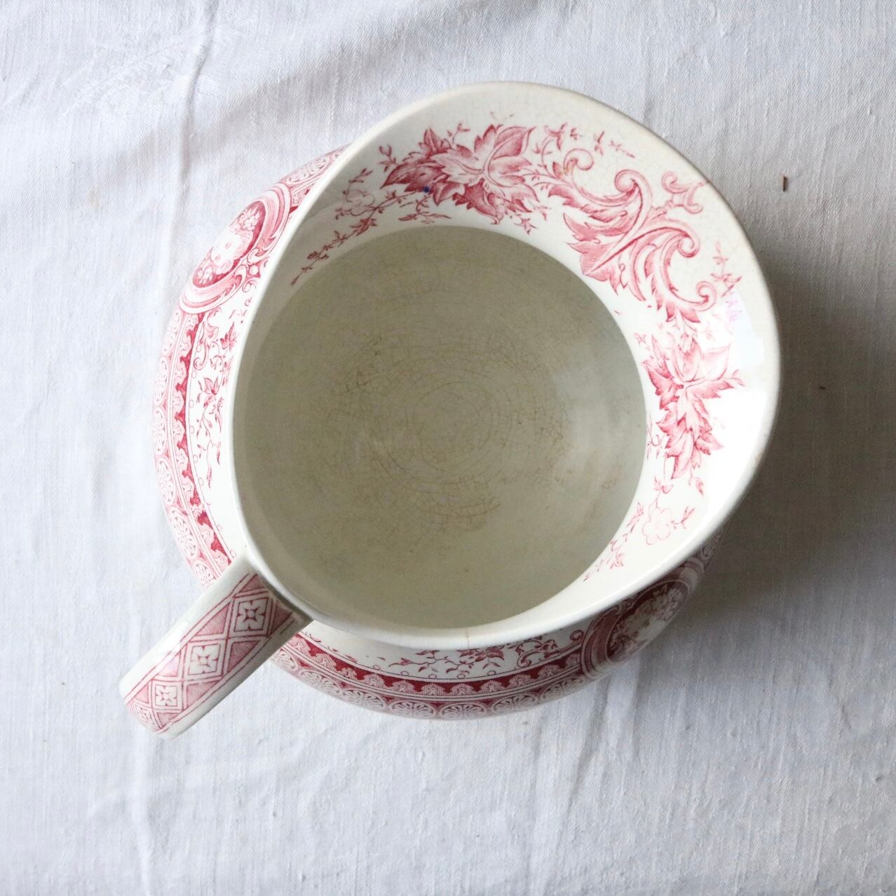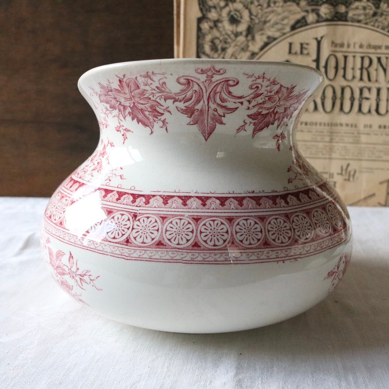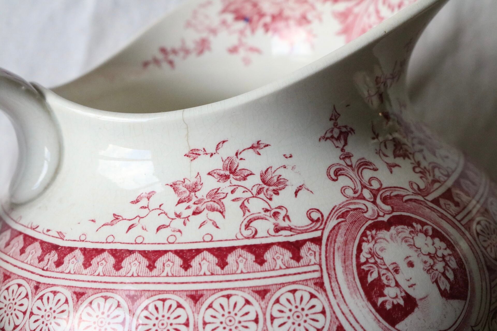 sarreguemines メダイユ 女性 水差し 赤 ピンク フランス アンティーク ピッチャー ピシェ