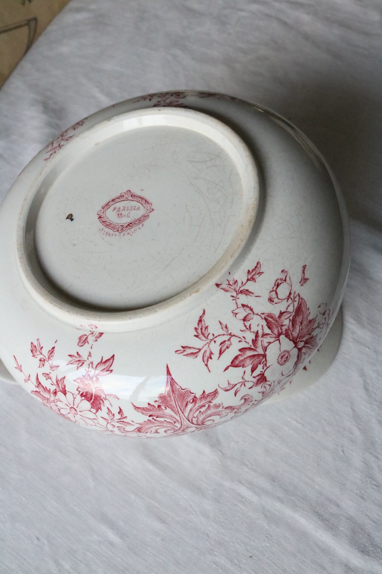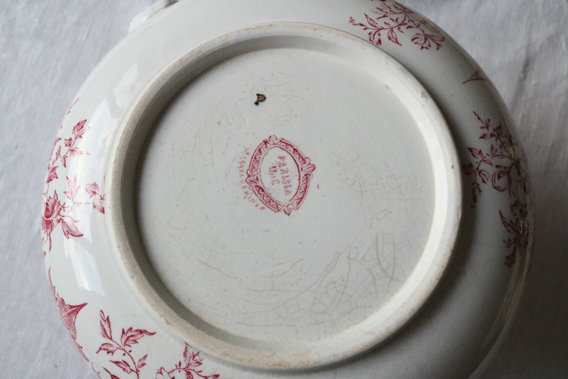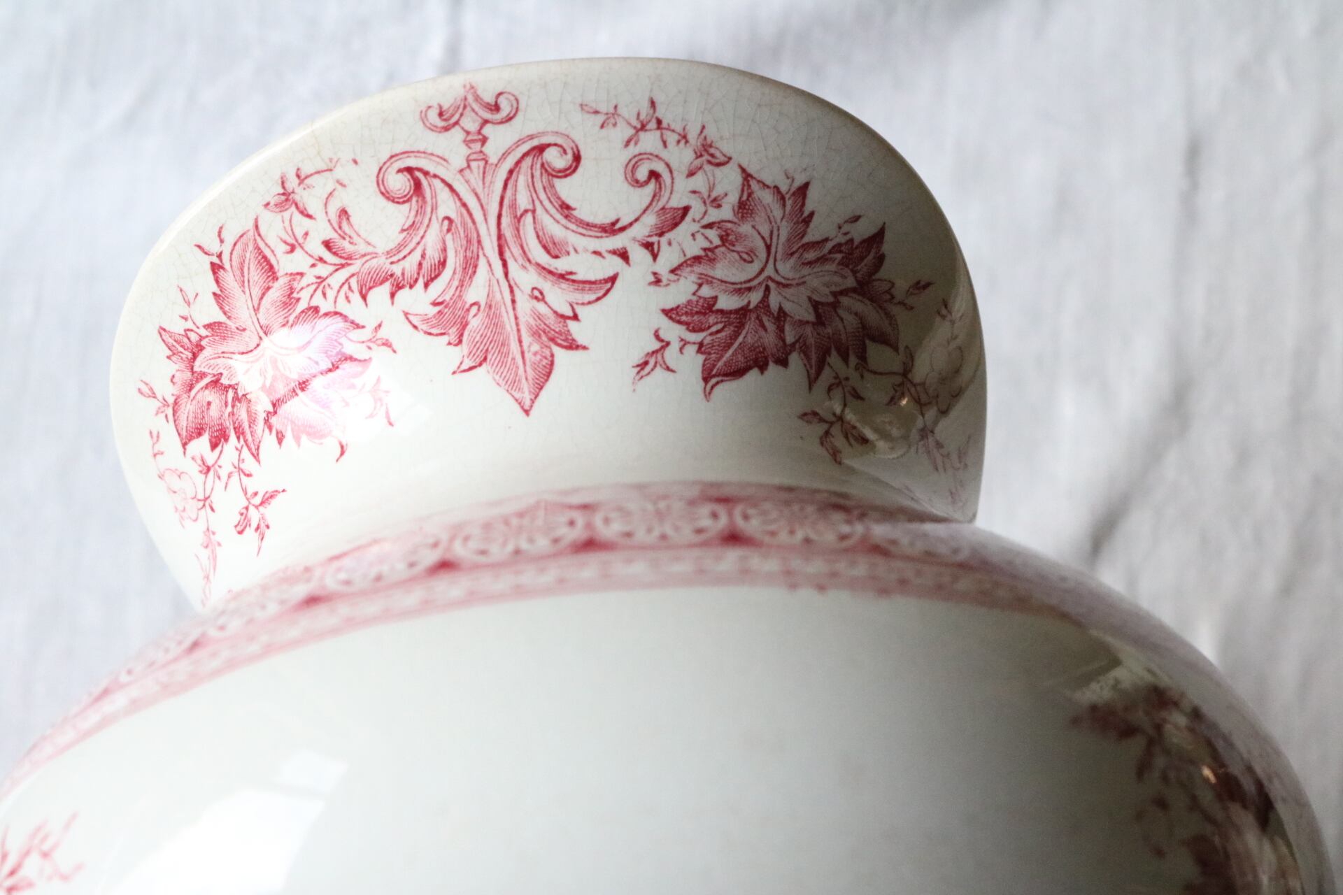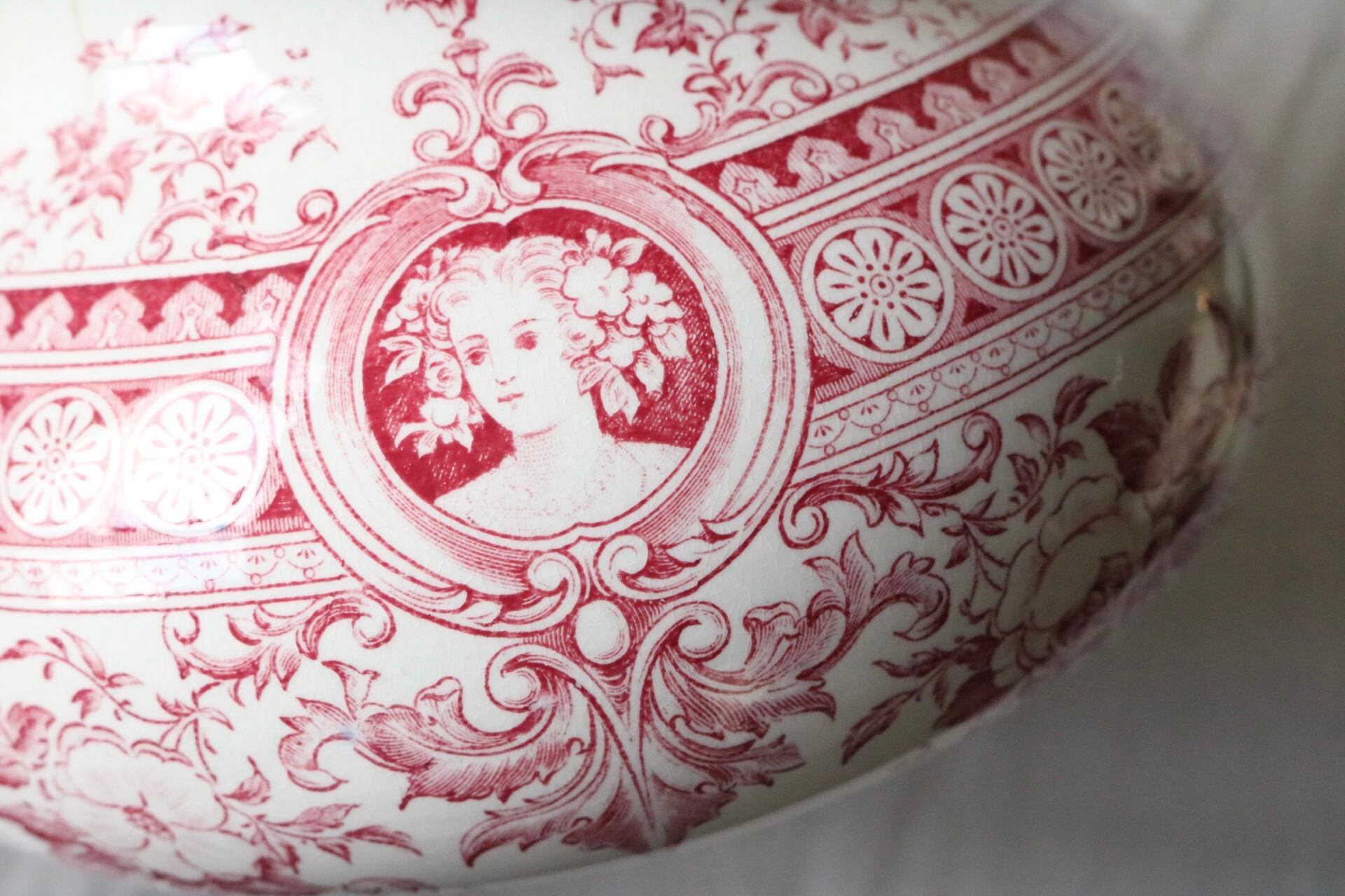 sarreguemines メダイユ 女性 水差し 赤 ピンク フランス アンティーク ピッチャー ピシェ