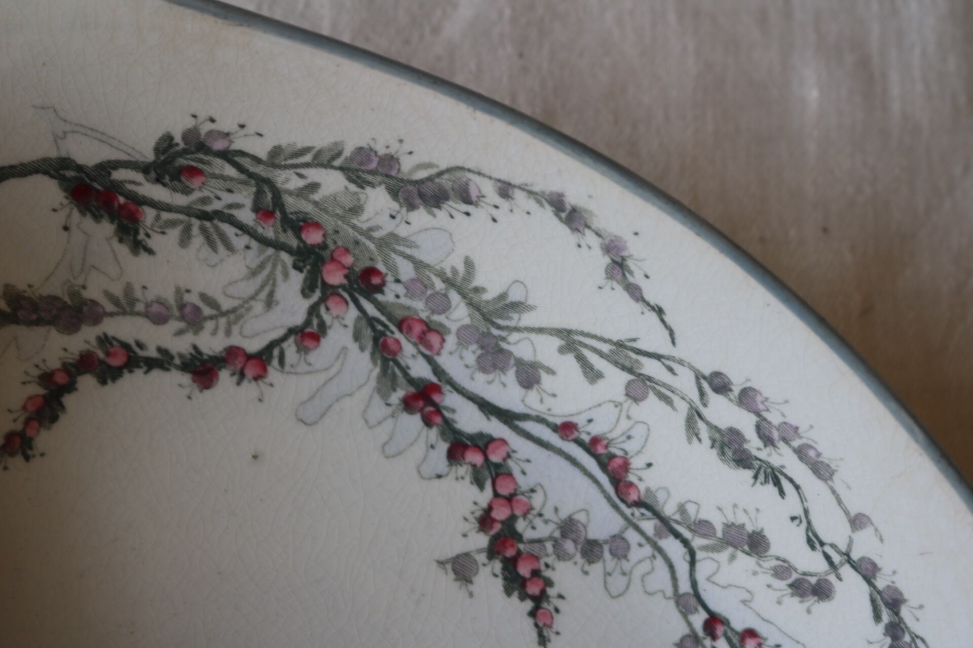 Sarreguemines 赤い実 ラヴィエ 花 フランス アンティーク