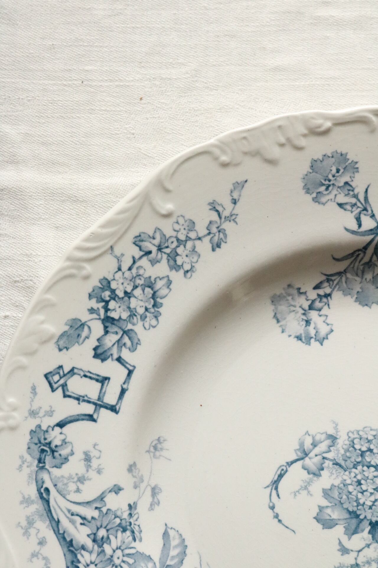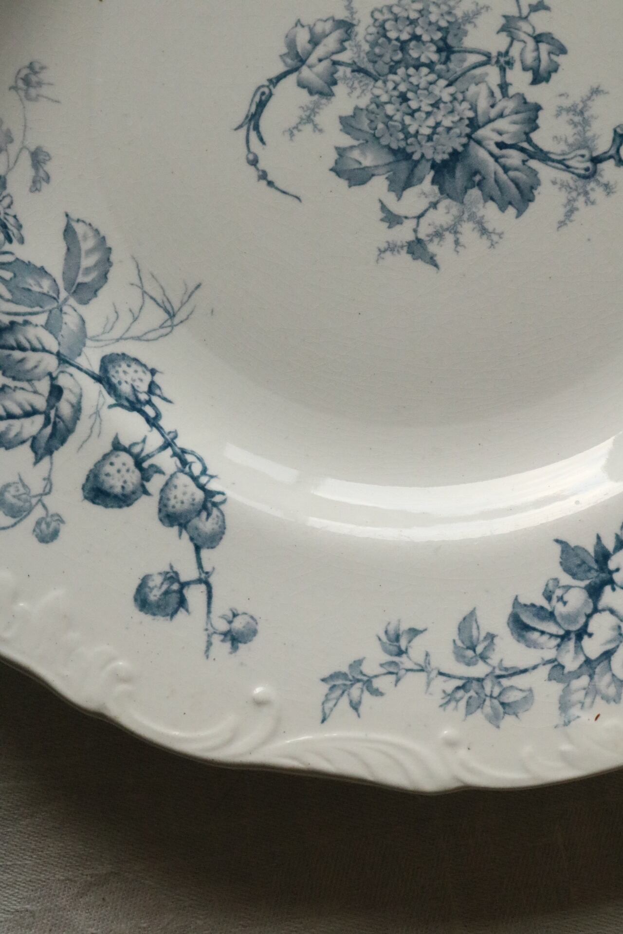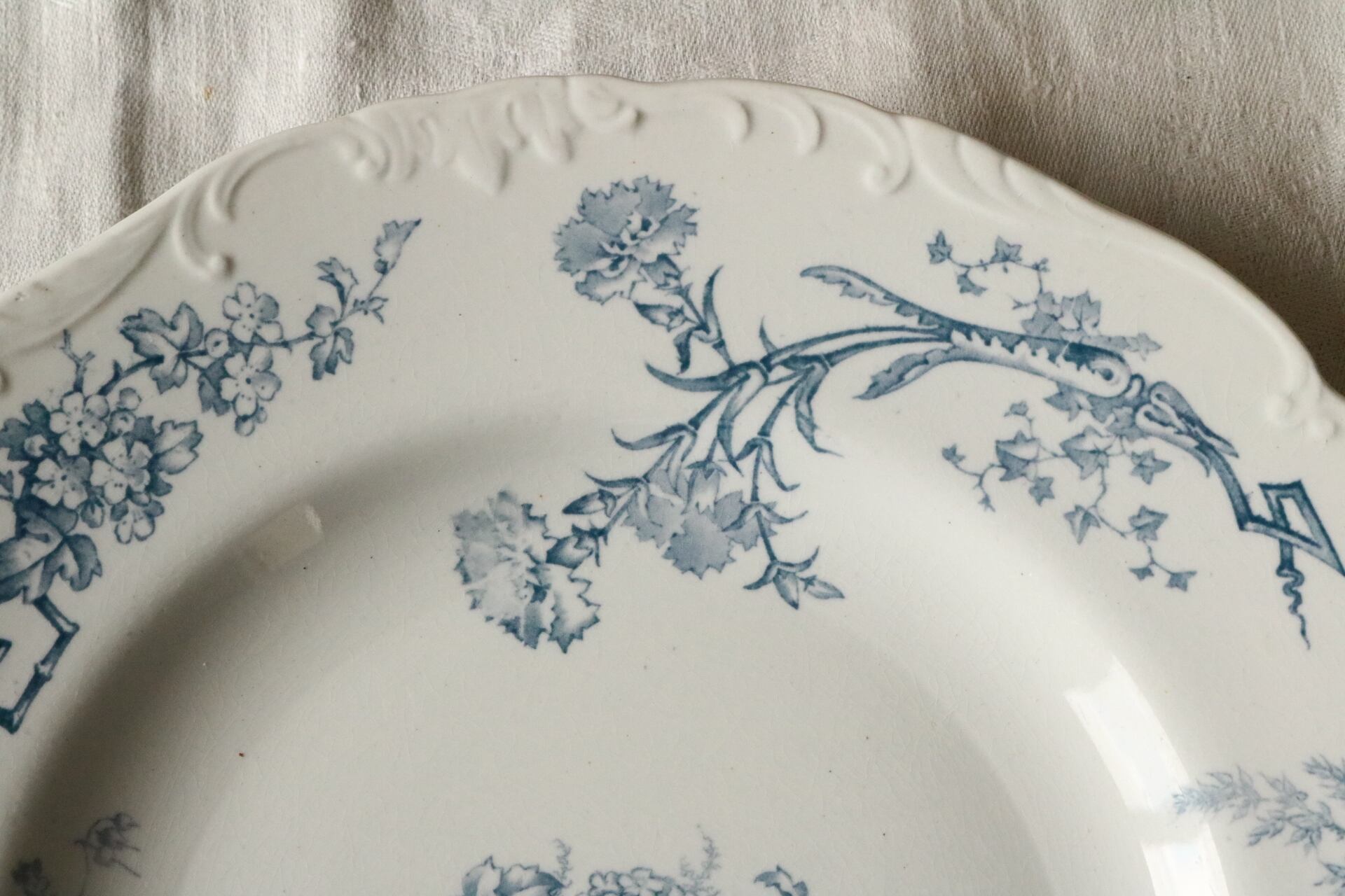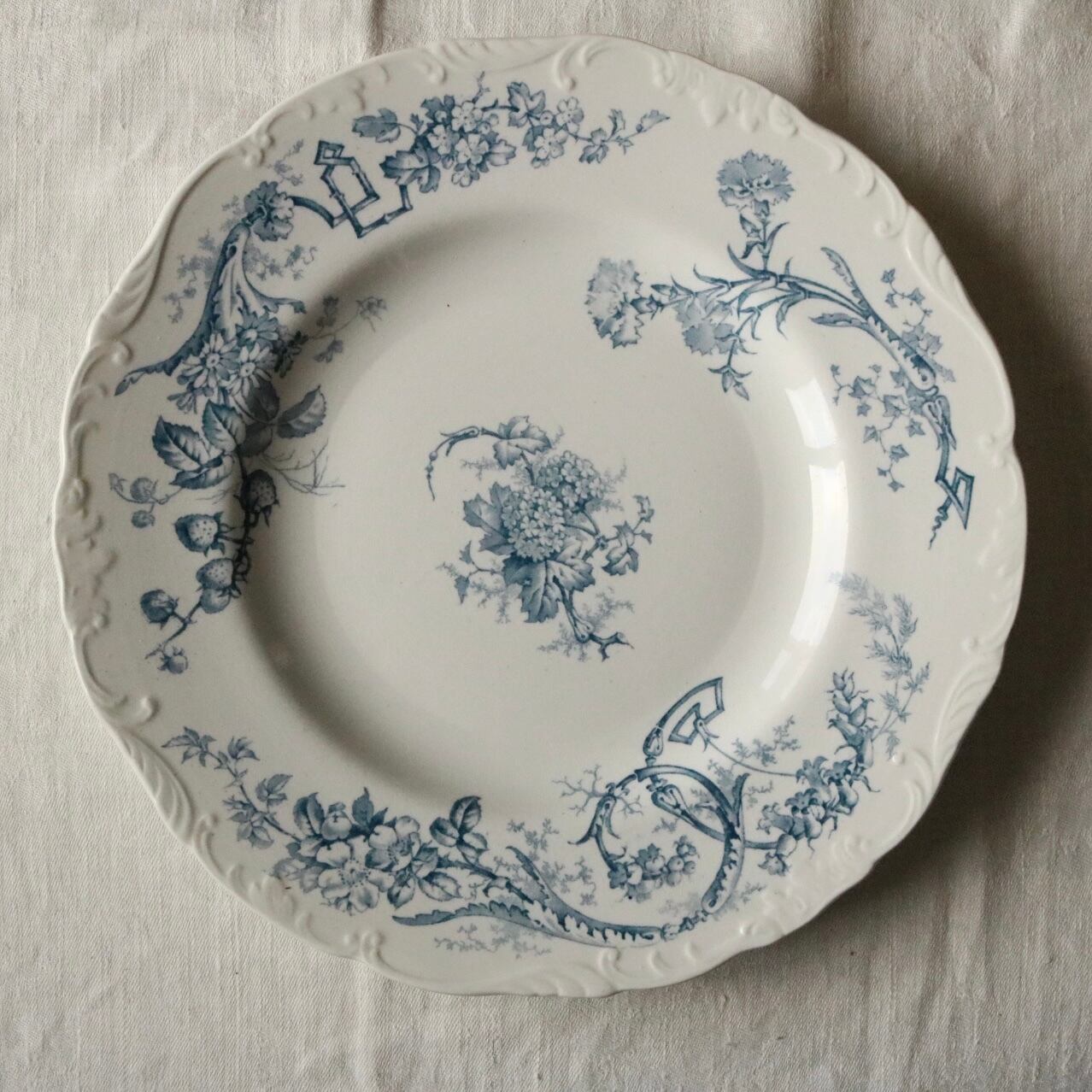 イギリス レリーフ アンティーク プレート 花リム ボタニカル フルーツ