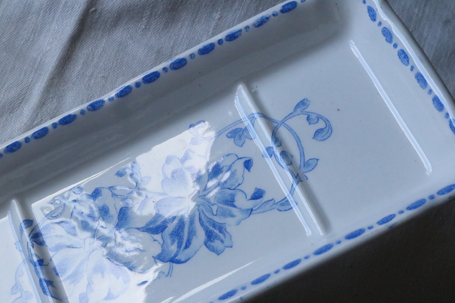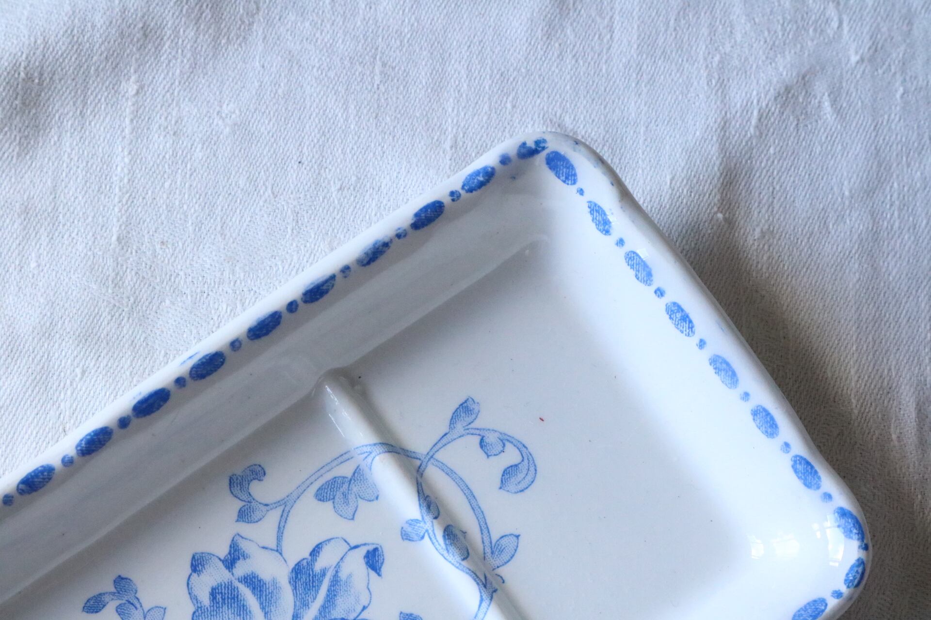 Creil montereau くし置き ブルー 花 櫛 石鹸 ラヴィエ フランス アンティーク