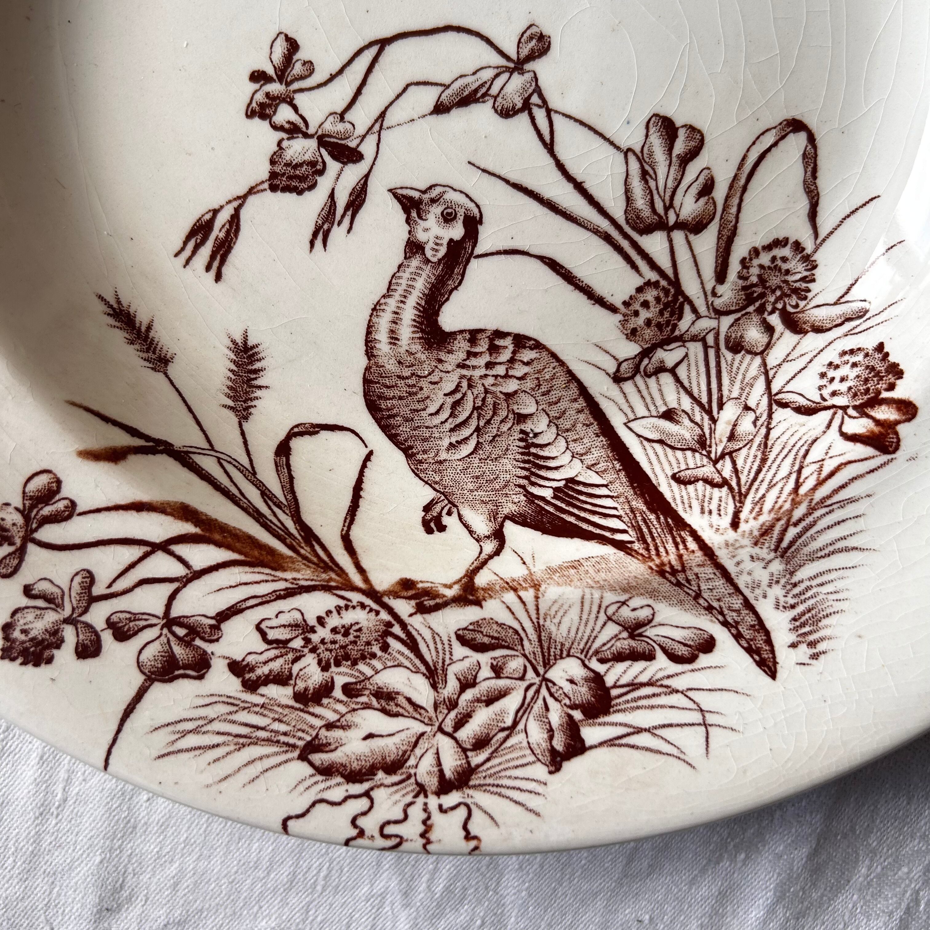 ブラウン 雉 キジ どんぐり フランス アンティーク プレート clairefontaine