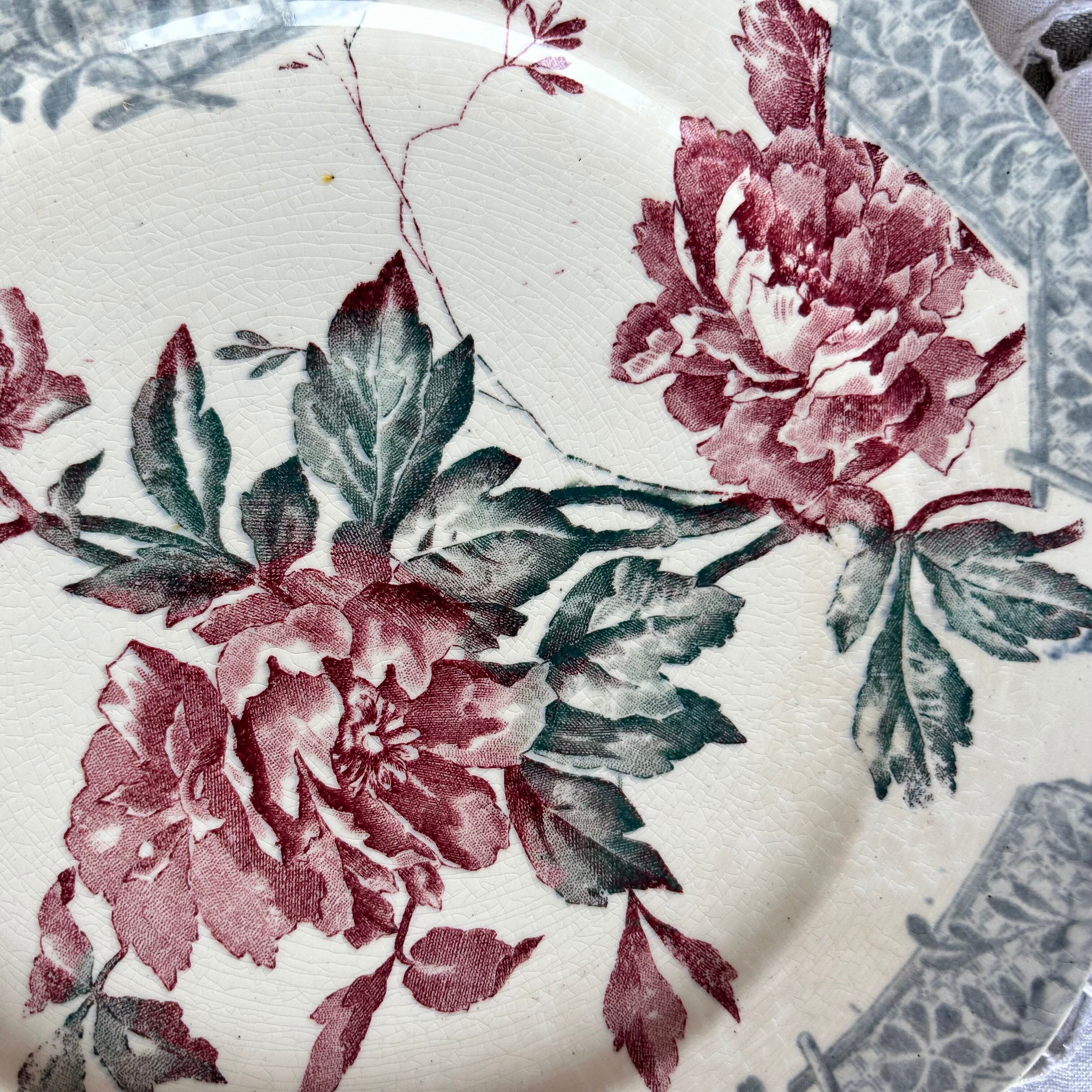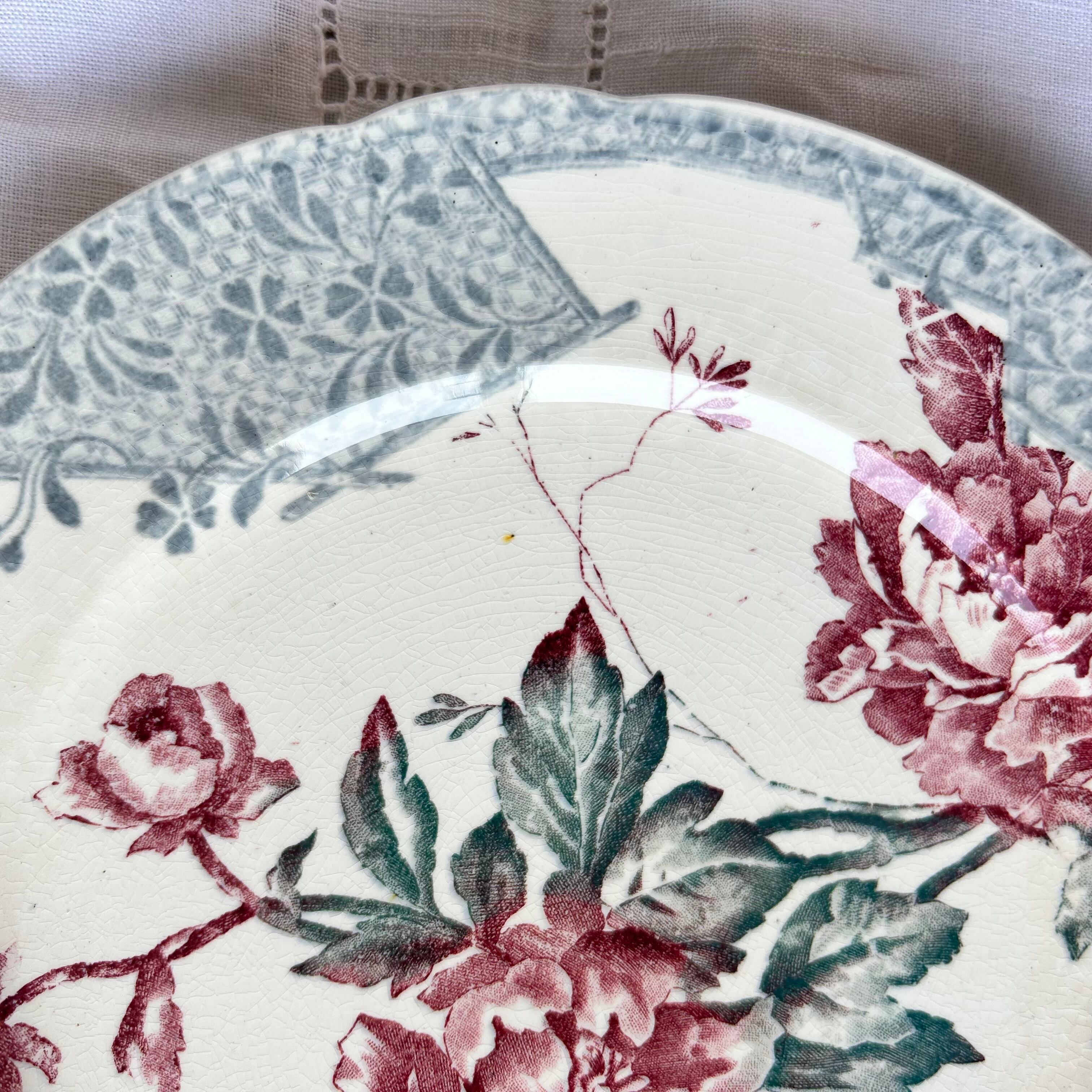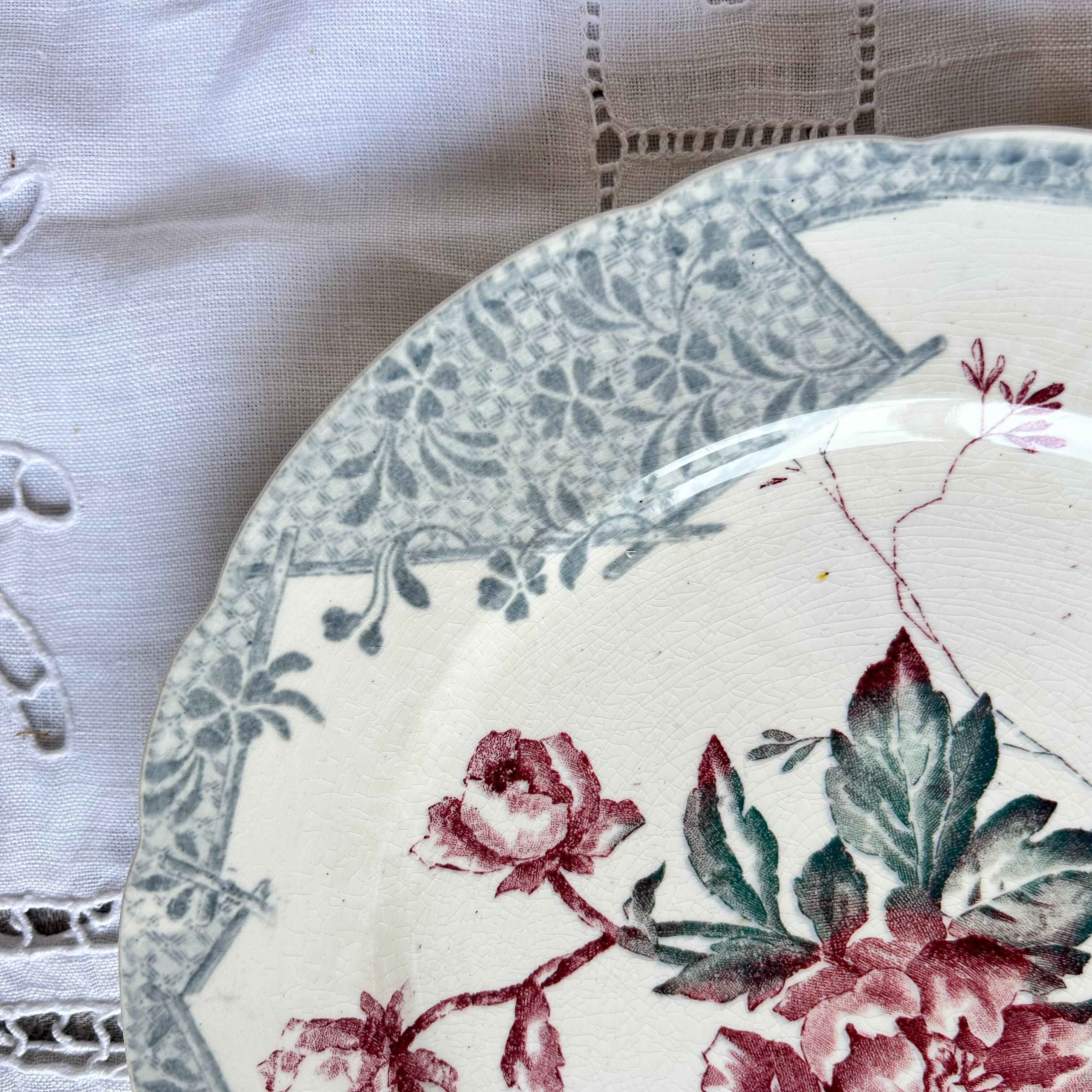 Longwy グレー 赤 2色 フランス アンティーク ボタニカル プレート ロンウィ