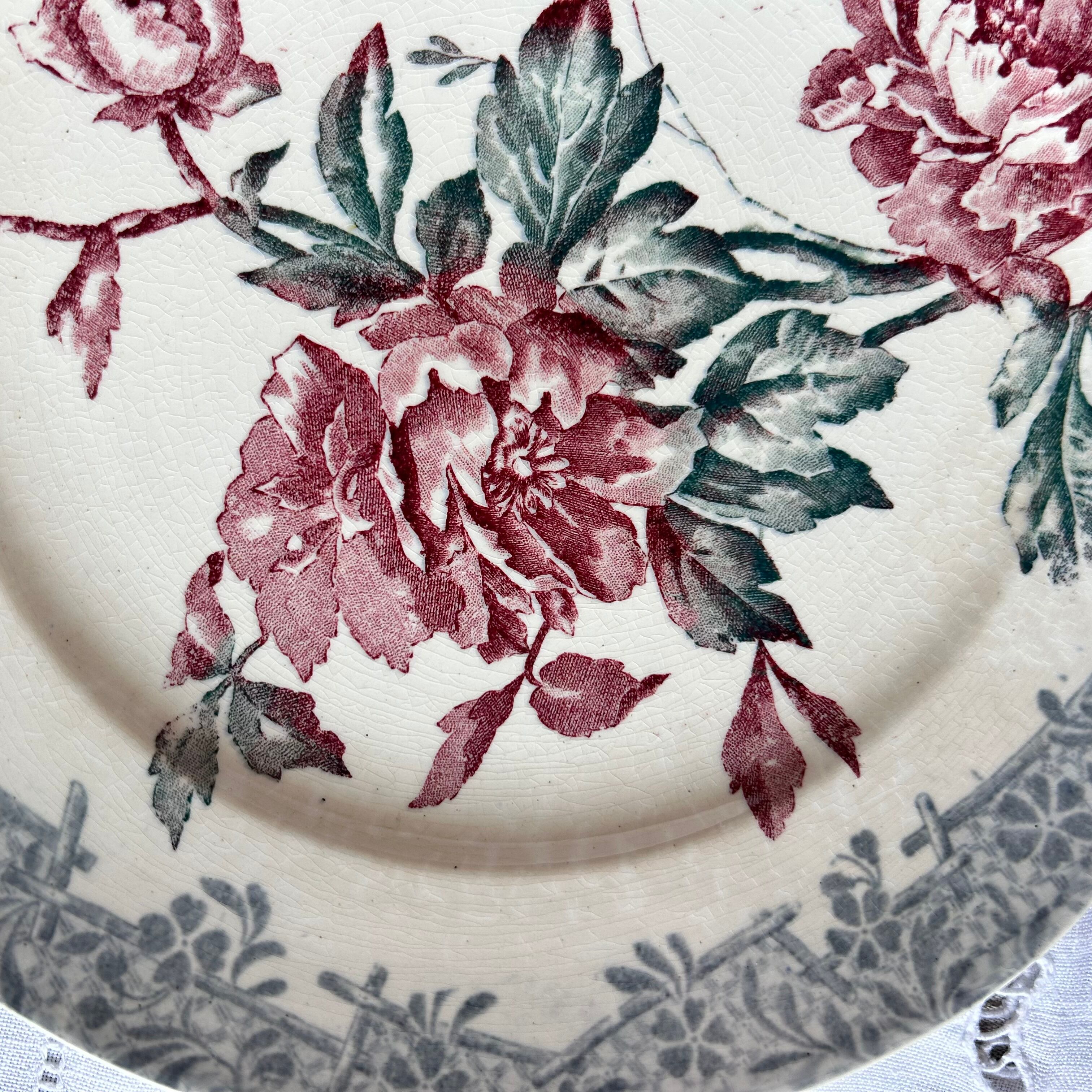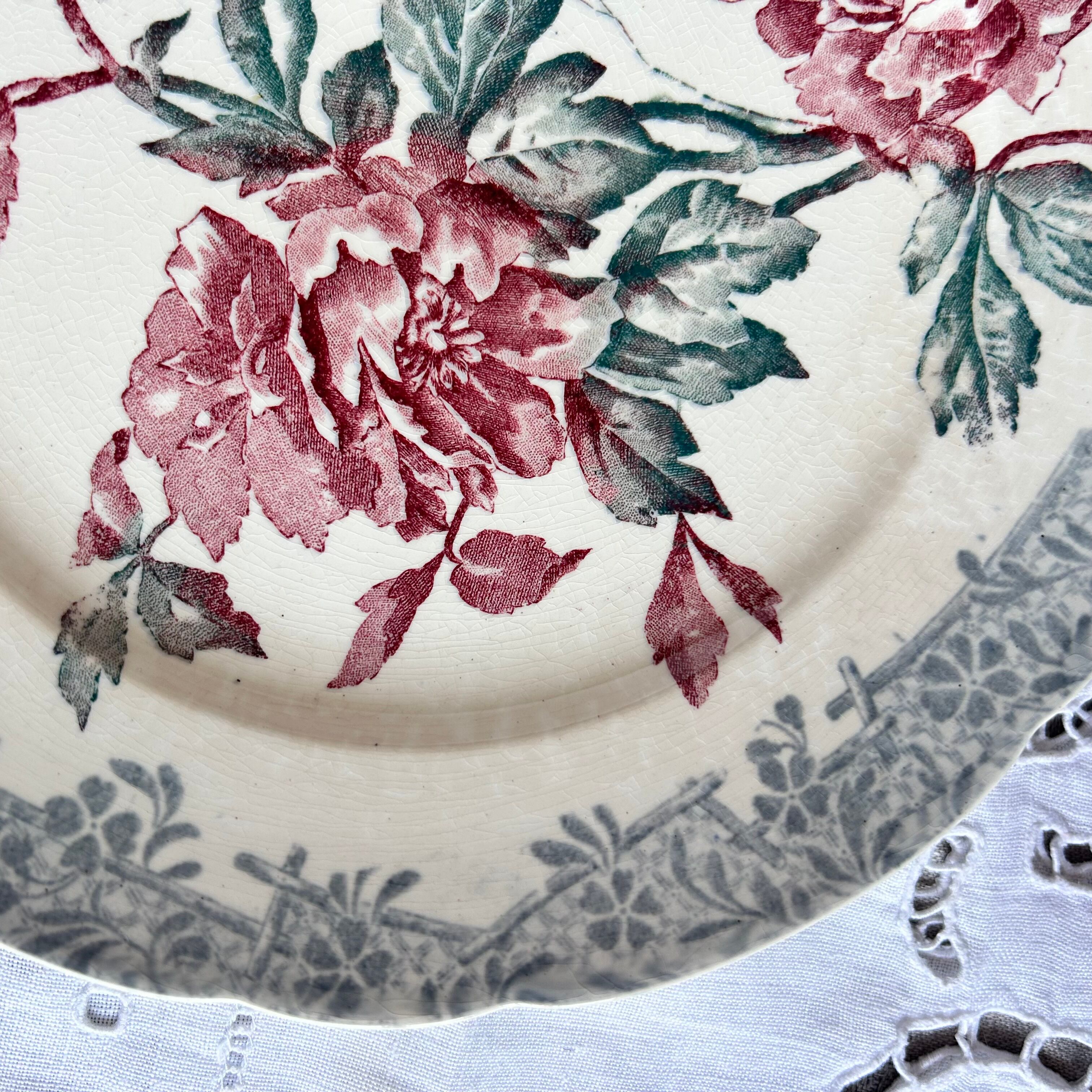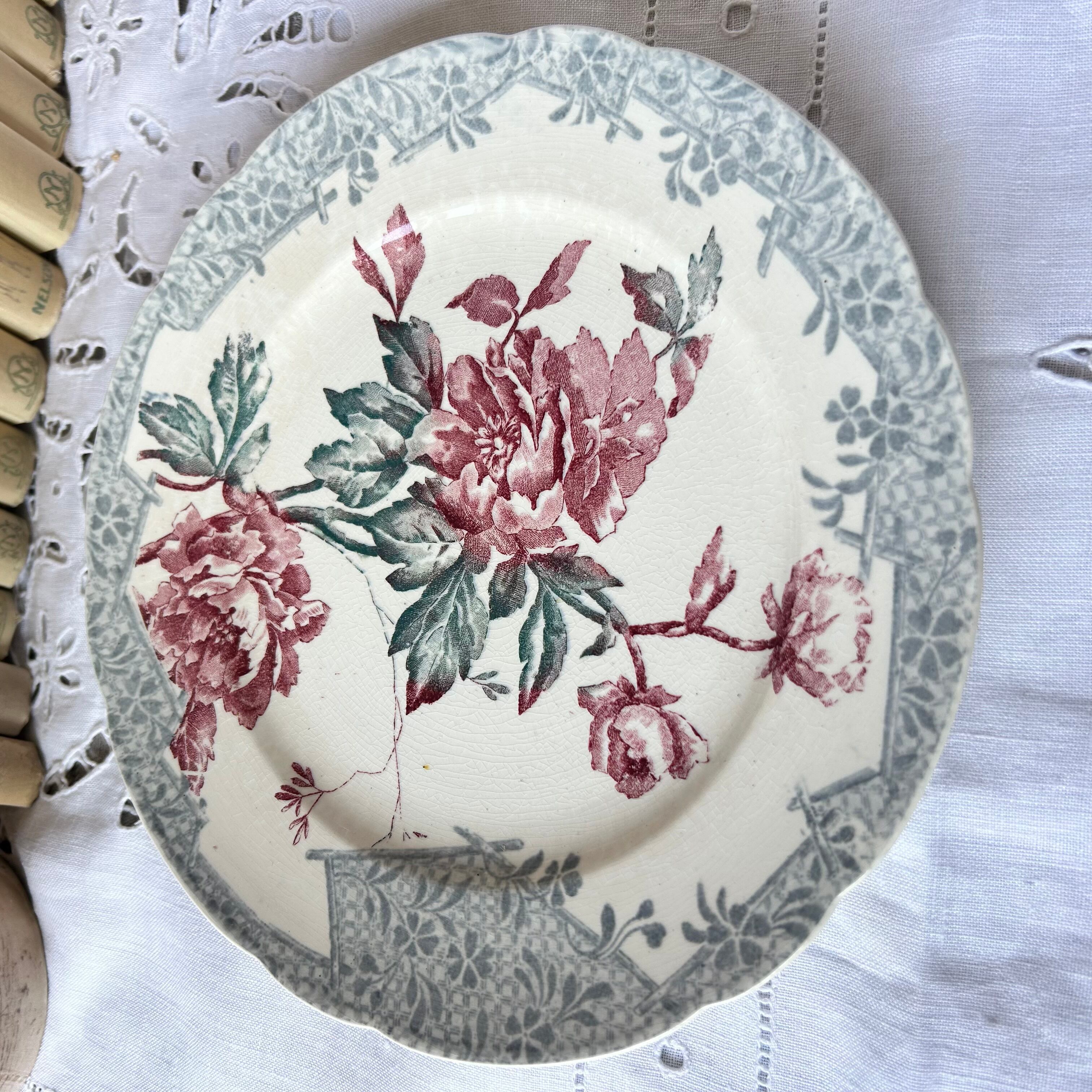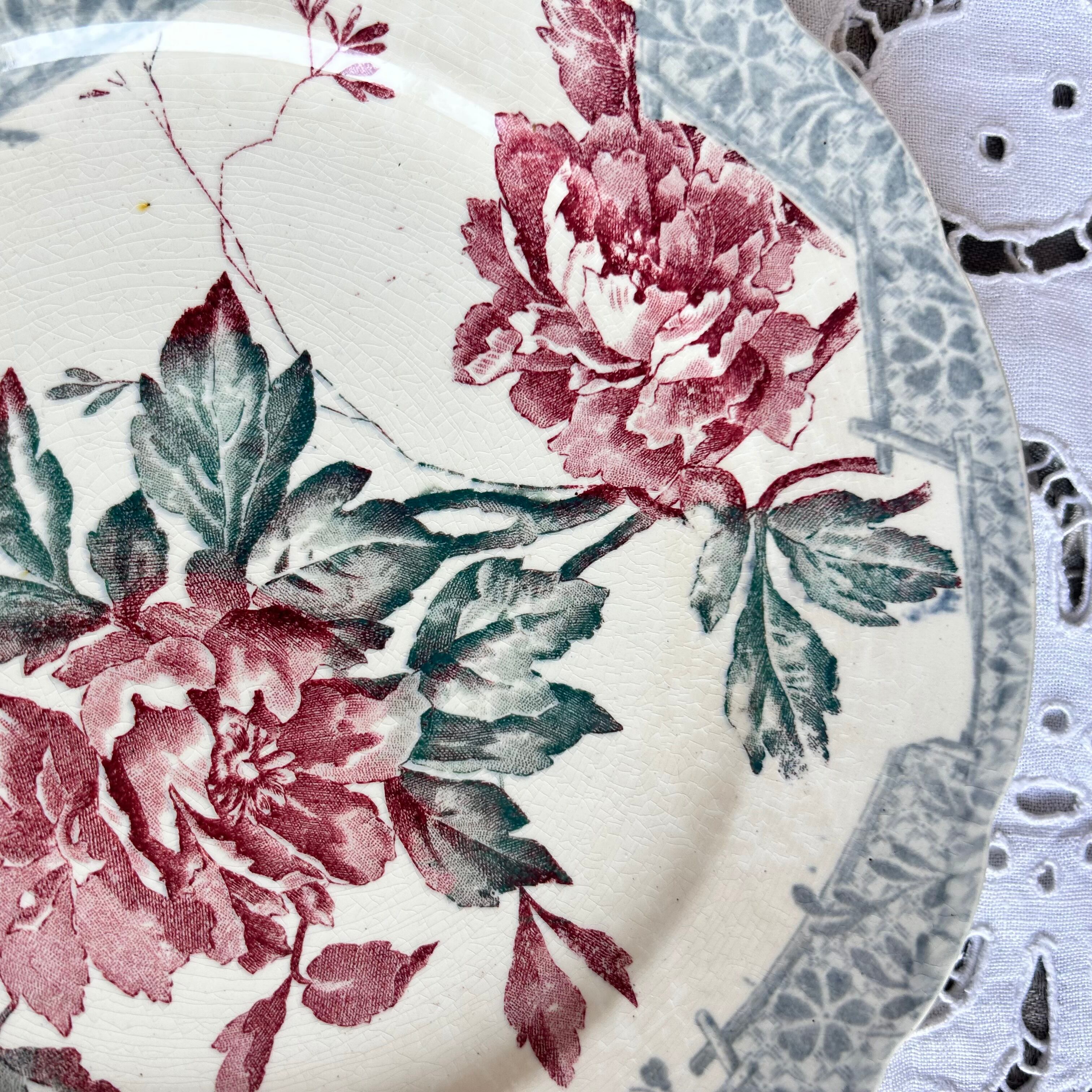 Longwy グレー 赤 2色 フランス アンティーク ボタニカル プレート ロンウィ