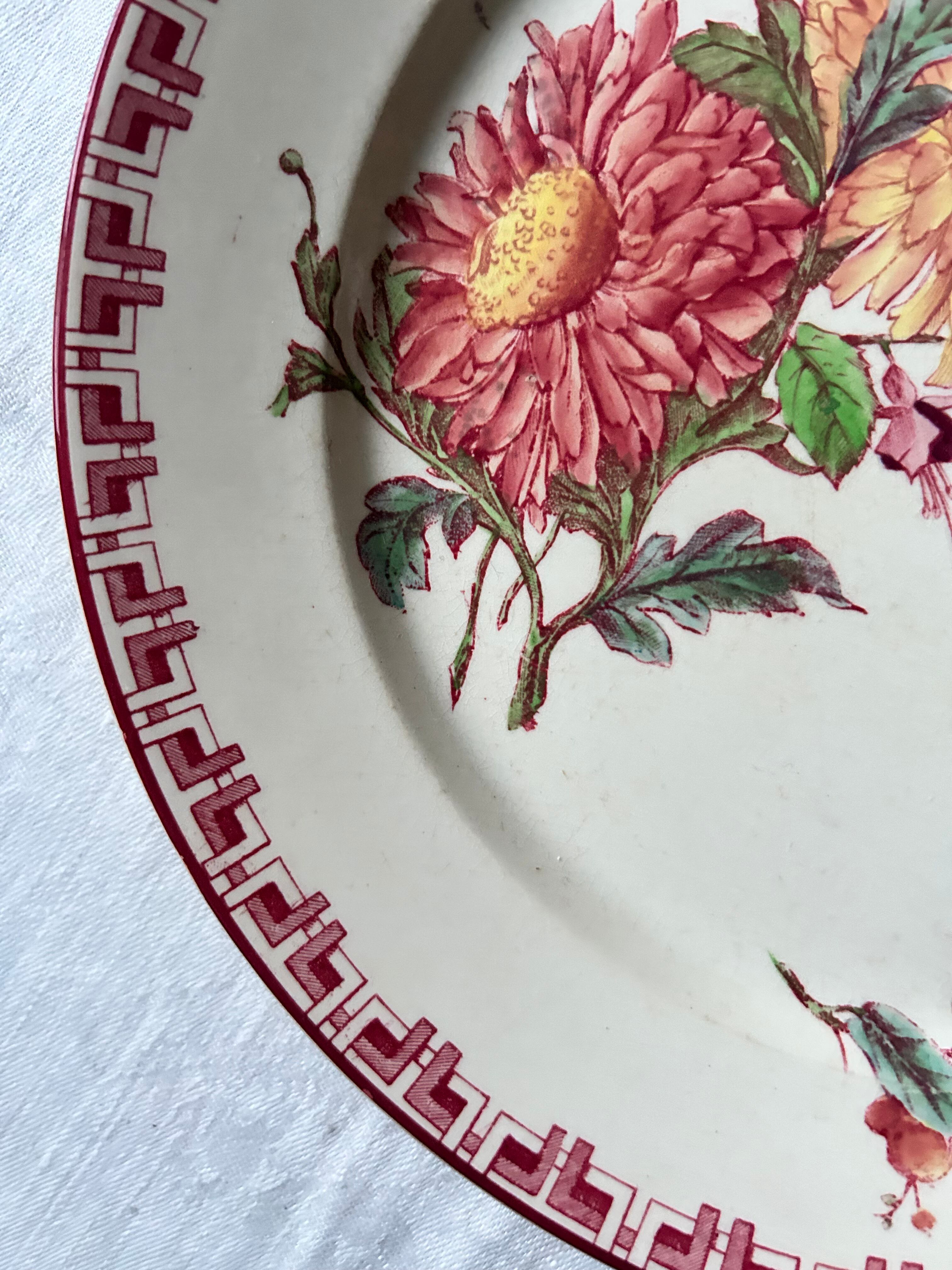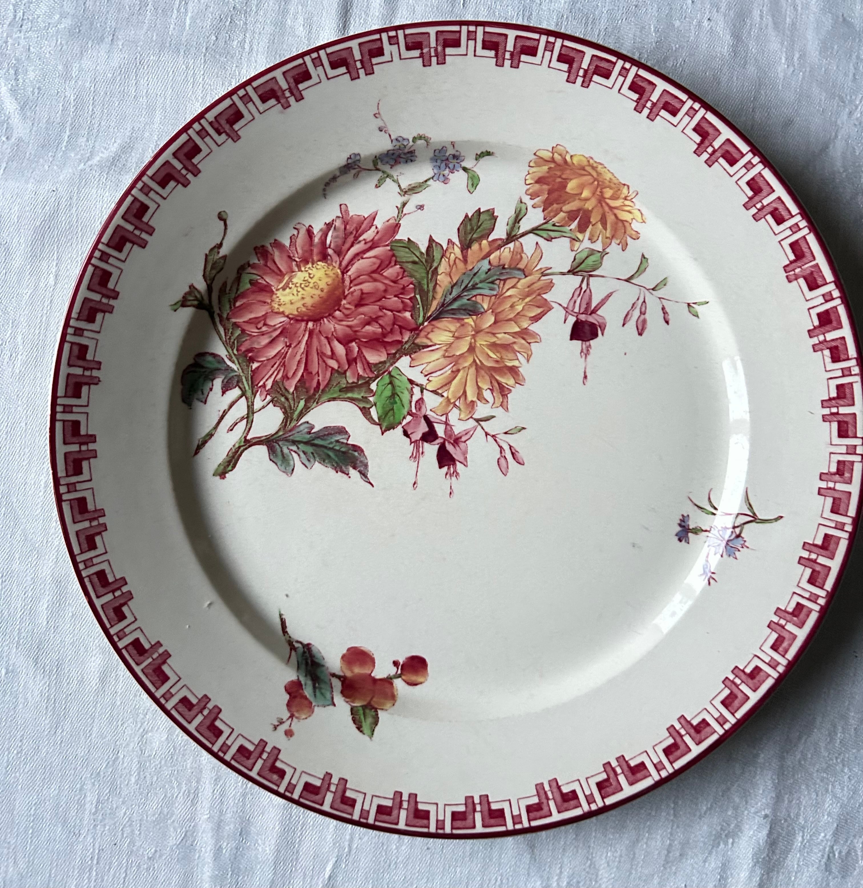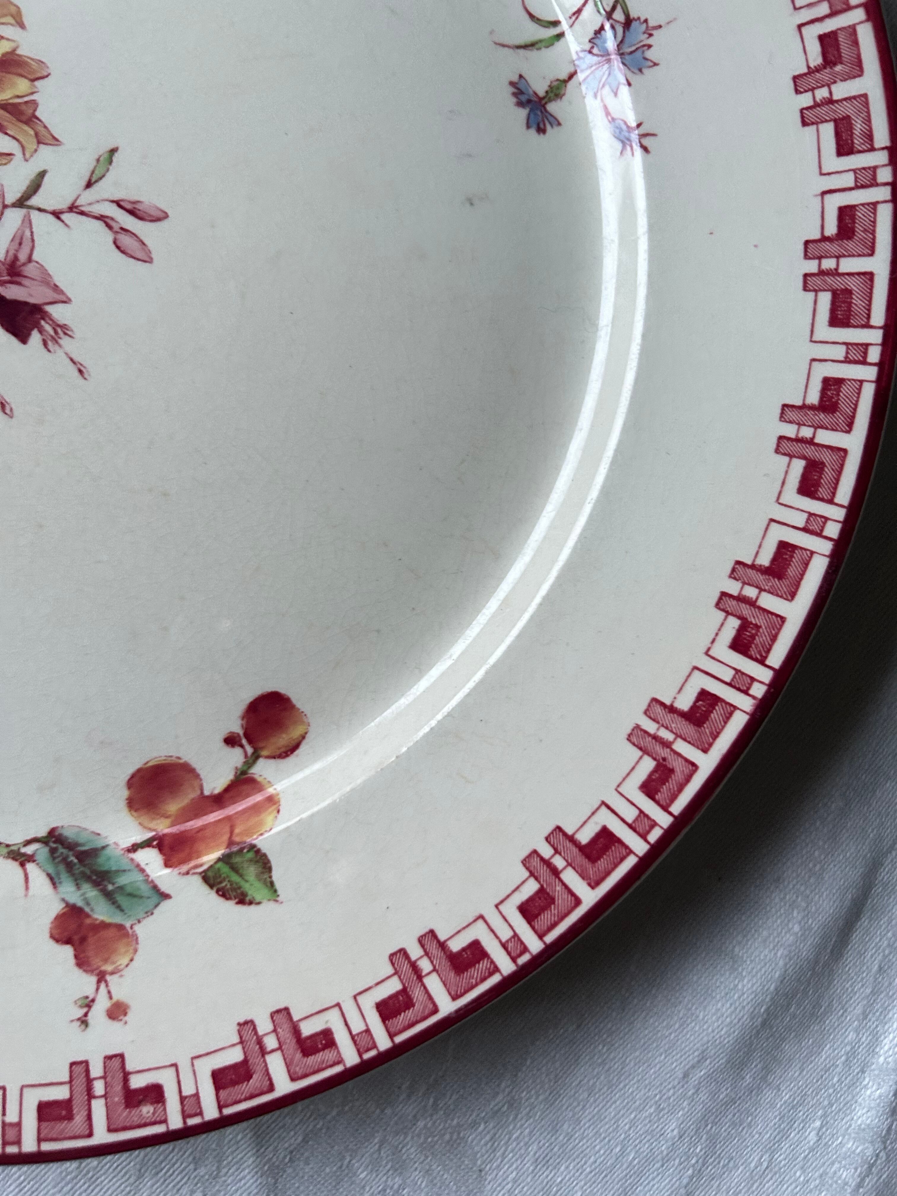 sarreguemines フランス 多色 菊 フーシャ さくらんぼ 赤 アンティーク プレート