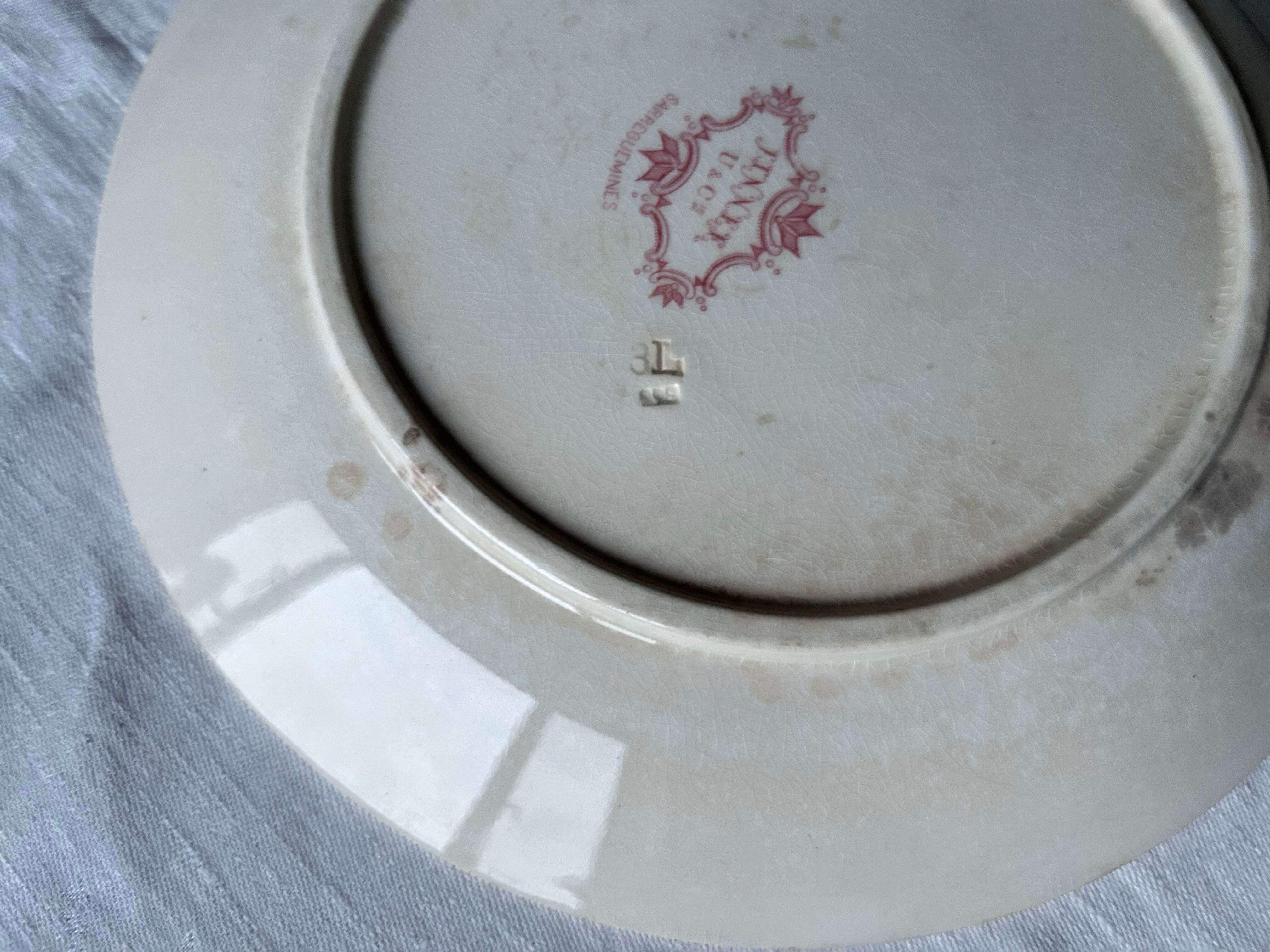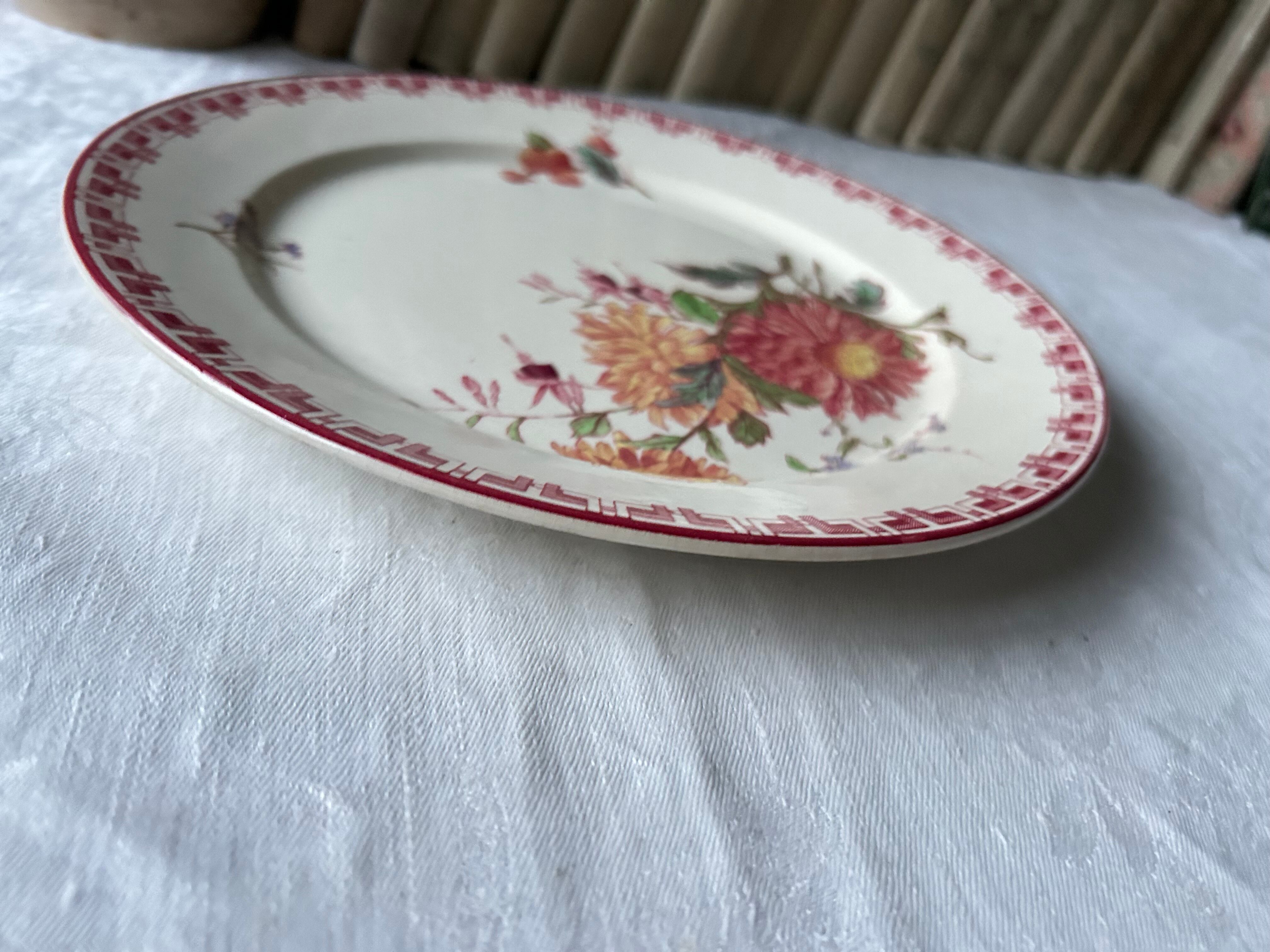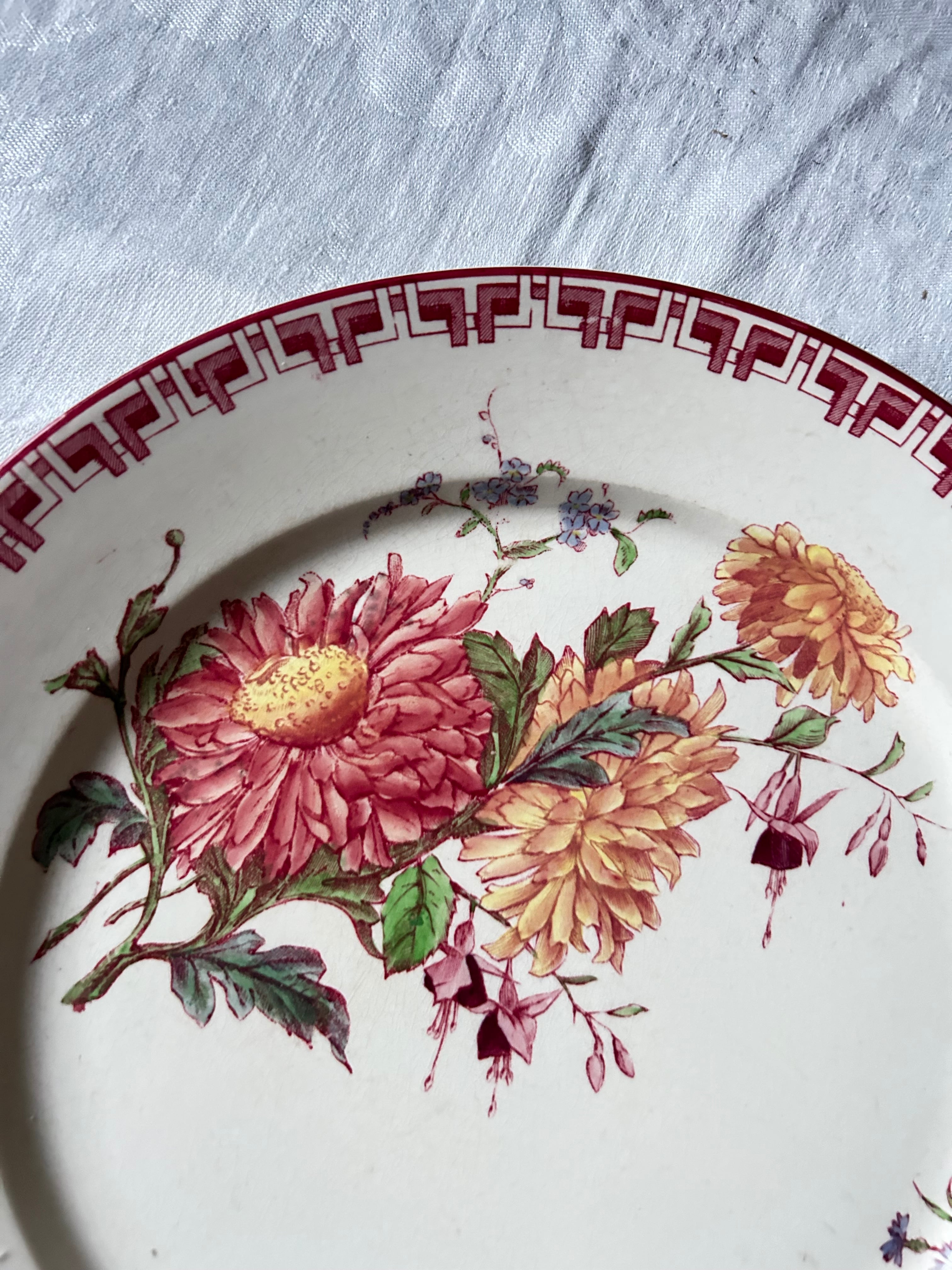 sarreguemines フランス 多色 菊 フーシャ さくらんぼ 赤 アンティーク プレート