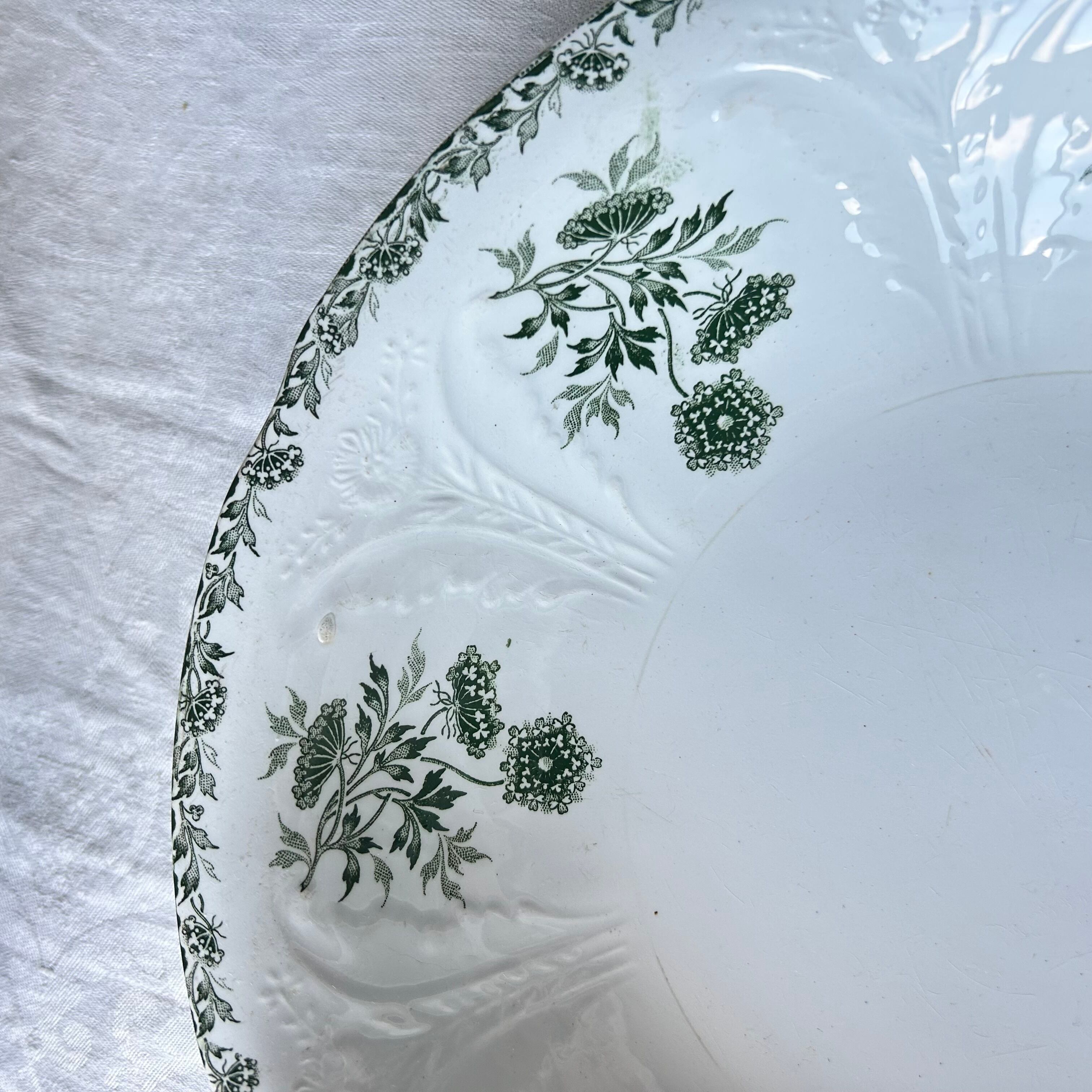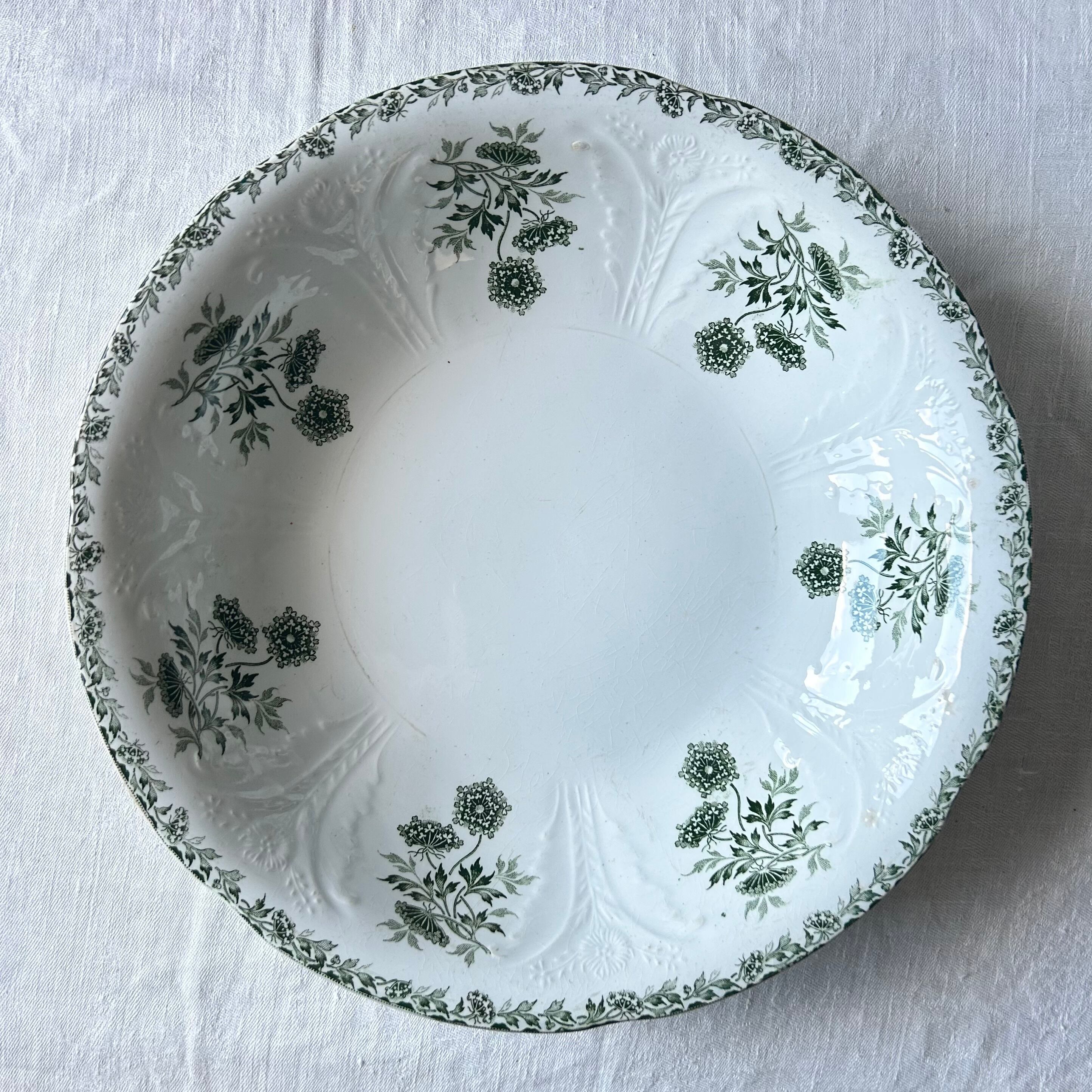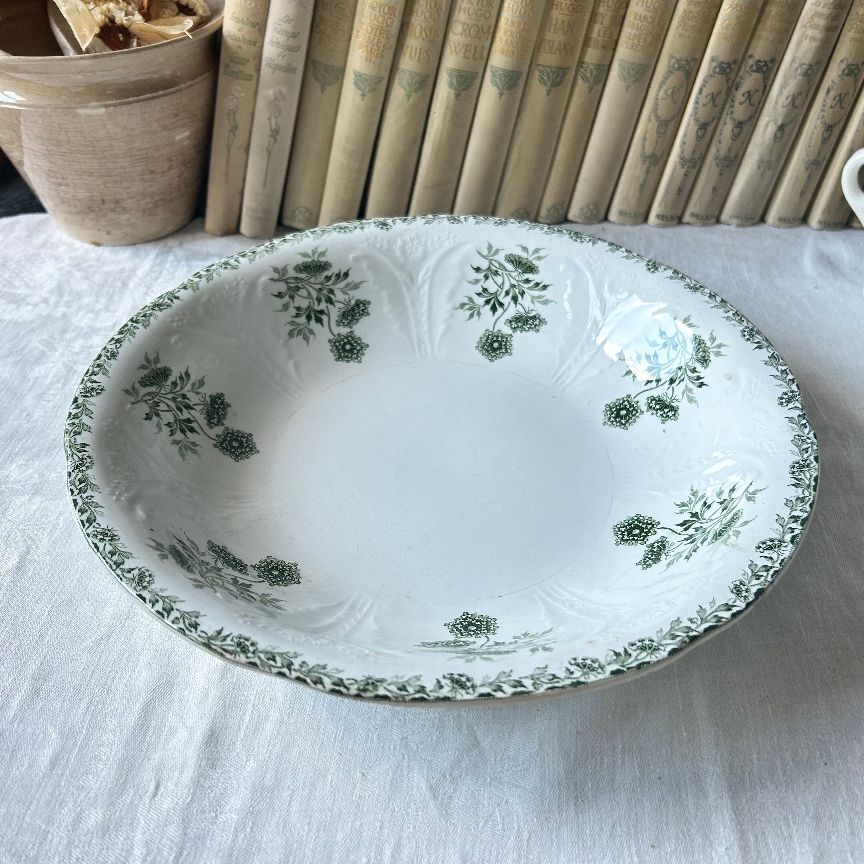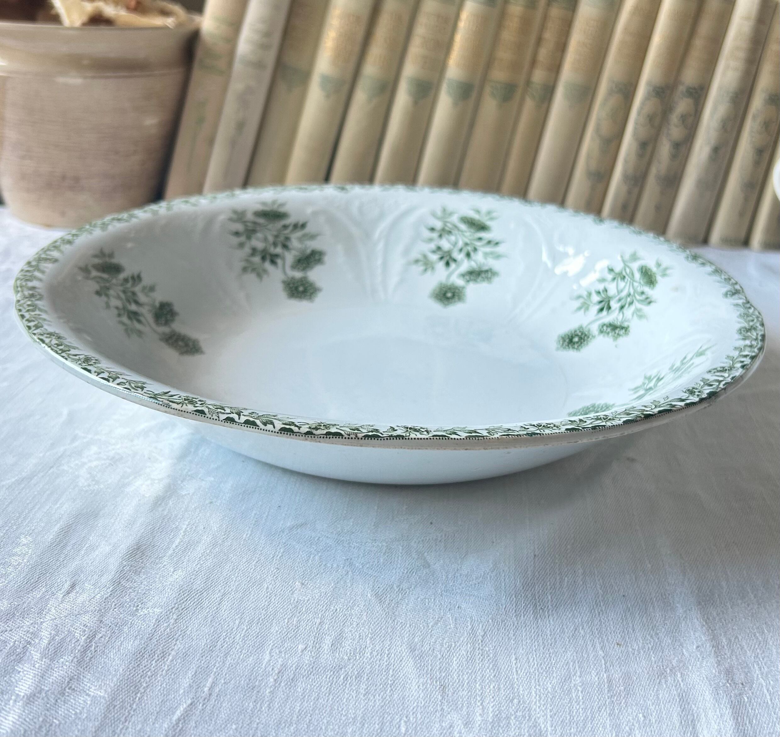 【大皿】サラダボウル Saint amand レリーフ モスグリーン フランス アンティーク